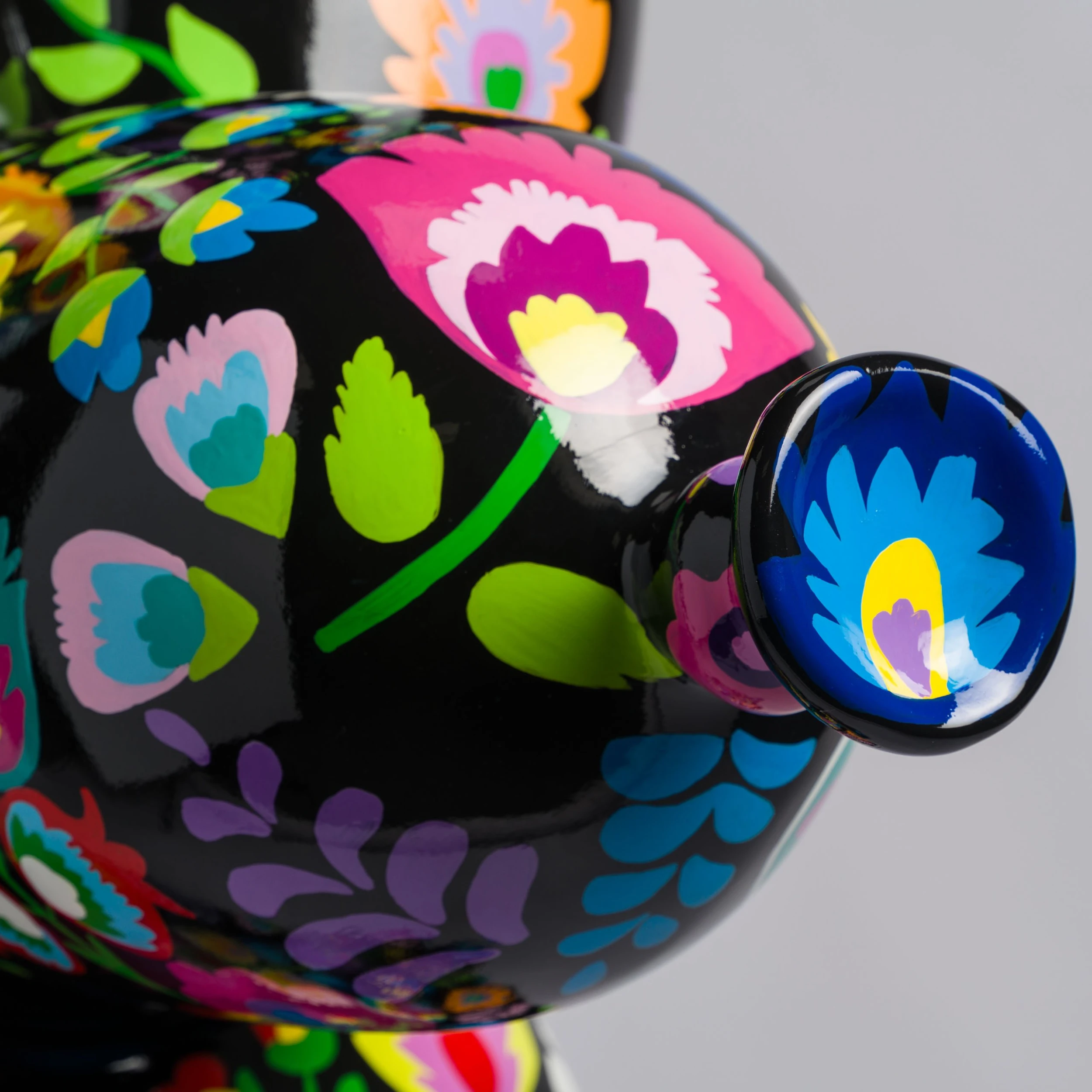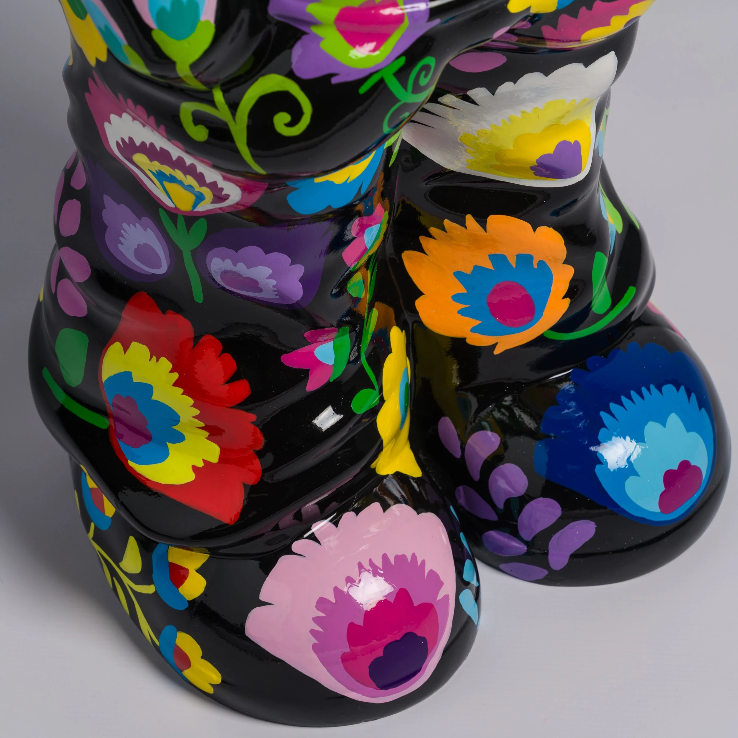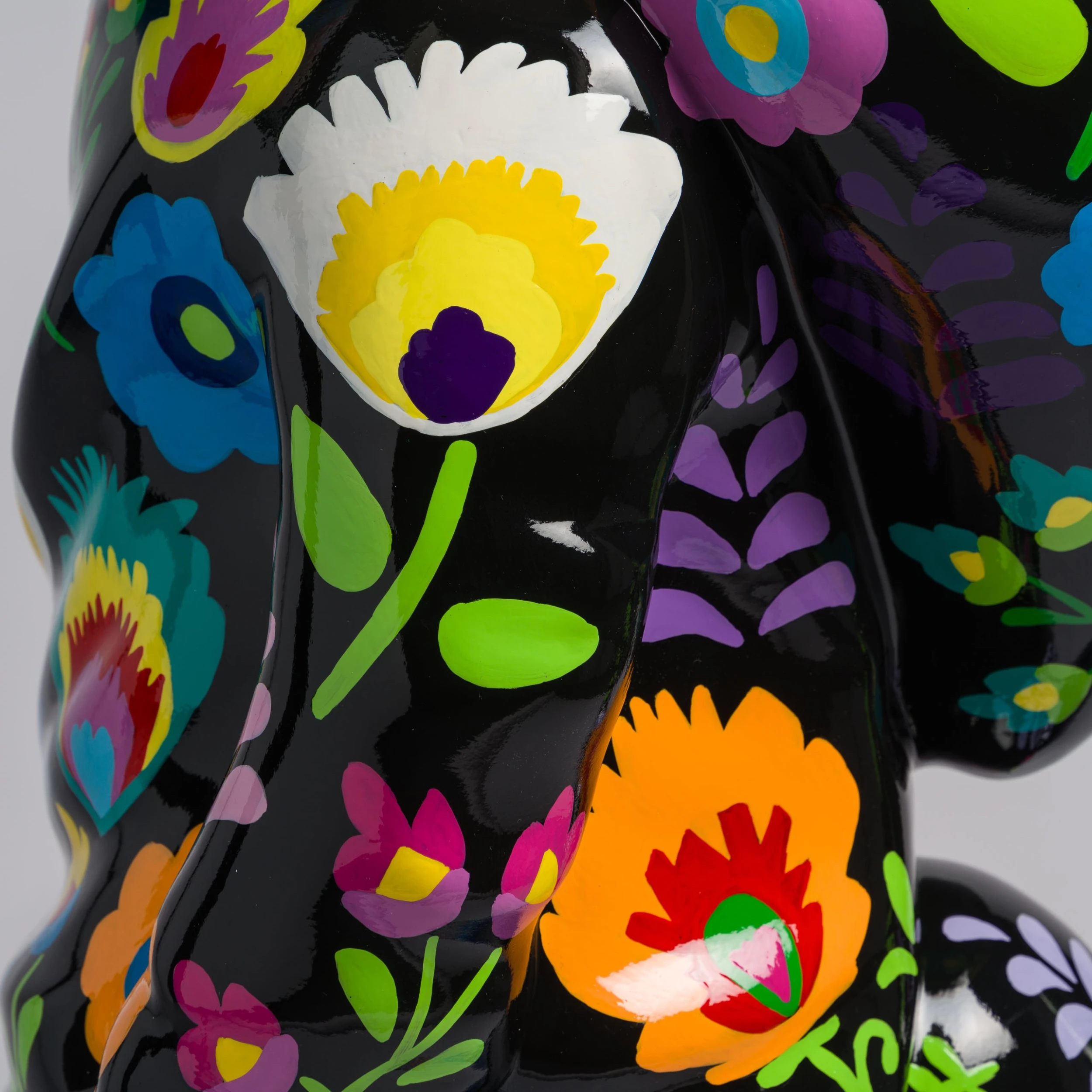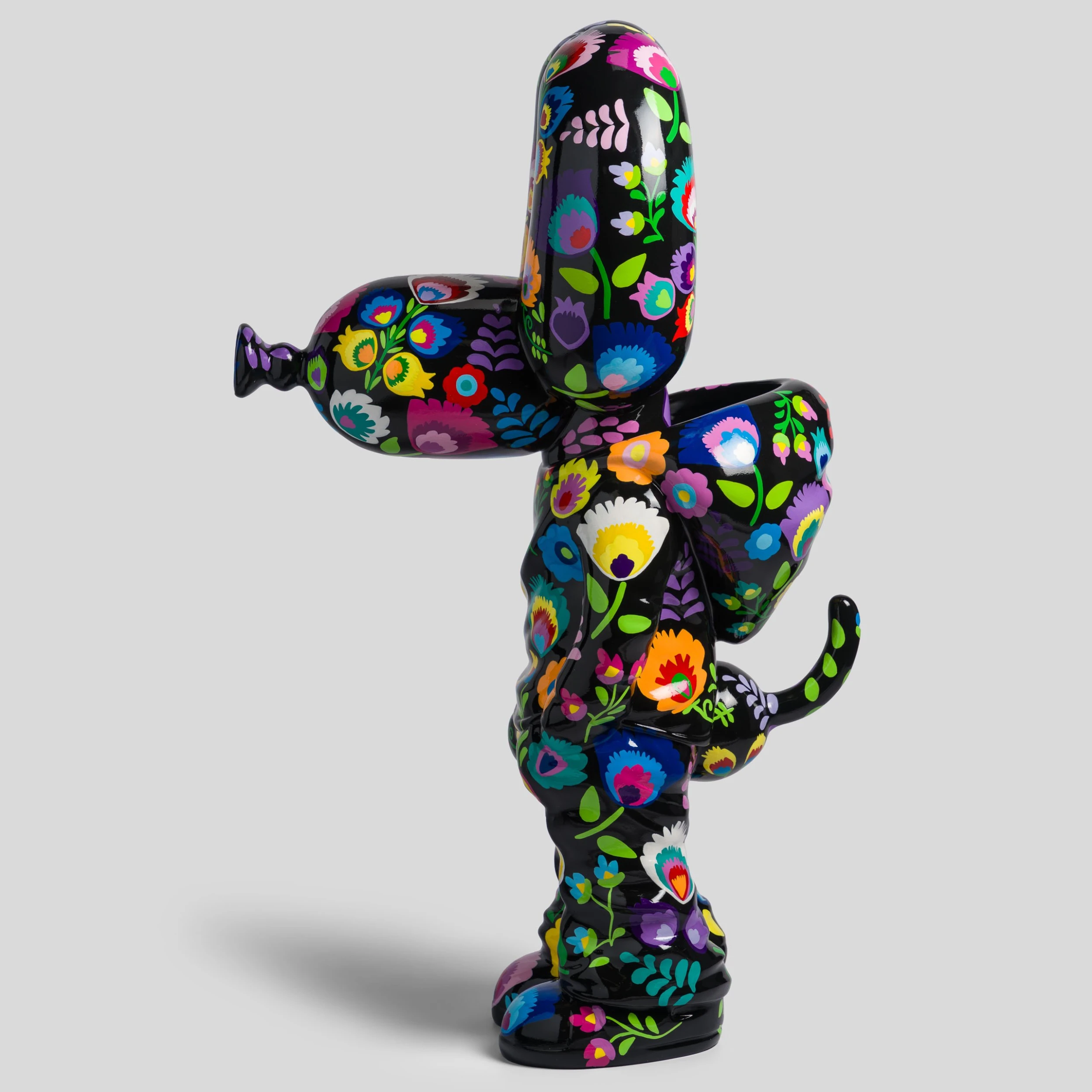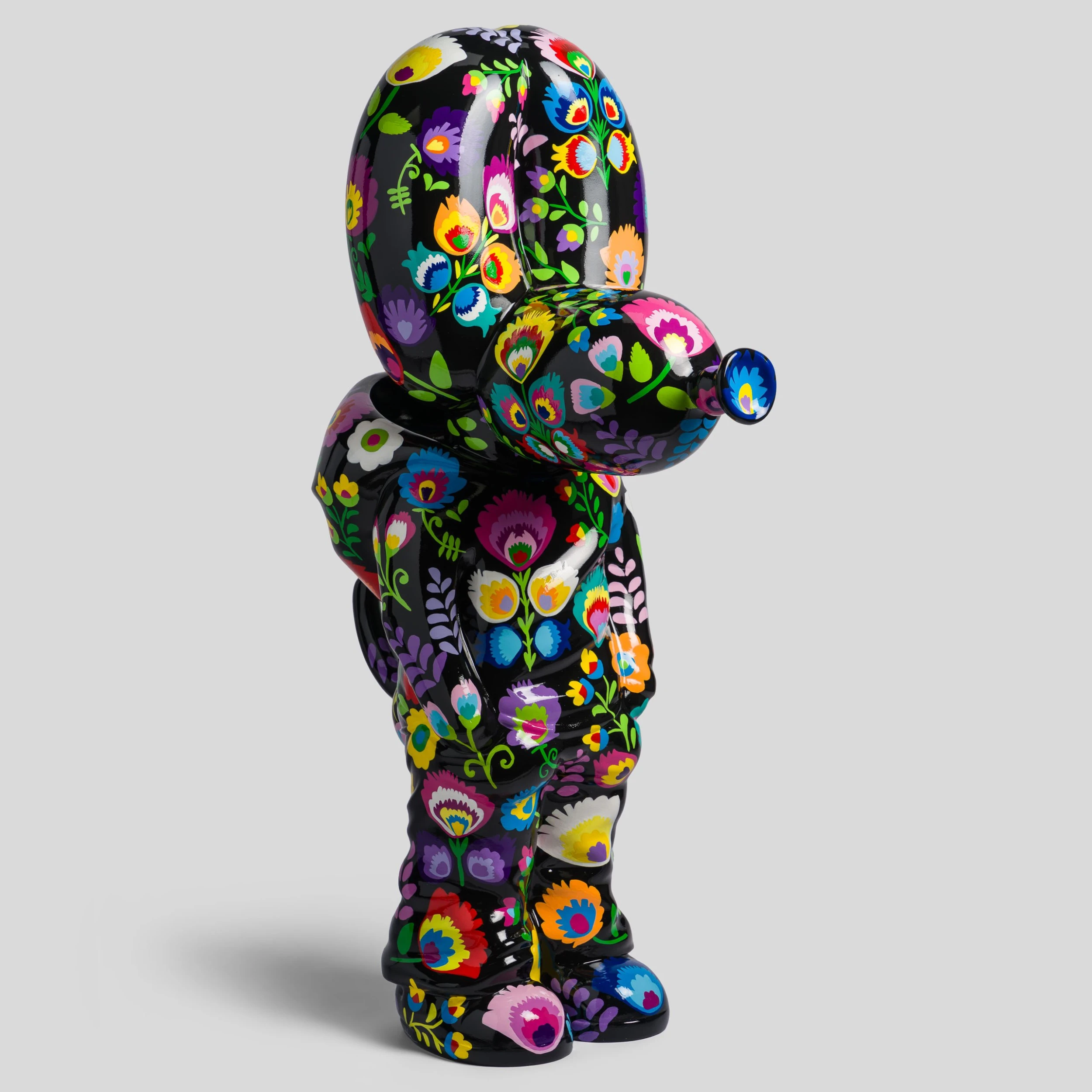 A bold and bright commentary on modern life and pop culture, this sculpture by elusive artist Whatshisname is the perfect addition to add a pop of colour to any space. In this piece, the artist has intertwined his traditional Polish style, heaped in tradition, with his modernist take of social culture, creating this beautiful statement sculpture. The world of traditional Polish crafts, with strong ties to traditional folk life and culturally meaningful, combines striking floral designs, delicate patterns, and symbolic imagery. The flower pattern in this piece is a symbol of the artist’s Polish heritage.