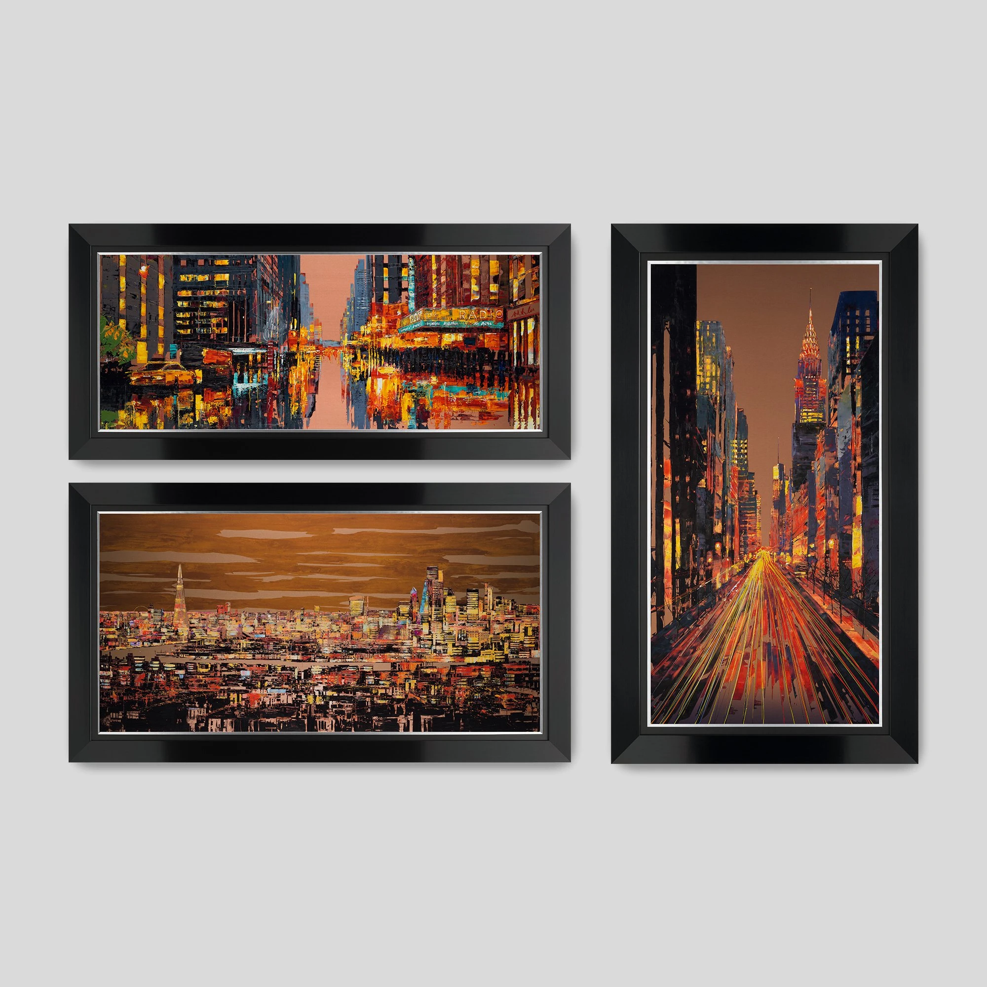 Perfect in minimal greyscale, industrial and warm-toned interiors, by Paul Kenton features incredible cityscapes displayed on copper substrate made from stainless steel. Replicating the texture and tone of the original artworks on 100% copper sheets, our specialist atelier team treat the steel with copper ink before adding hand-embellishment at the end of the laborious process.