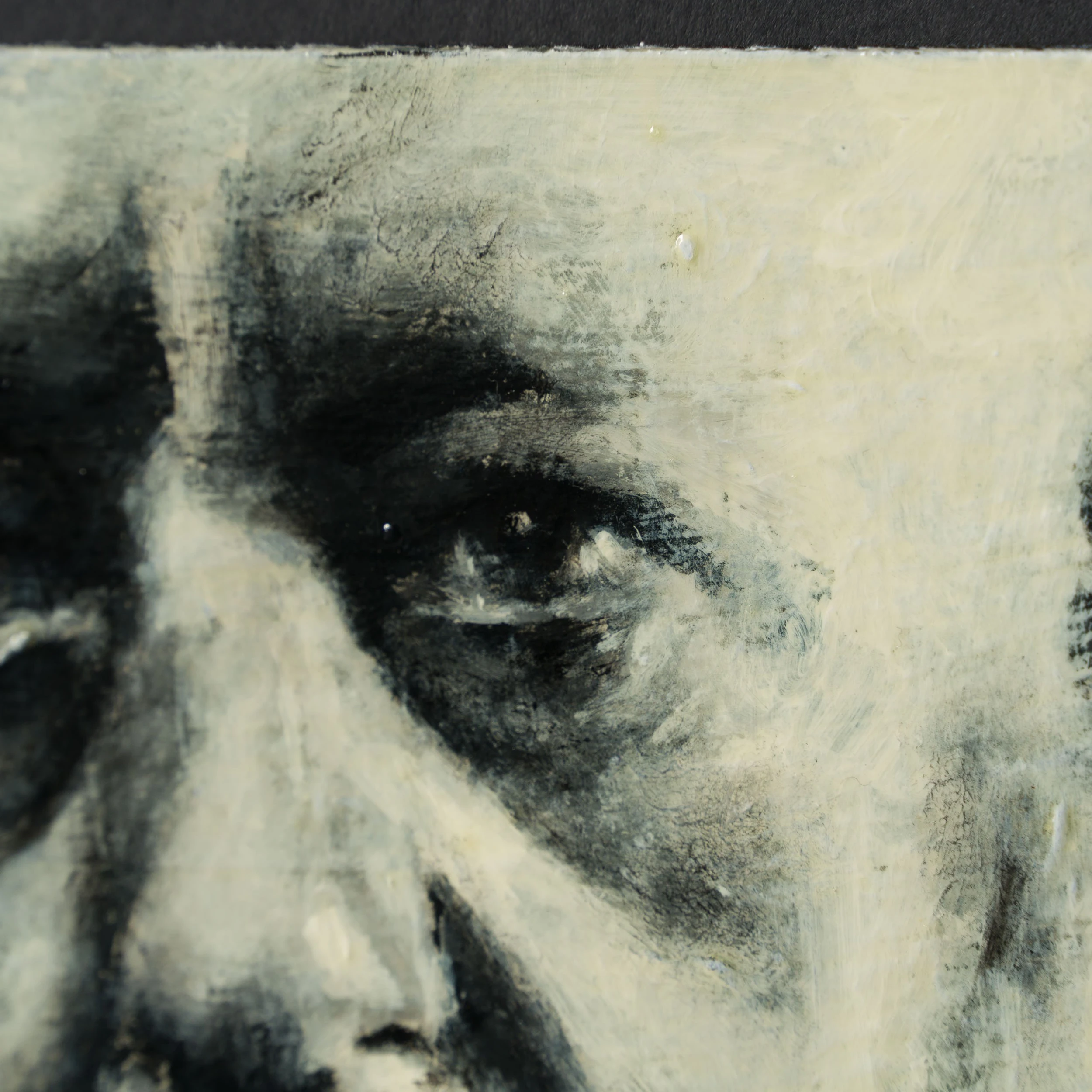 The deep swathes of black paint are skilfully blended and contrasted with white accents to create detailed and moving masterpieces. Working in an expressionist style, Jon creates representational artworks using mark making, a technique the artist has mastered throughout his career “The instant grab of attention and the ability to convey emotions so simplistically is not lost on me. Nevertheless, I want my work to be more than just a quick line drawing. These are personal paintings which if anything, I paint to make me smile, all the people portrayed have inspired, provoked, and interested me throughout my life.”
