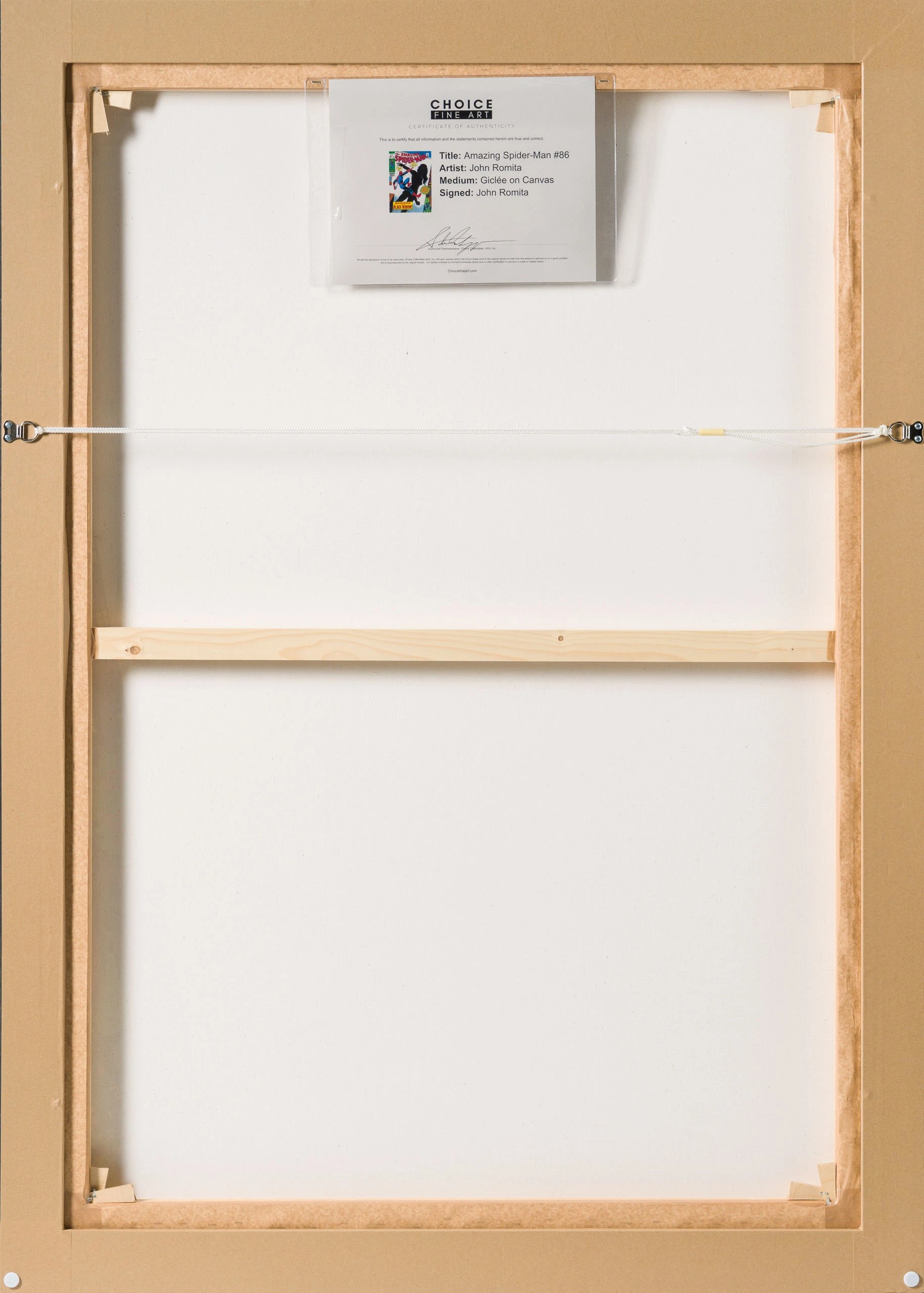 Published in 1963, “Amazing Spider-Man #86” is a Marvel Superhero unique edition of the issue’s cover, hand-signed by John Romita Sr. Spider-Man first appeared in Marvel comic books in August 1962, in Amazing Fantasy #15 in the Silver Age of Comic Books.