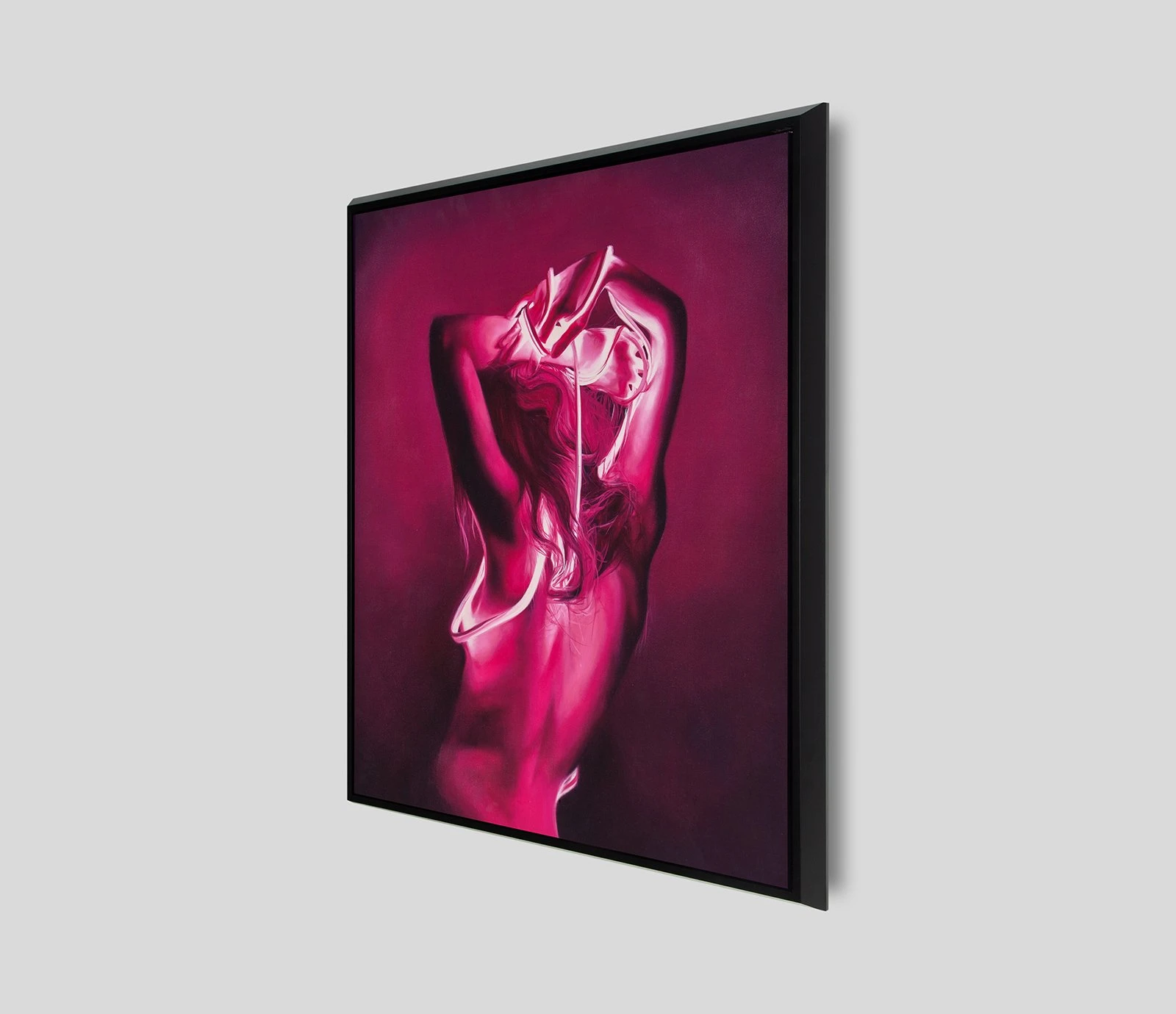 Sharing its name with an elegant Italian musical term, this electric original artwork by Emma-Leone Palmer emerges from her critical Ékstasis collection. Titled after the Greek word for ‘ecstasy’, Ékstasis is defined as a union with the divine or, the experience of an inner god. Connoting feelings of power, independence, passion and peace, this evocative artwork will represent different experiences to every viewer. To the artist, one of the many meanings of this collection is the feeling of listening to music with your friends in the kitchen, ‘somewhere in the singing and dancing you forget yourself and are somewhere in a perfect realm, a rapture.’