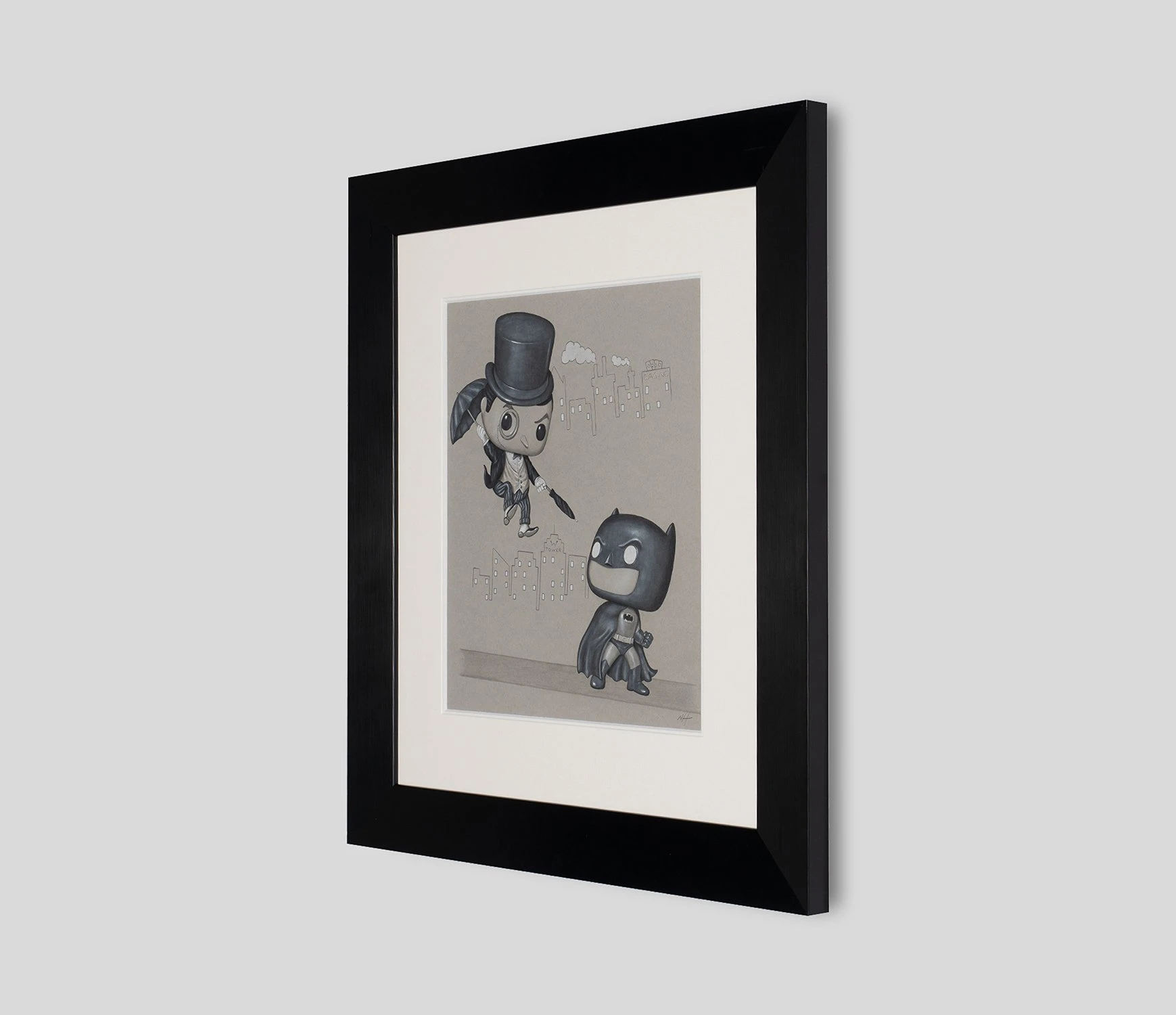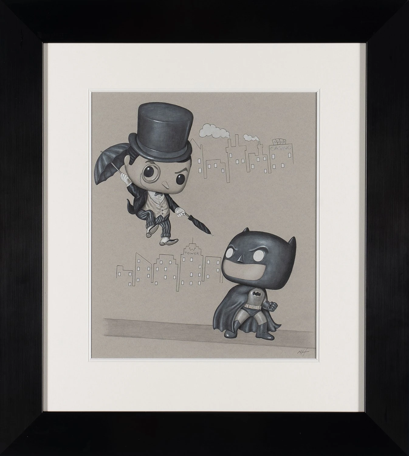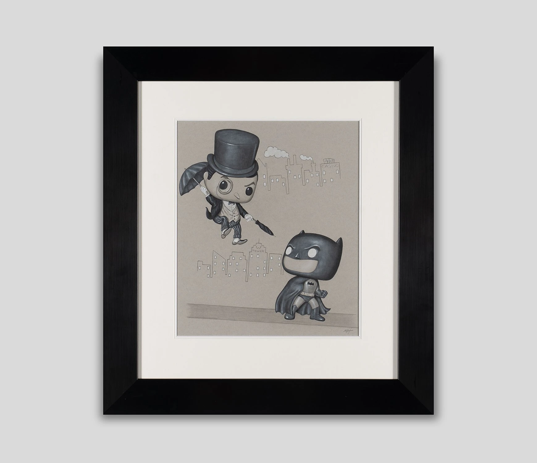 This iconic original artwork forms part of Nigel Humphries 2022 collection The Gotham Suite which sees the successful artist capture characters from the Batman saga across the many adaptations over the years. From the earliest images of Batman in the comics, to some of the saga’s best known character interpretations in film, this unique collection is sure to dazzle and thrill fans and collectors.
