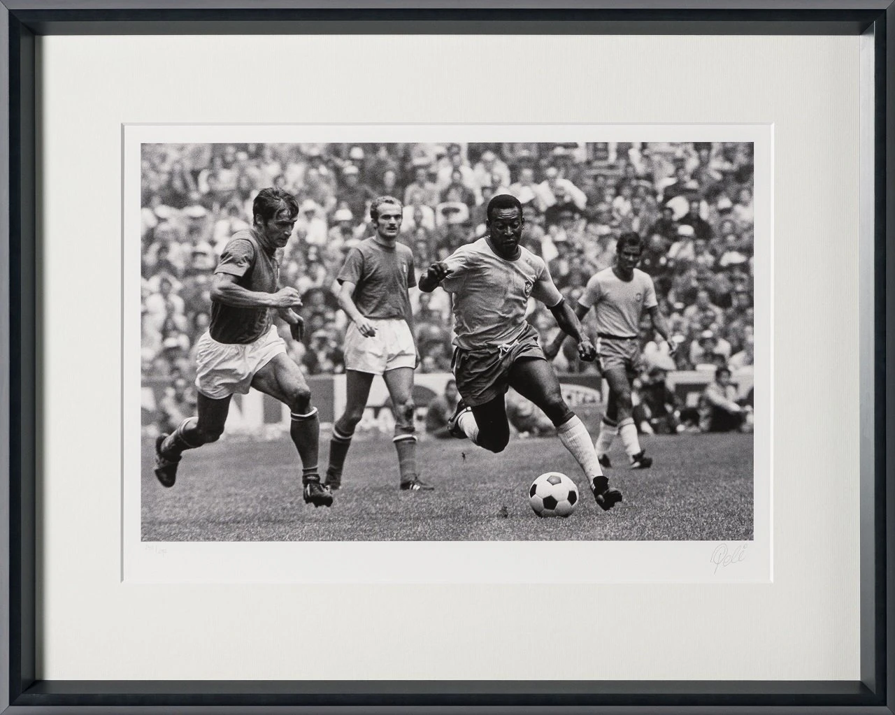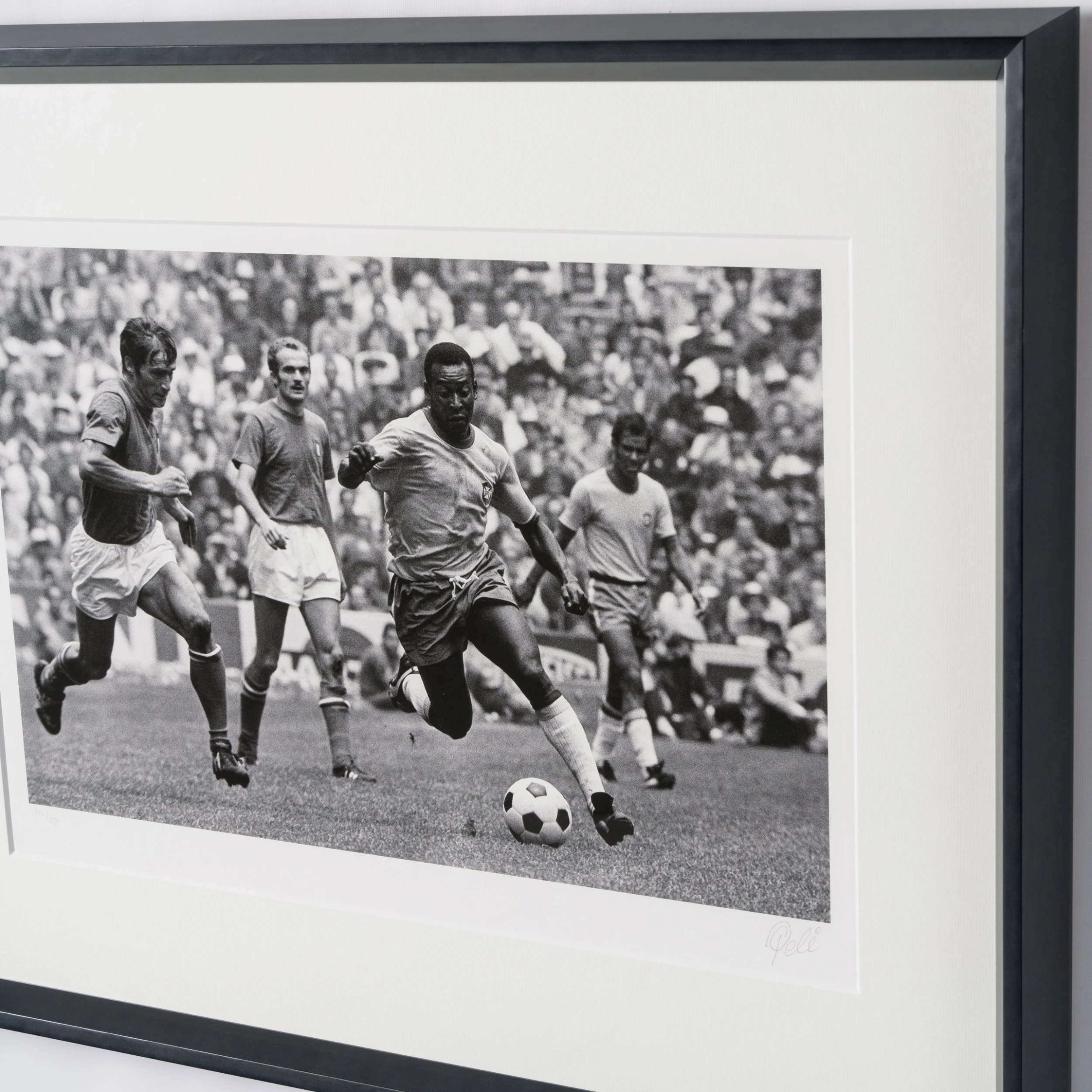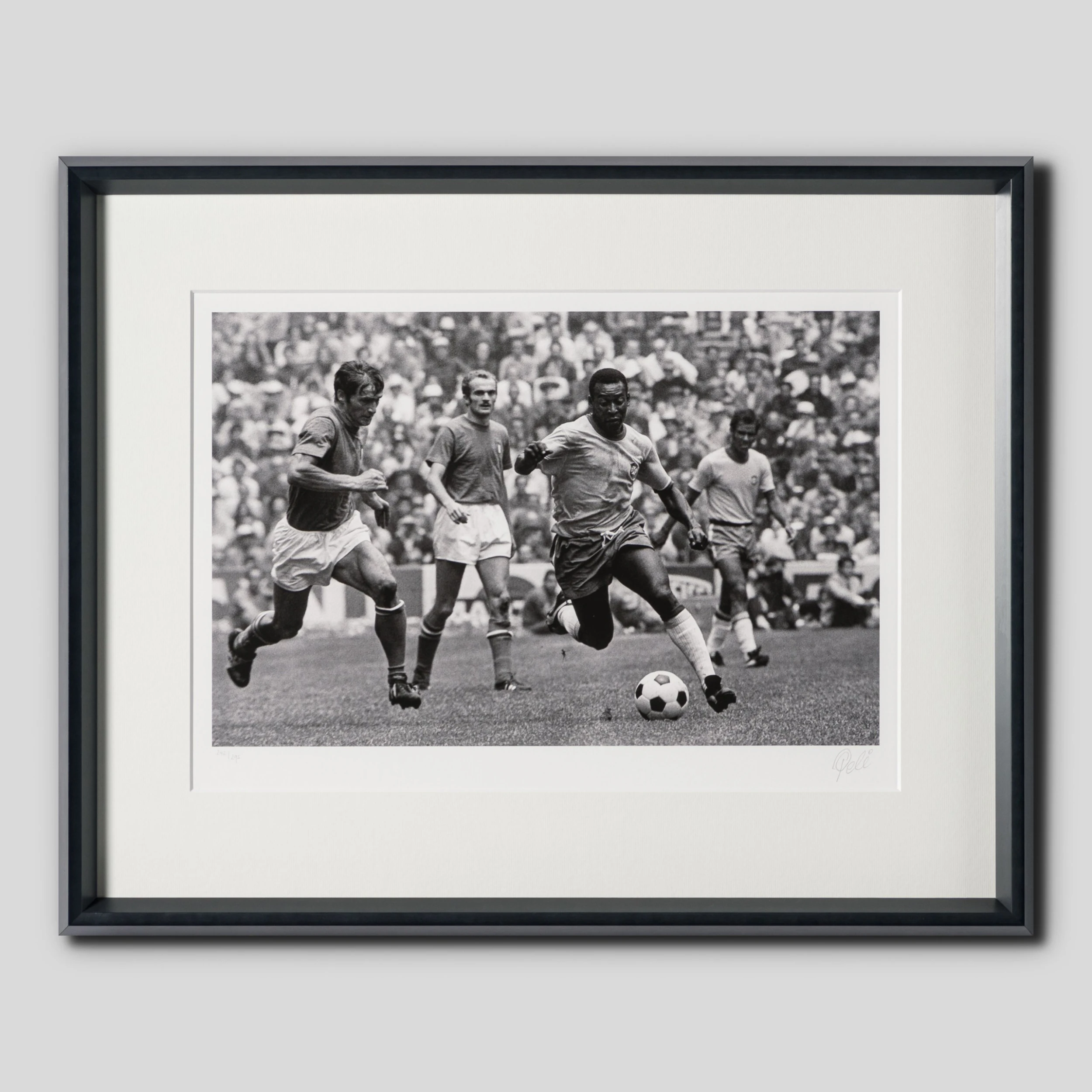 A signed, limited edition Giclée on paper which captures legendary Brazilian footballer Pelé during the 1970 World Cup Final.