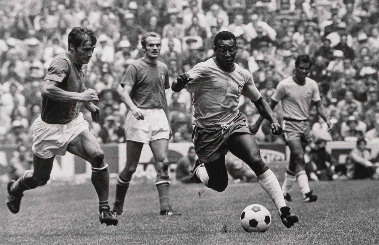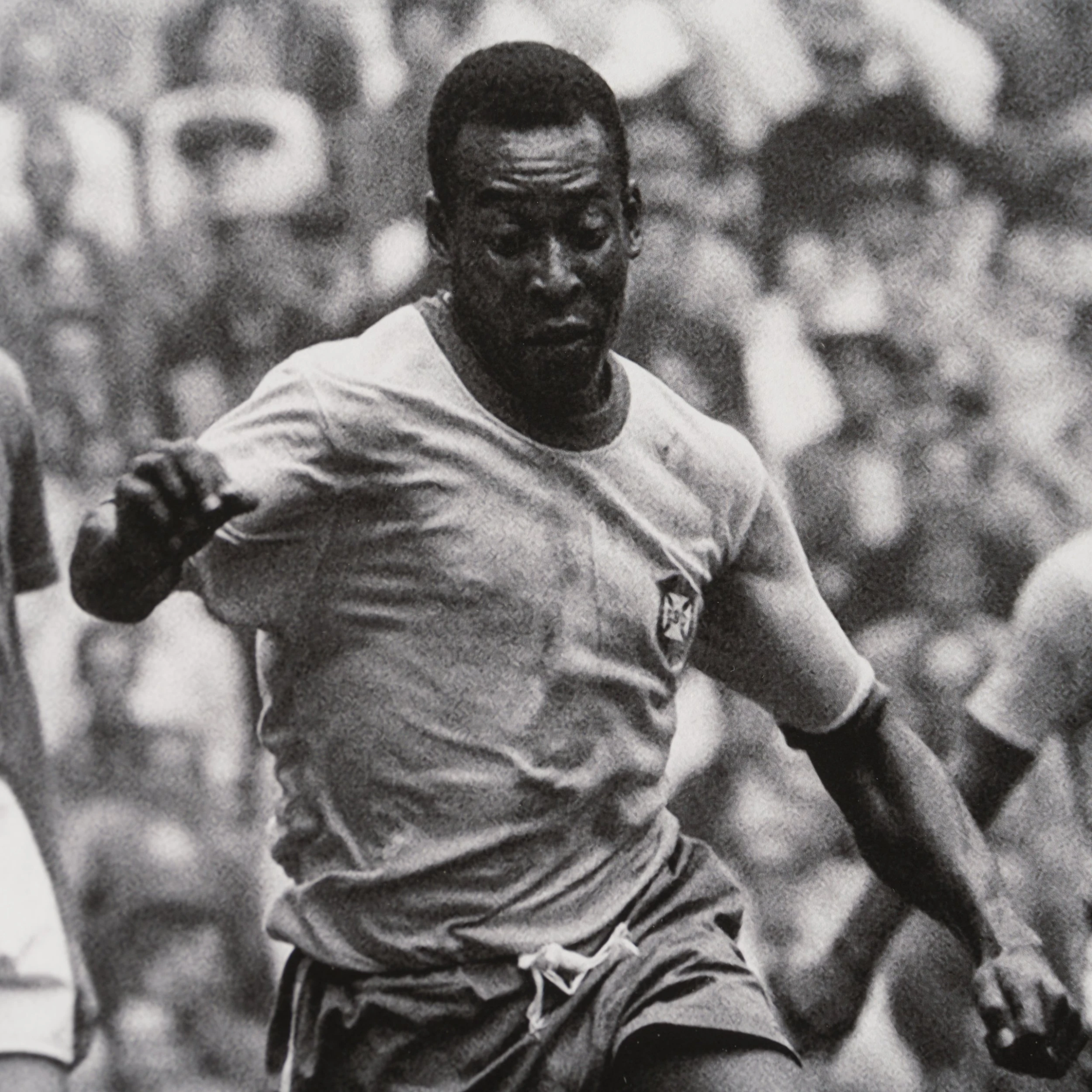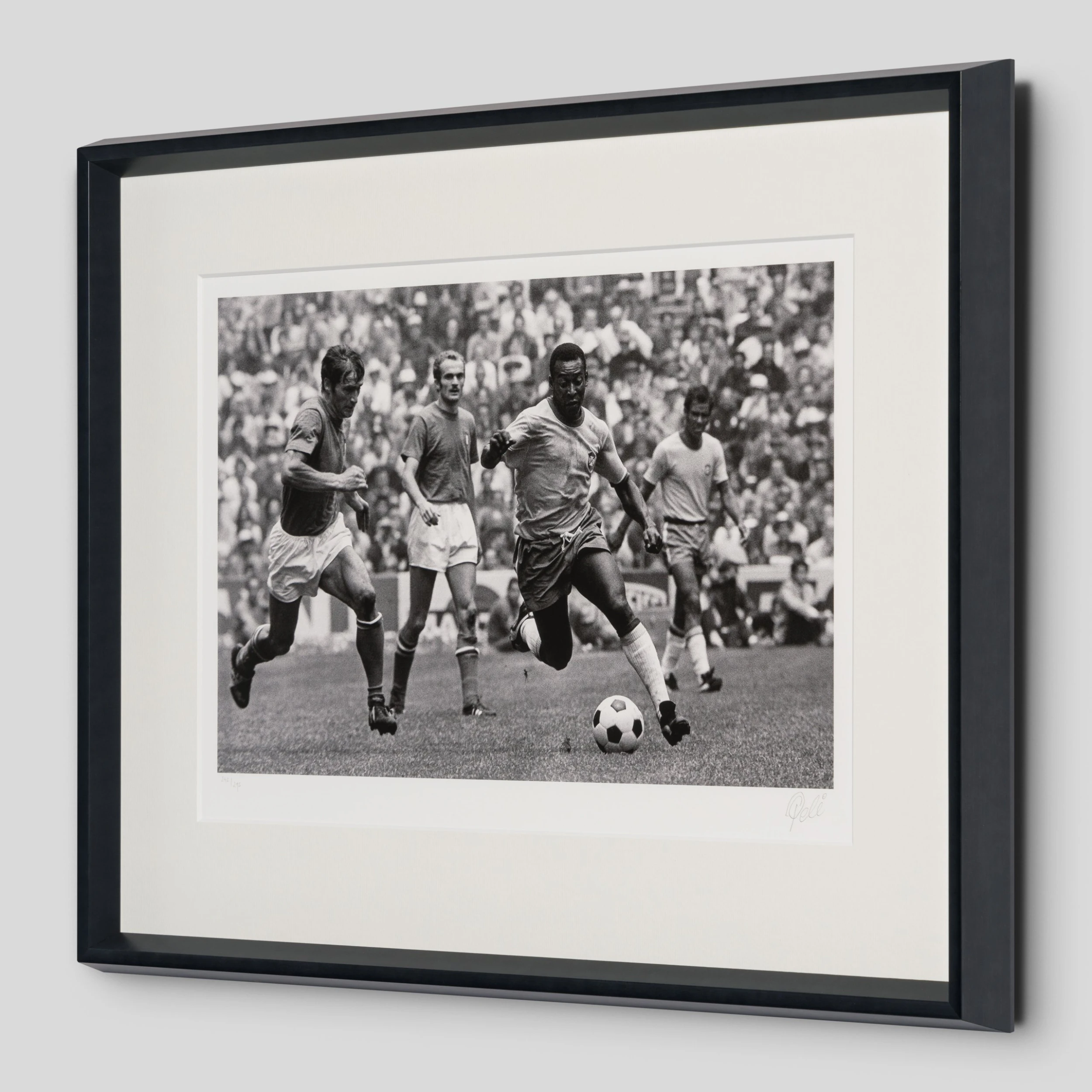 A signed, limited edition Giclée on paper which captures legendary Brazilian footballer Pelé during the 1970 World Cup Final.