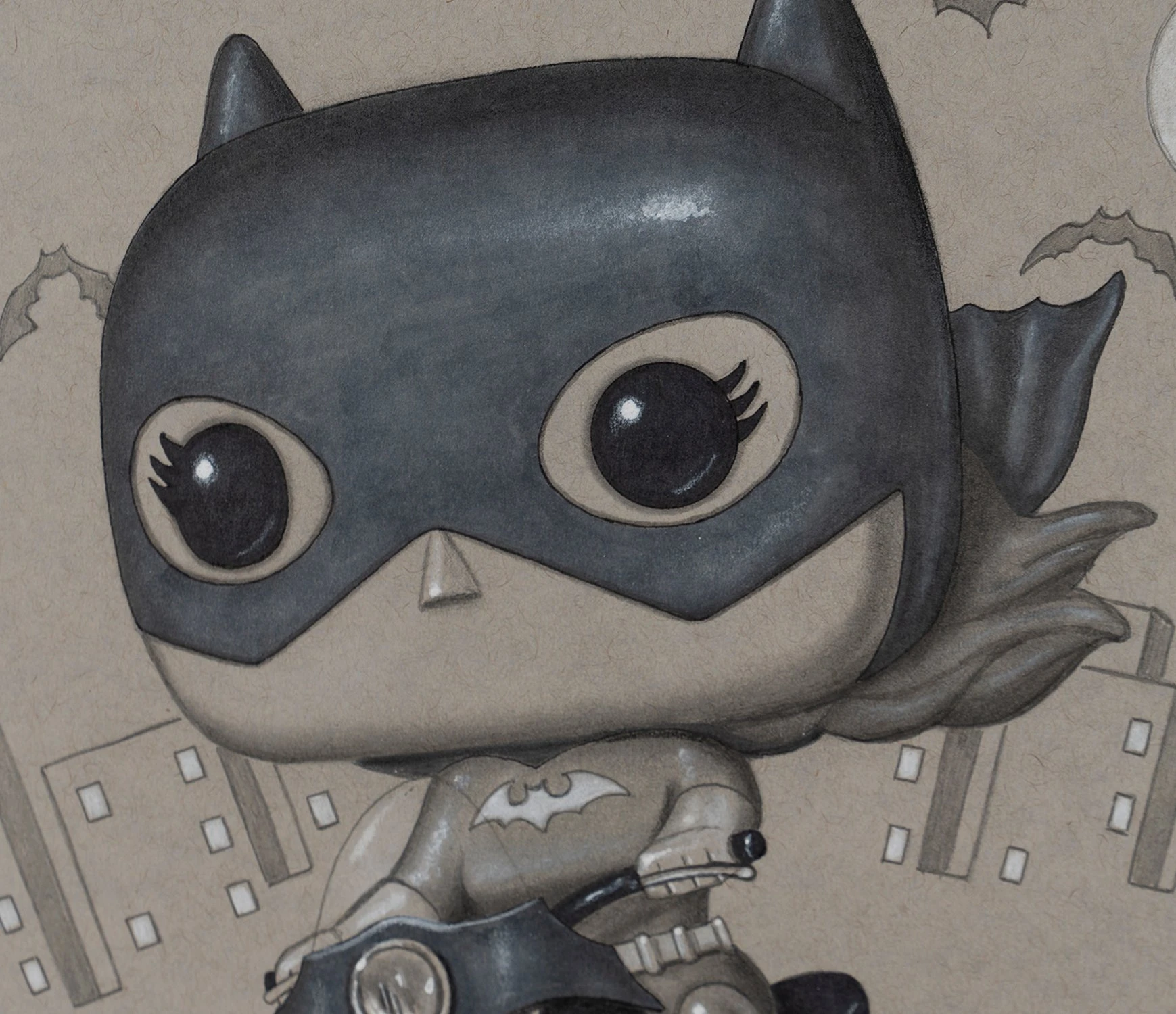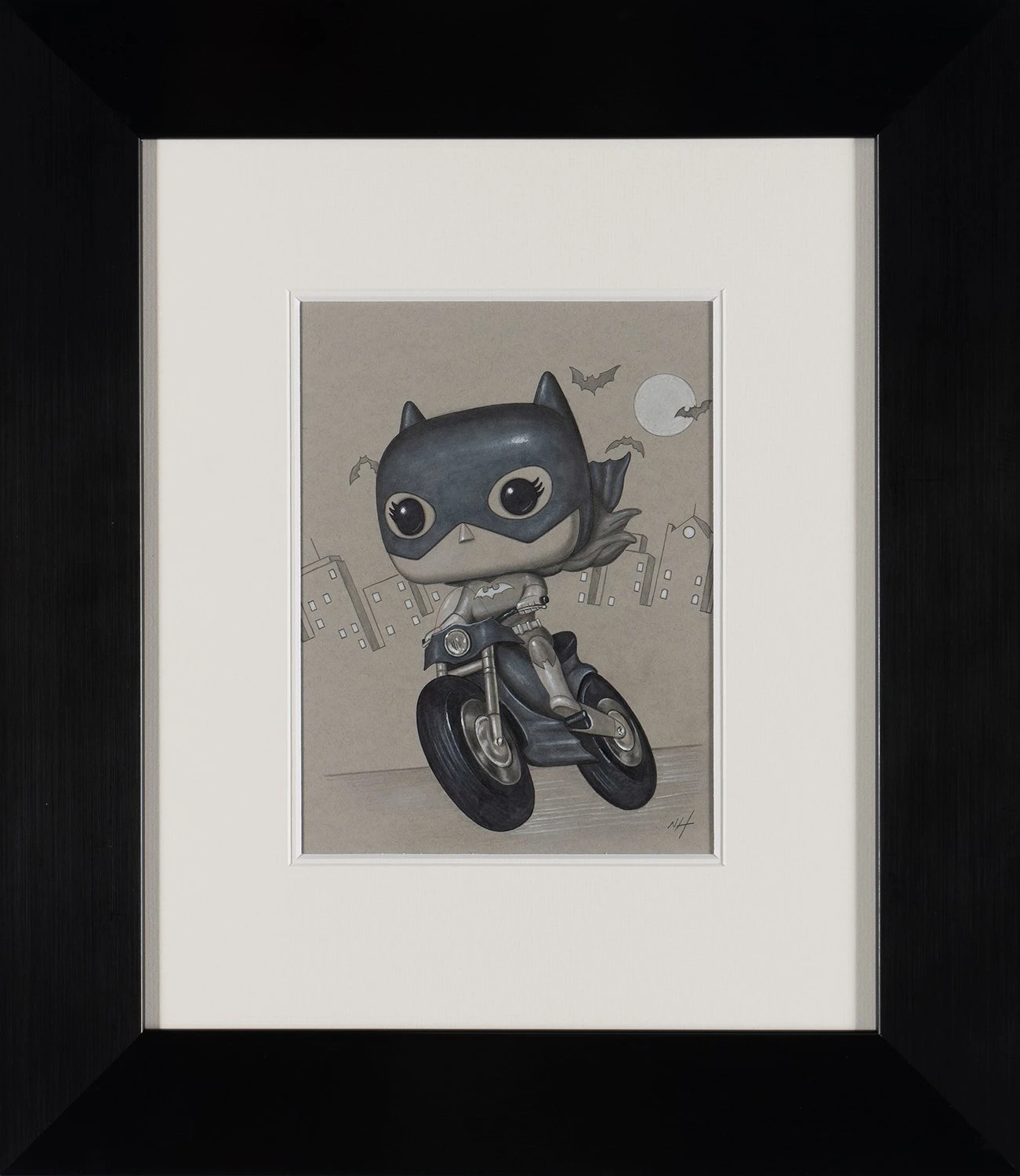 This iconic original artwork forms part of Nigel Humphries 2022 collection The Gotham Suite which sees the successful artist capture characters from the Batman saga across the many adaptations over the years. From the earliest images of Batman in the comics, to some of the saga’s best known character interpretations in film, this unique collection is sure to dazzle and thrill fans and collectors.