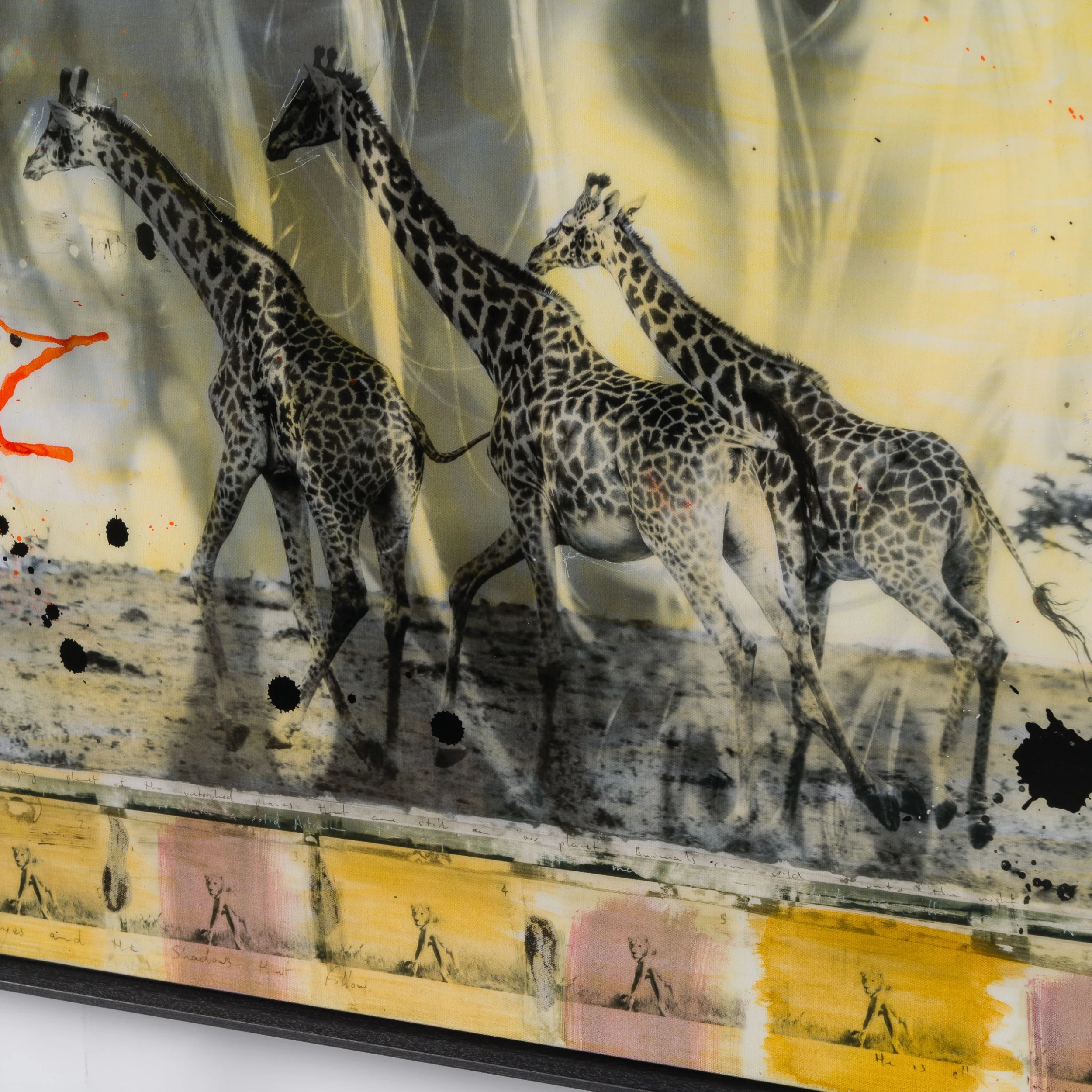 Characterised by the juxtaposition between wildlife and cultural photography, this incredible piece forms part of his introspective collection Grass Roots 2023. Using locally sourced pigments and spices to enhance the monochromatic grasslands of The Maasari Mara, Raphael’s internationally acclaimed photography takes on new life in these artworks with organic and indigenous tones and subjects.