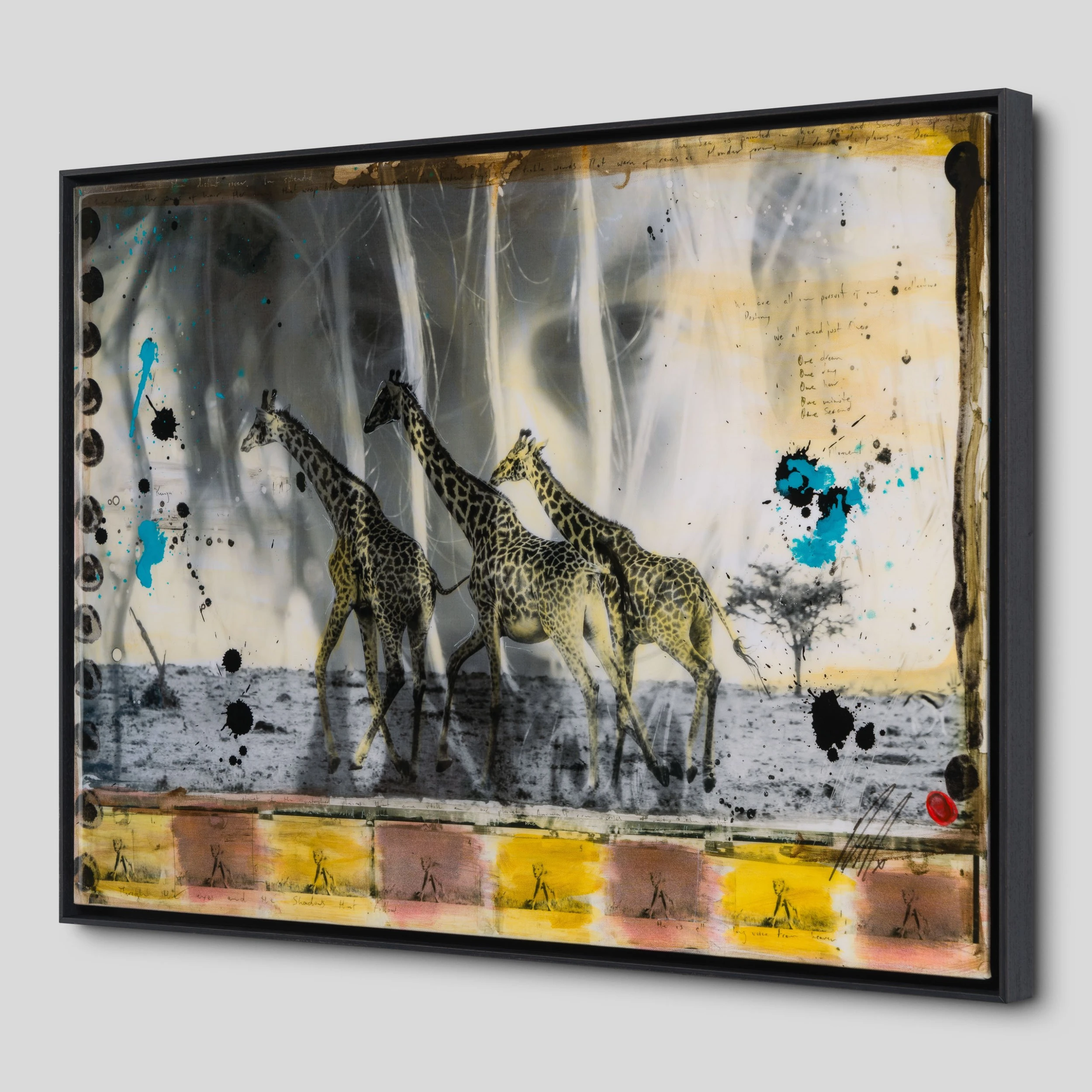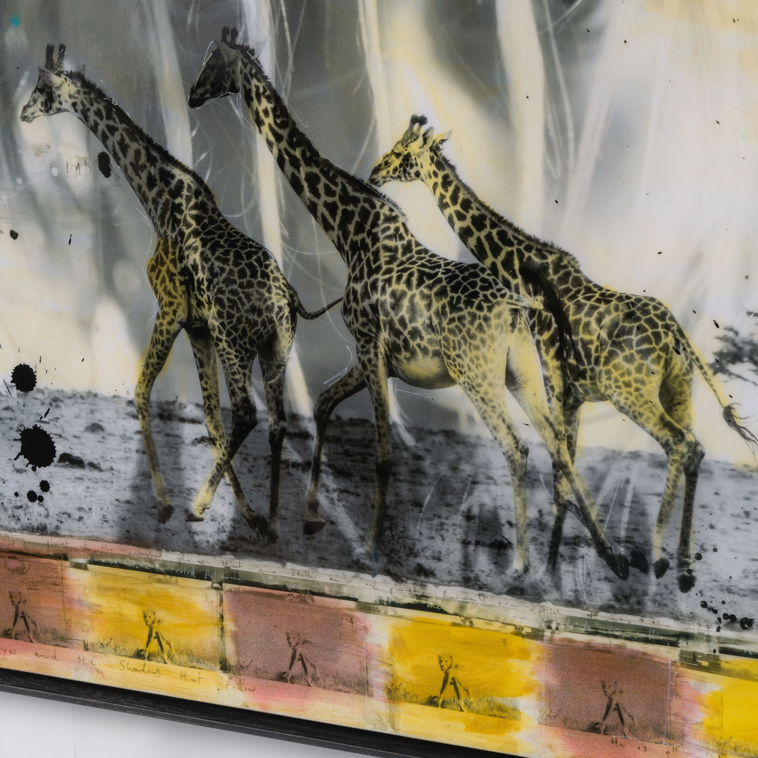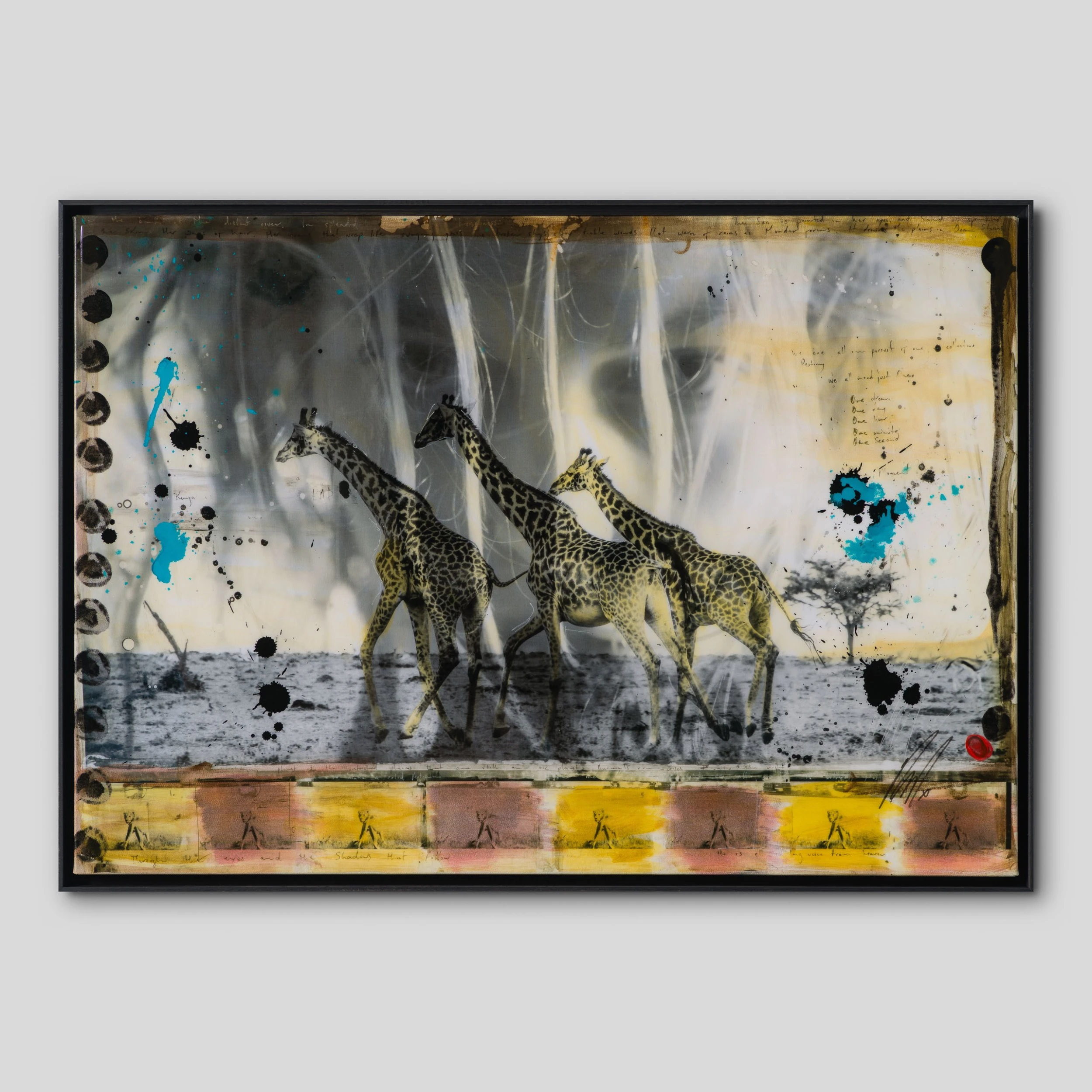 Characterised by the juxtaposition between wildlife and cultural photography, this incredible piece forms part of his introspective collection Grass Roots 2023. Using locally sourced pigments and spices to enhance the monochromatic grasslands of The Maasari Mara, Raphael’s internationally acclaimed photography takes on new life in these artworks with organic and indigenous tones and subjects.