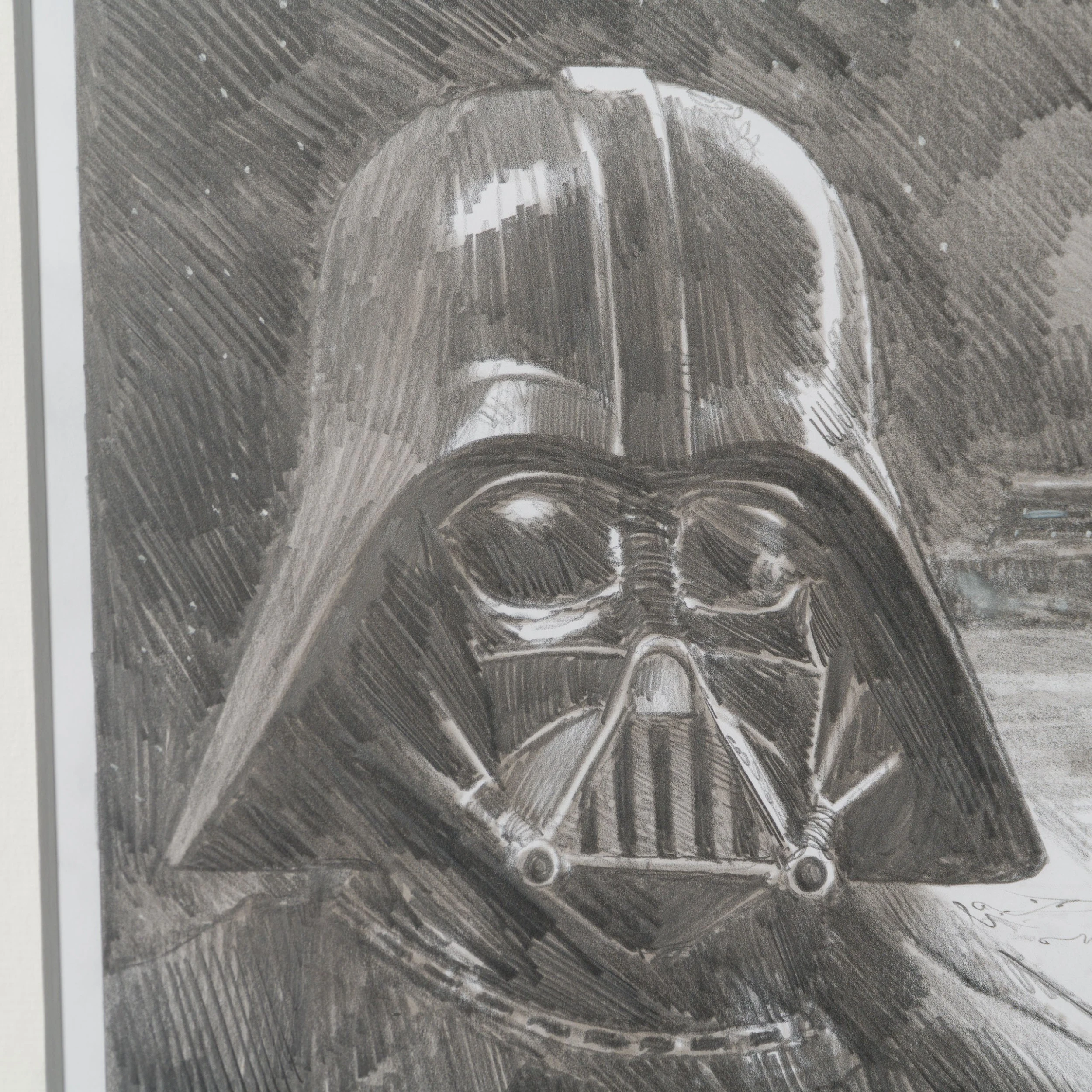 Each drawing created by Robert captures the essence of the iconic scene and allows collectors to own a real piece of Star Wars history. As part of his amazing portfolio, created this special drawing featuring Darth Vader.