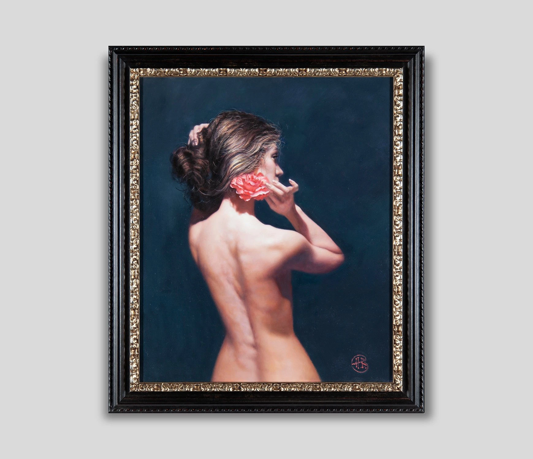 An accomplished student of art history and well versed in his craft, figurative painter is a modern master. Here, Hamish has beautifully captured the contours of the female form with a precision and romance that rivals Renaissance masters.