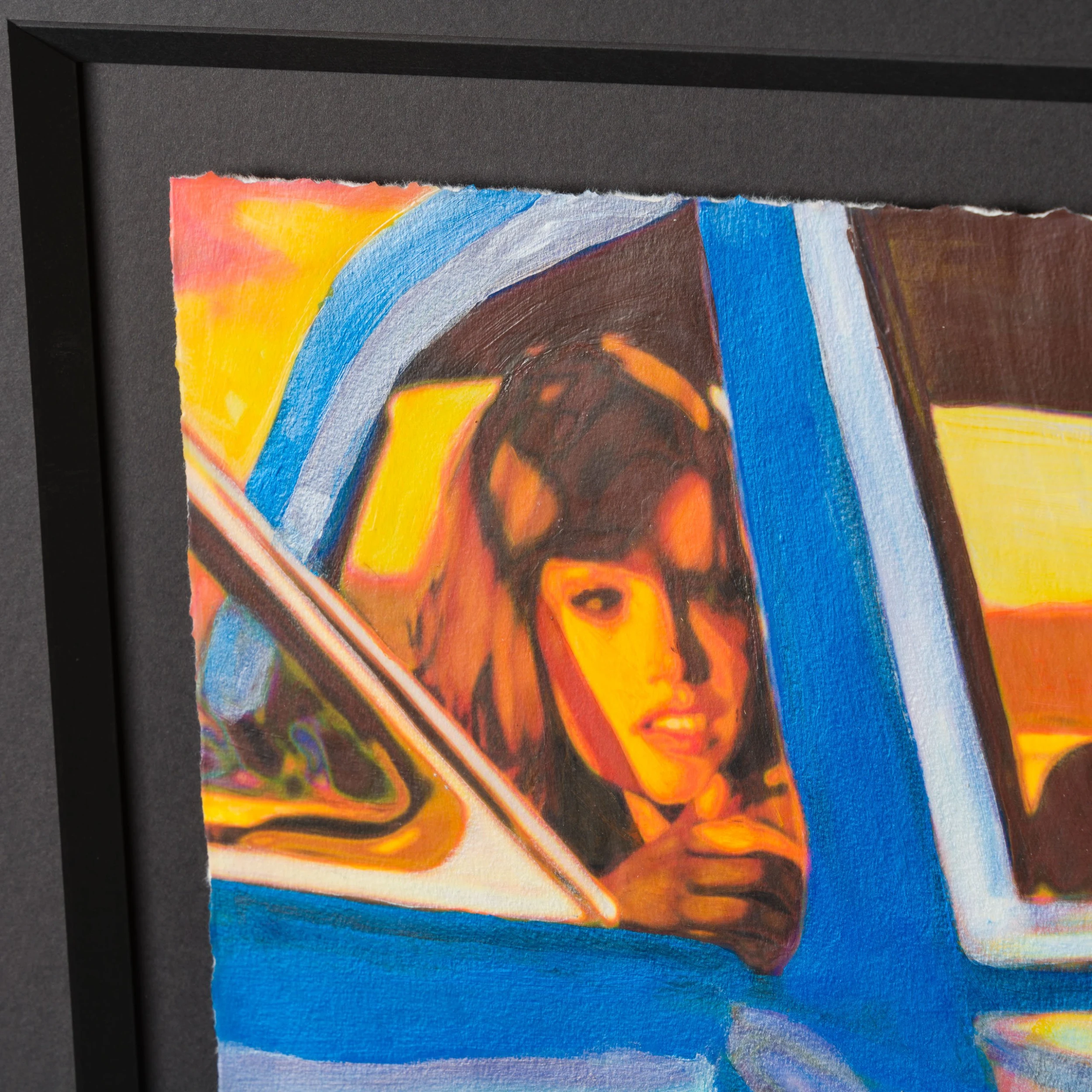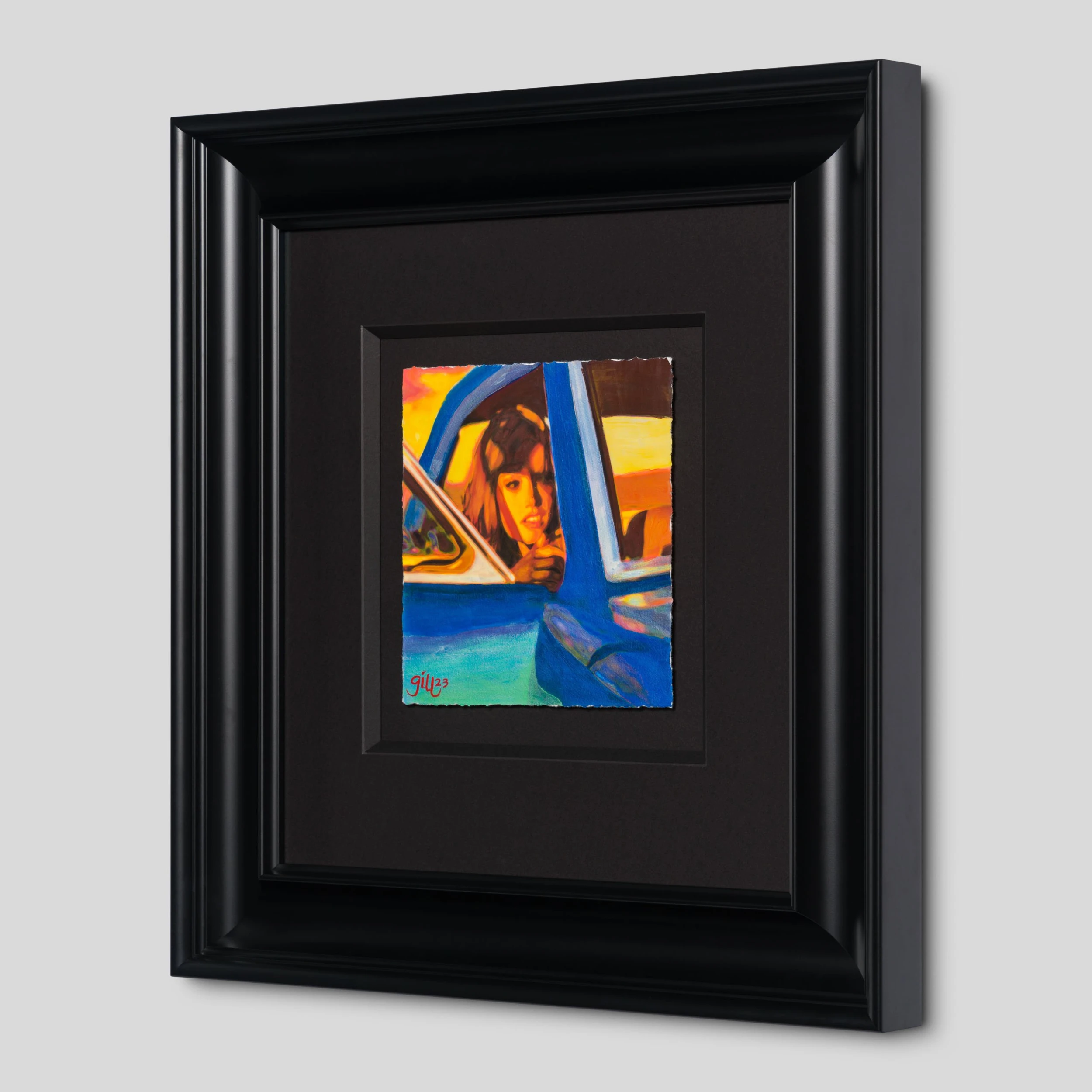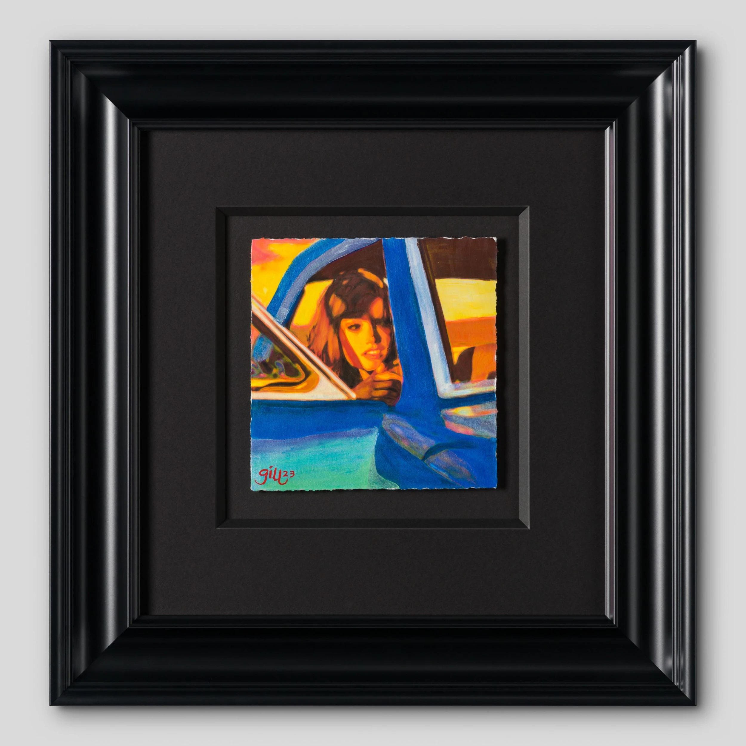 One of Pop Art’s hallmarks is its obsession with popular culture, and Gill’s Women in Cars series is firmly rooted in this. He began making the works in the 1960’s, when American magazines LIFE and TIME began printing paparazzi shots of film stars getting out of their cars. Women in Cars could offer something the magazines couldn’t – colour – and when the pieces began appearing in galleries, they were the epitome of cool modernity, and gave the public a chance to see celebrity in a new light. One of the earliest versions of the series, ‘Laughing Woman in car and Close Up’ was purchased by and exhibited in MoMa between works by Picasso and Odilon Redon. In the years 2020 to 2022, almost sixty years after his first works, at the age of over 85 years, acrylic paintings and studies are created which show the “Women In Cars” manifested in all their colourfulness and timeless presence. These acrylic originals and studies are modern embodiments of an idea that was ahead of its time, anticipating the omnipresence of social media and the struggle to protect a personal and private space of existing. These modern pieces are steeped in the history of the pop art movement and bring a fresh and exciting insight into the workings of one of the last living pioneers of the subject. artwork from this collection .