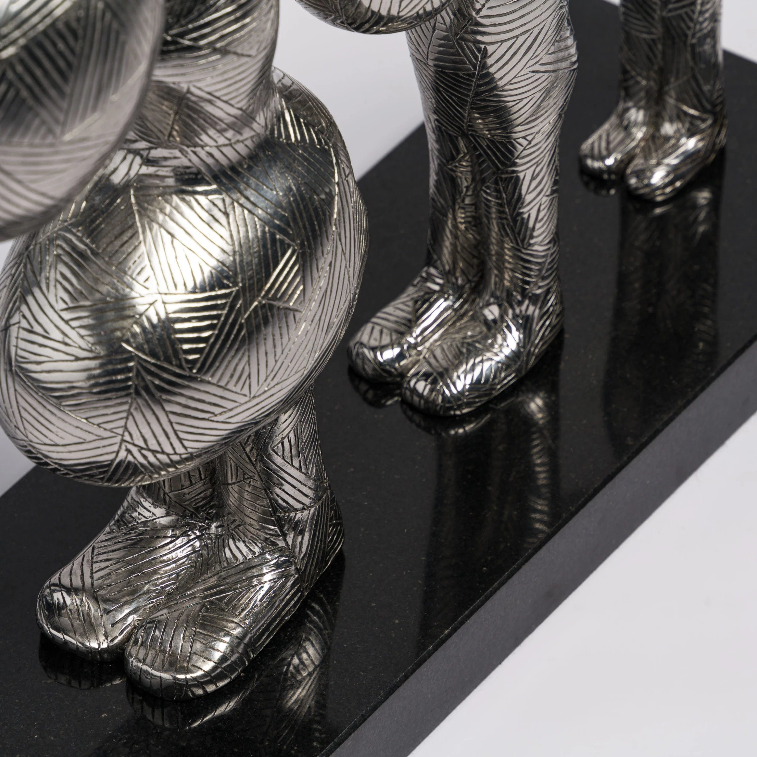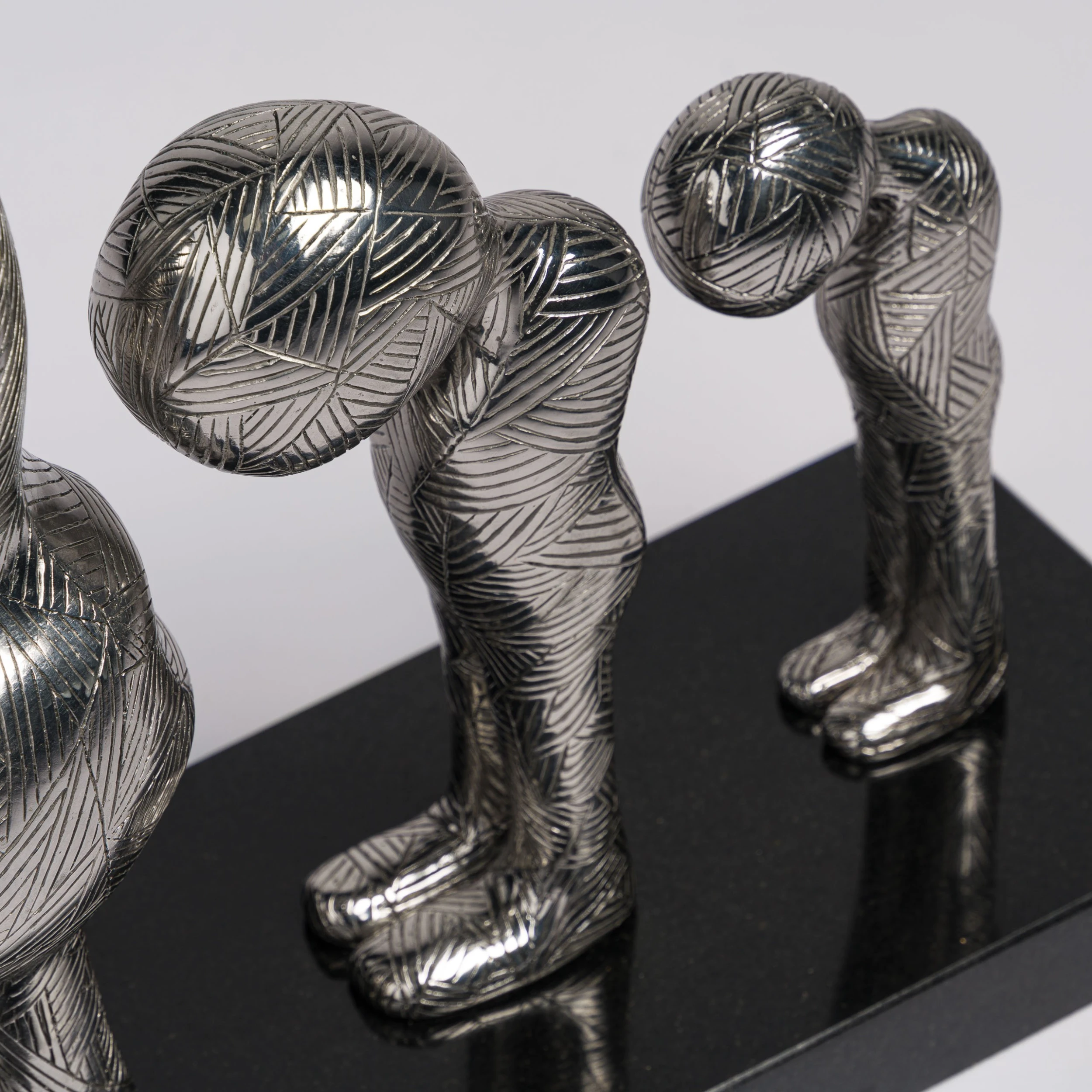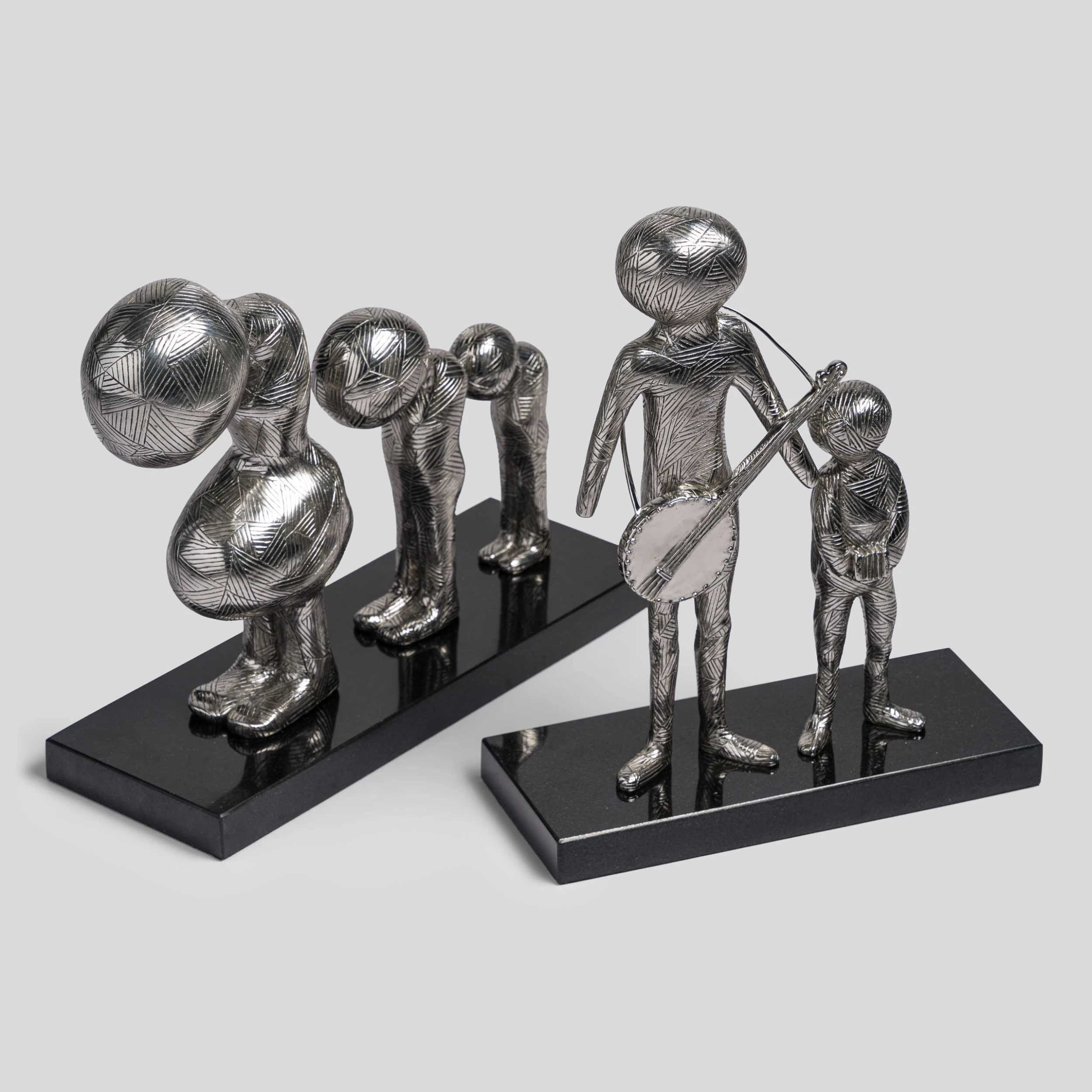 Set of two Polished Stainless Steel Sculptures with Black Granite Bases by Billy Connolly.