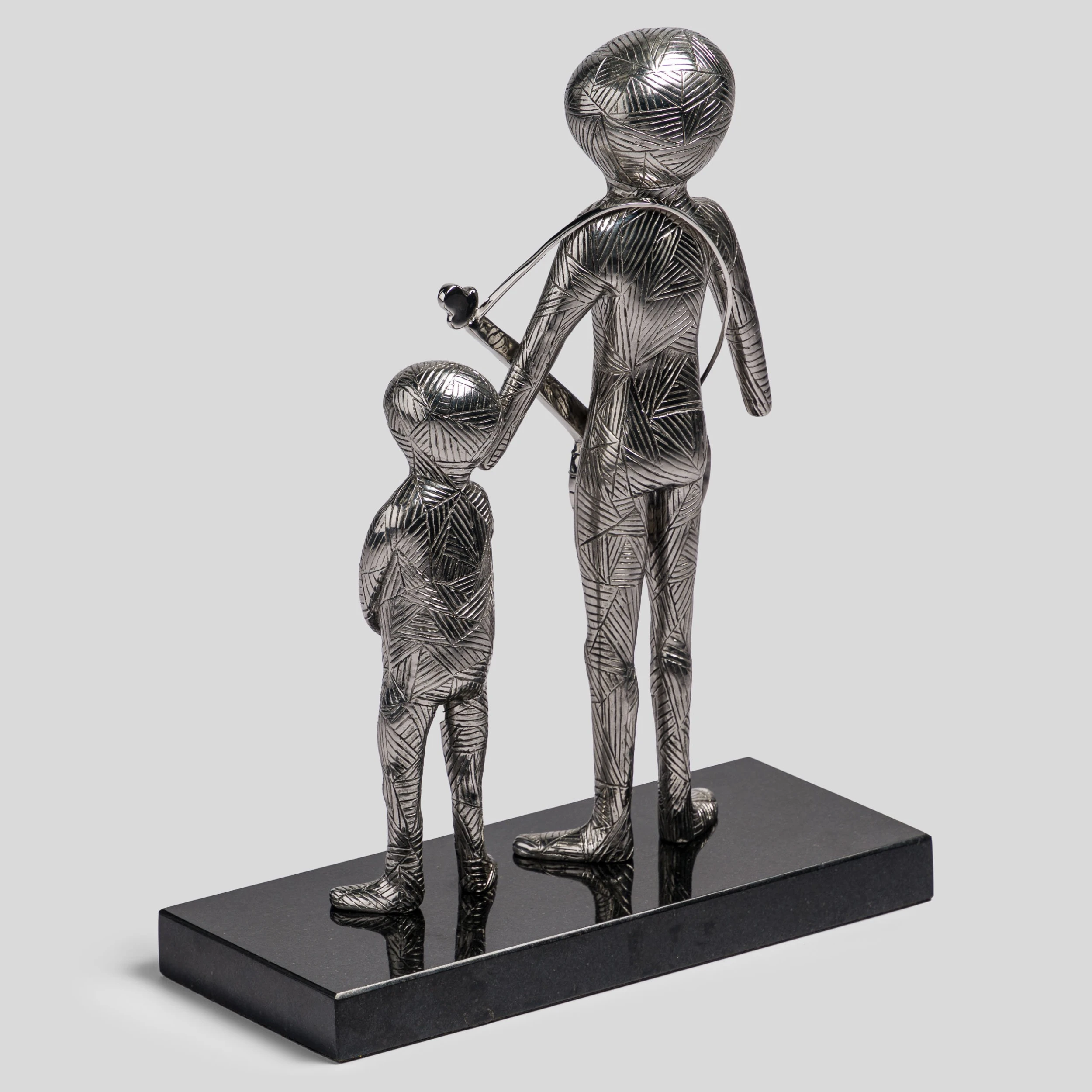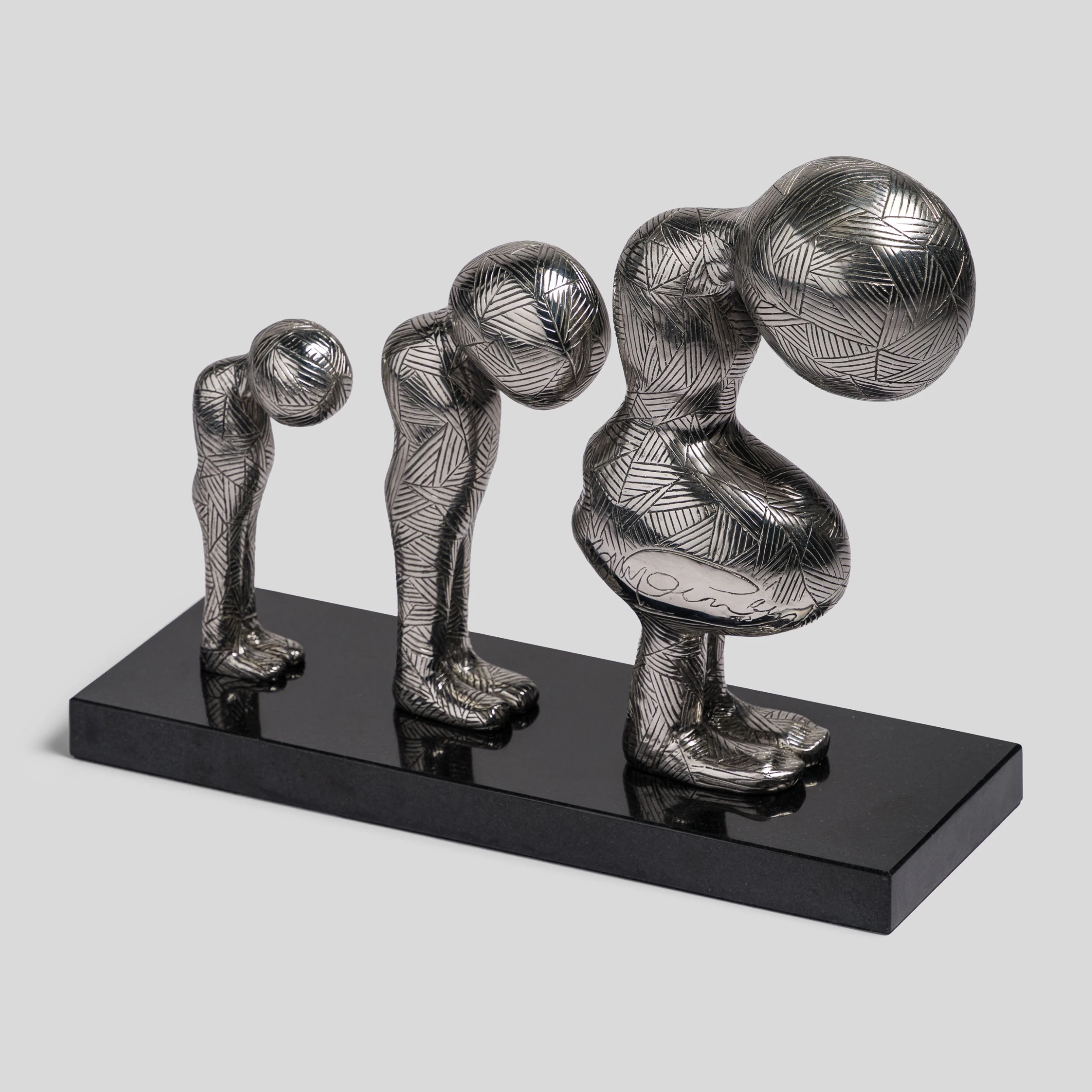 These thought provoking sculptural images are very dear to Billy’s heart. Formed first in clay to capture the detailed lines of his signature style, these sculptures are then cast in stainless steel, subtly referencing Billy’s time as a welder in the shipyards of Glasgow. Contrast is created between detailed and patterned areas through intricate texture and polishing to beautiful and dramatic effect. Timeless artworks from one of our time’s most original thinkers.