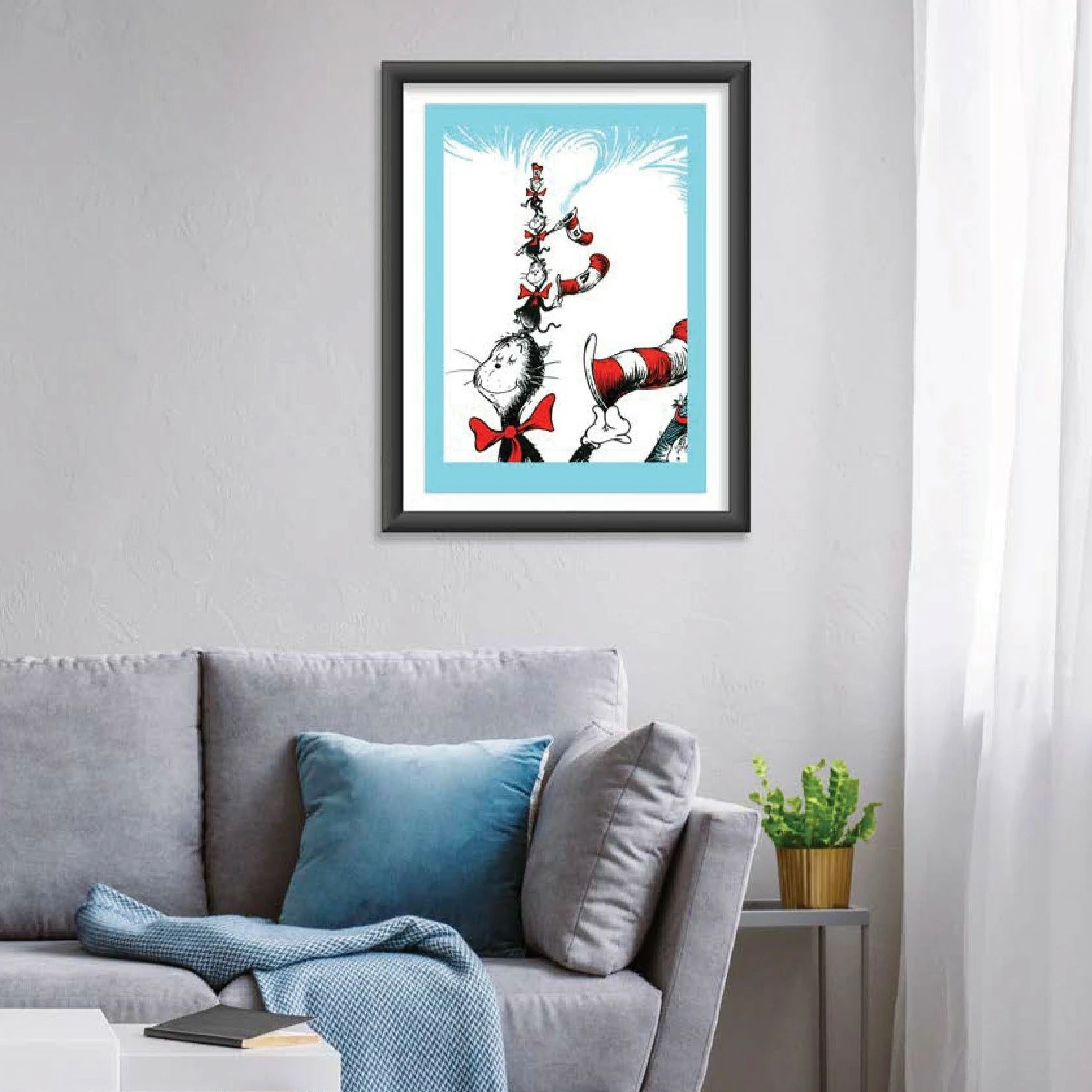 Adapted posthumously from the illustration for the 1958 book, “The Cat in the Hat Comes Back”. When Ted Geisel wrote “The Cat in the Hat”, Ellen Goodman of The Detroit Free Press wrote that it was “a little volume of absurdity that worked like a karate chop on the weary little world of Dick, Jane and Spot.”