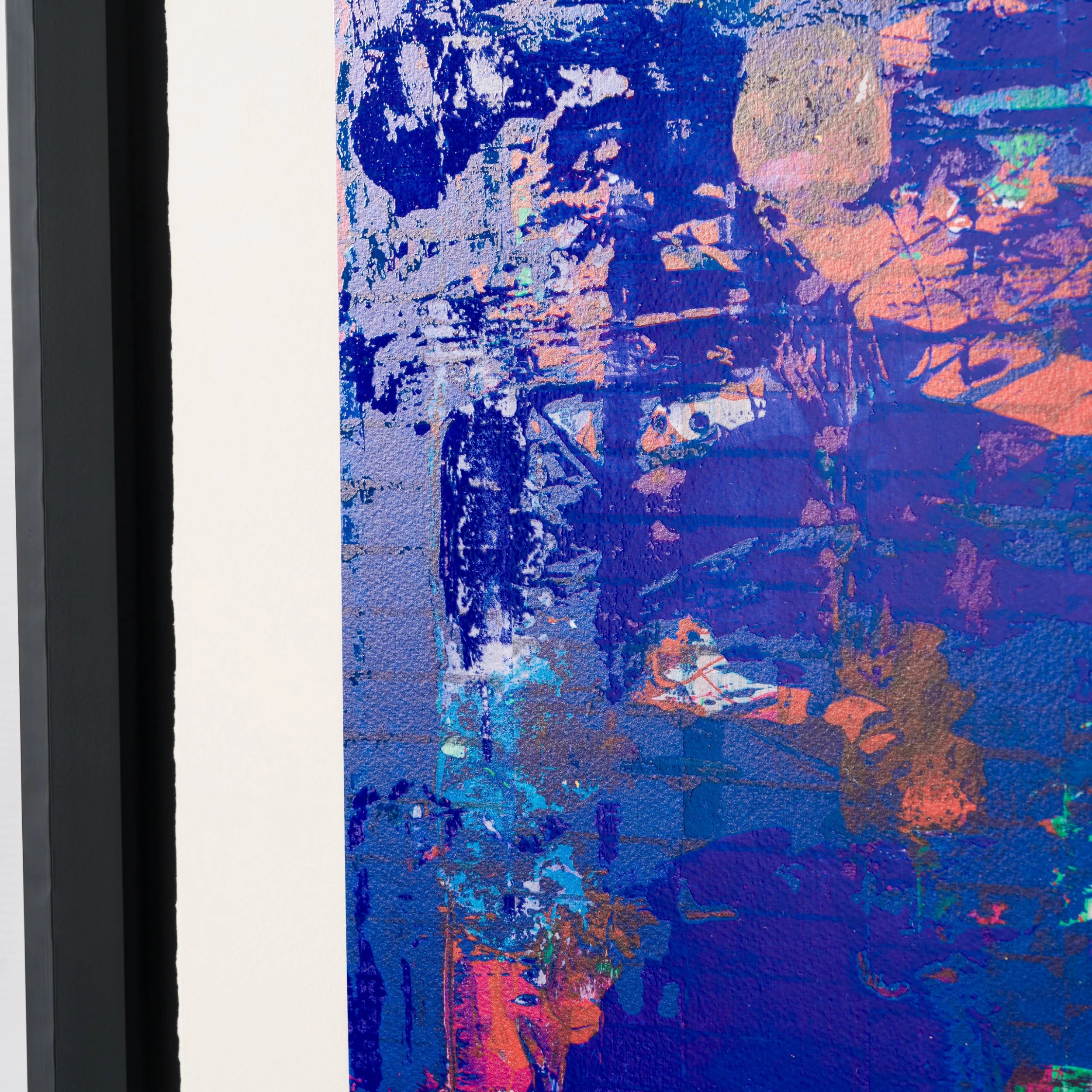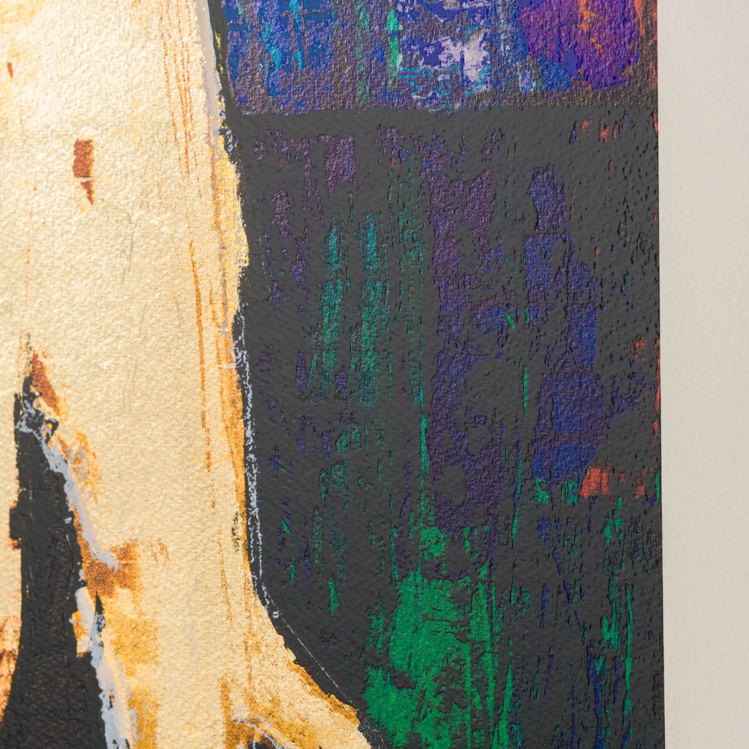 In Johnny Depp’s latest series, (2023), an intriguing, silhouetted figure stands before four different, yet parallel, realms in the collection of mixed media limited editions. Layering each composition with varying textures, contrasting blocks of colour and confident mark-making, has developed a body of work which demonstrates his expressive creativity.