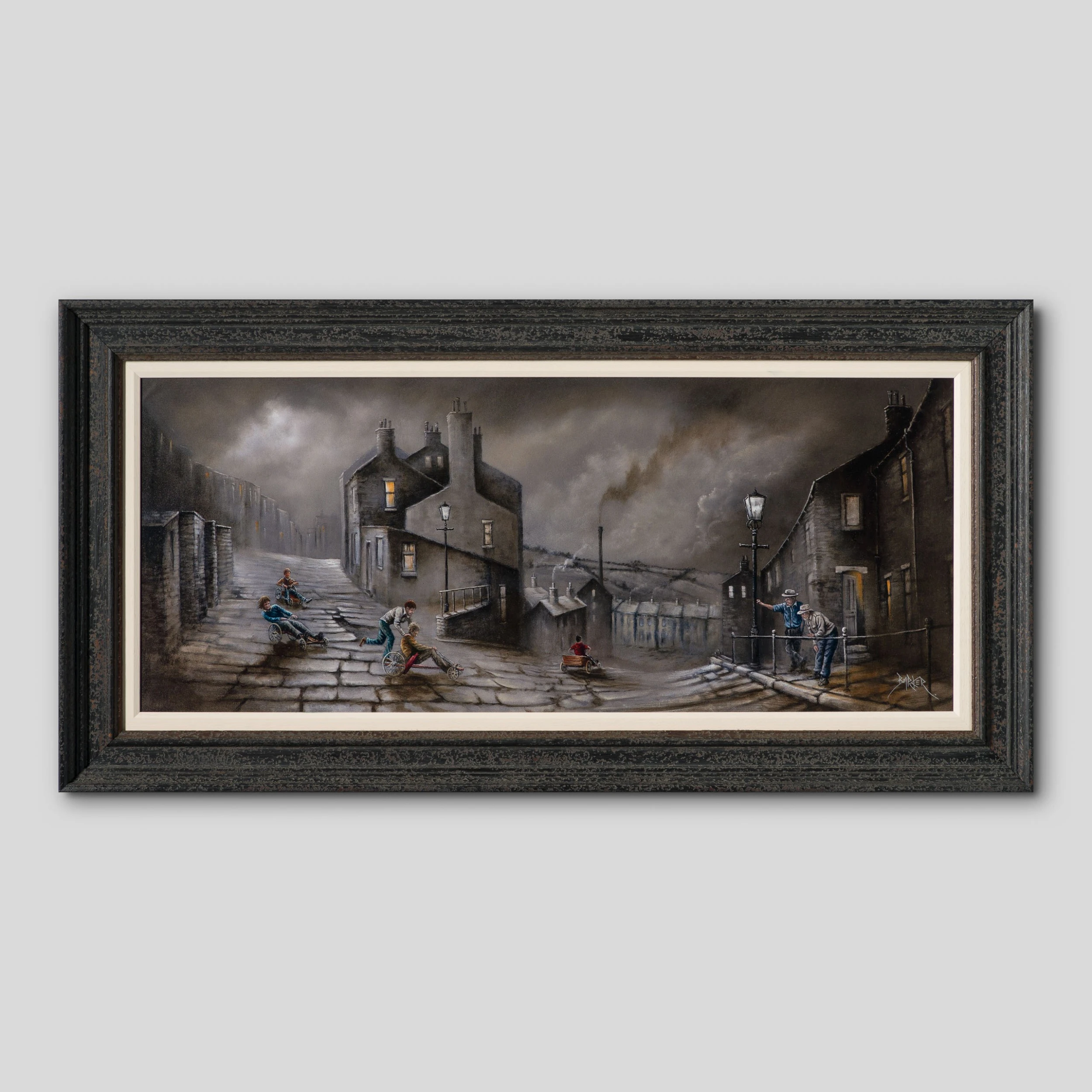 Inspired by the Yorkshire mill towns that shaped his youth, is known for his ‘Northern Impressionism’ style, and he has continued this with his latest collection bringing us ‘Tiddlers’ and Whacky Racers’. Depicting touching childhood, family and romantic scenes, his nostalgic and charming artworks feature his signature neutral palette of greys with splashes of vibrant colour and a unique inner glow created by the manipulation of light and shadow.