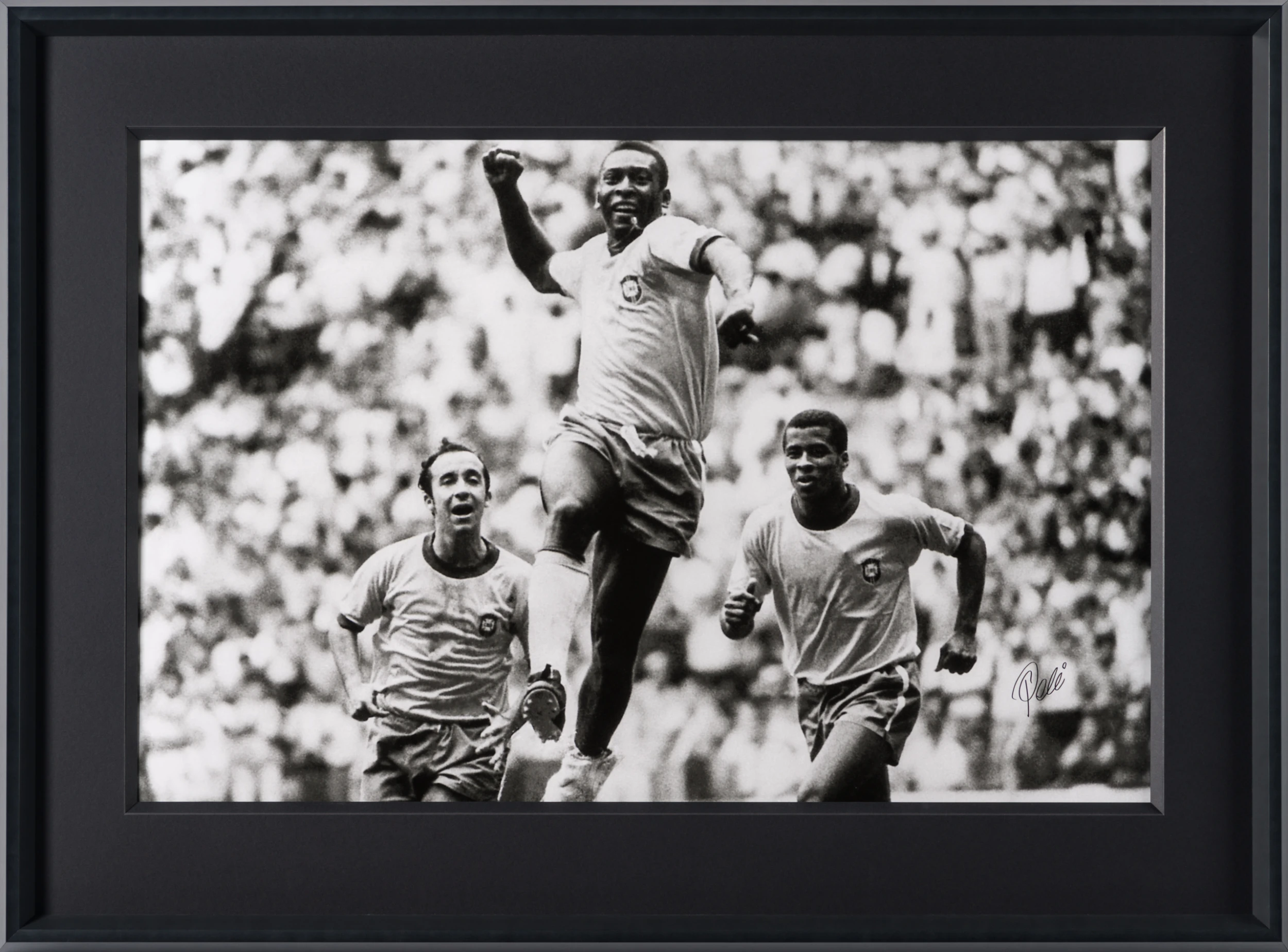 Named ‘Football Player of the Century’ by FIFA, Pelé is one of the most celebrated football players in history. The only man to win the World Cup three times, the Brazilian footballer had tremendous vision and an electrifying pace, having set numerous records at international level. Hand-signed by Pelé himself, this captivating photograph captures not only his skills on the field and as a player, but the passion and humility of the man behind the legend.