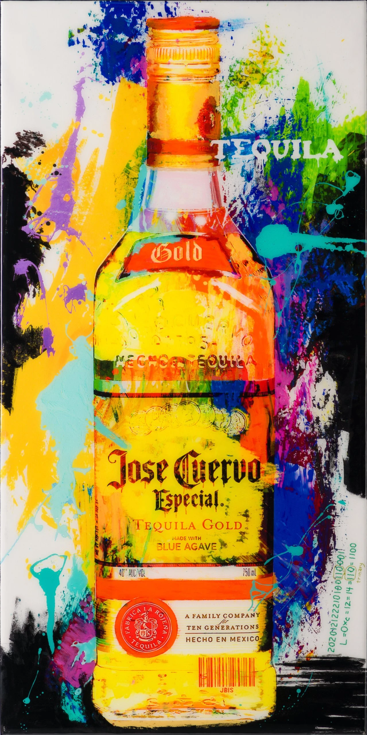 This bubbling and bold original artwork forms part of the Bisaillon Brothers’ Pop Collection. Conceived as an intermediary between iconic imagery and culture, the Pop Collection sees the brothers illustrate classical brands through a range of medium including resin, acrylic paint, graphic design and code; all of which feature in the above original. The latter involves Michael Bisaillon’s own trinary code which he applies as a comment on the conflict between digital and analogue in contemporary society.