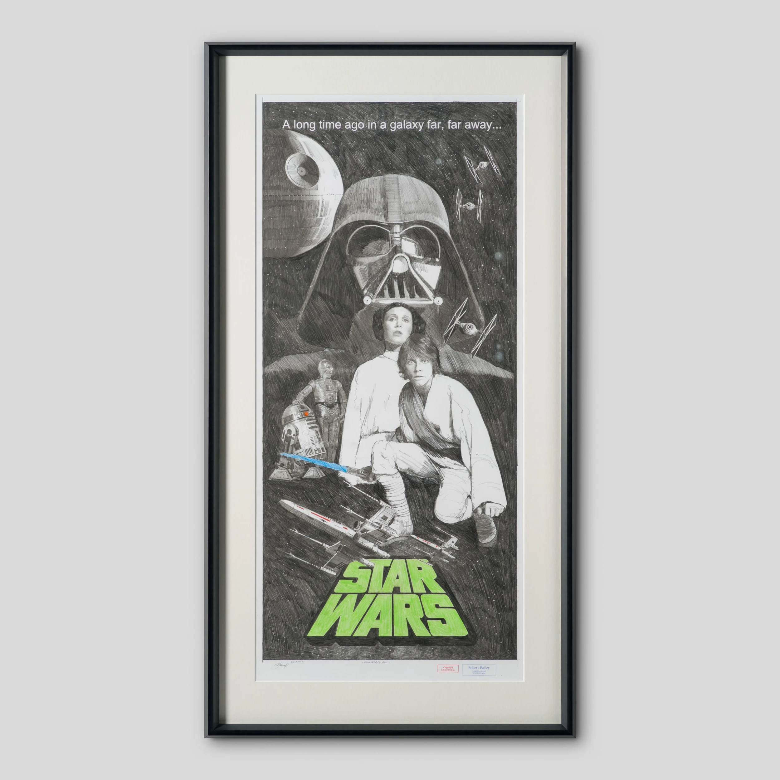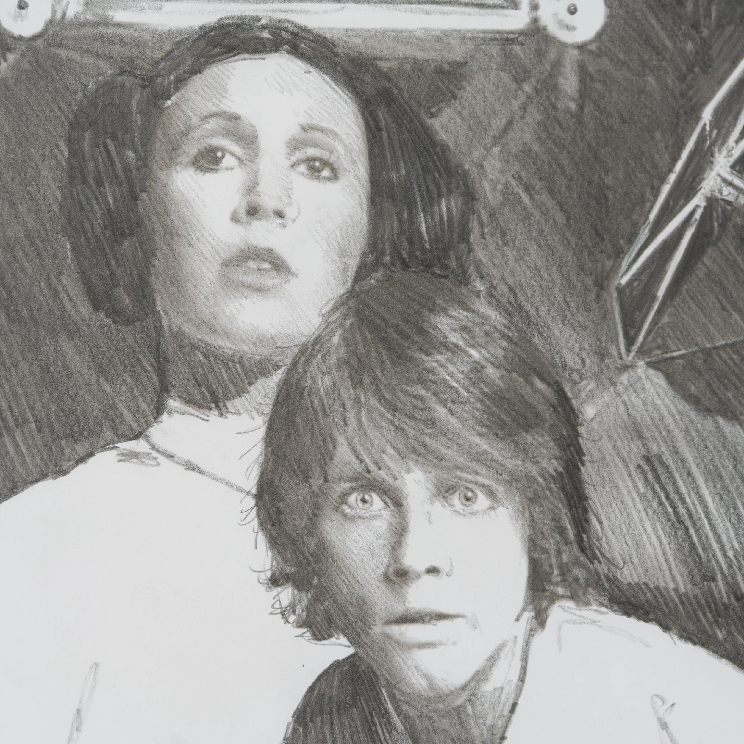 Each drawing created by Robert captures the essence of the iconic scene and allows collectors to own a real piece of Star Wars history. As part of his amazing portfolio, created this special drawing featuring iconic Star Wars characters such as Darth Vader, Princess Leia and Luke Skywalker.