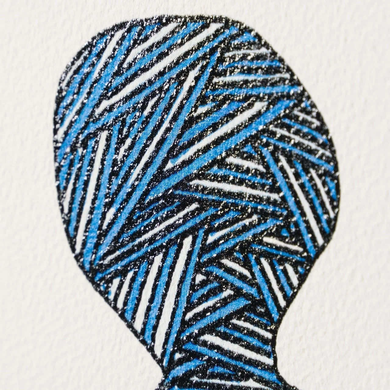 “I start a lot of pieces and go back to them afterwards and see what they remind me of, and this reminded me of my aunt asking me to hold the wool while she made it into a ball. I would do this for an hour and a half and as a prize she would let me play with her darning mushroom, a plastic mushroom with a battery in it and you darn socks with it. You put the sock on it so the light was shining through. But I just flashed it. I was an easily entertained young man.”