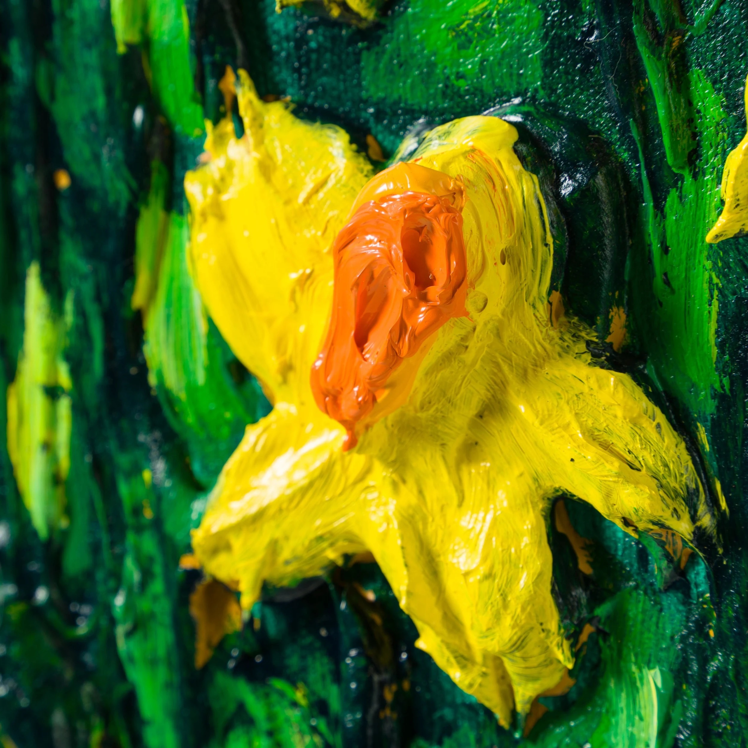 Working with oil paints and acrylics, Scarlett adds splatters and daubs of paint to replicate the abundance of textures found outdoors. With stylistic influences from Anselm Kiefer, Gustav Klimt and David Hockney, her emotive works are inspired by her personal connection with nature. Scarlett’s incredible process lends itself to impasto painting, invented in the 17th century by Baroque painters and later mastered by artists like Vincent Van Gogh. This process is characterised by applying paint in thick layers so that it is elevated from the surface of the canvas. The result is powerful representations of texture and light which can be seen in such major historical artworks as Van Gogh’s ‘Starry Night’ and Lucian Freud’s ‘Reflection (Self-Portrait)’. The impressionist and expressionist painter can take months to complete one painting due to layering and drying time.