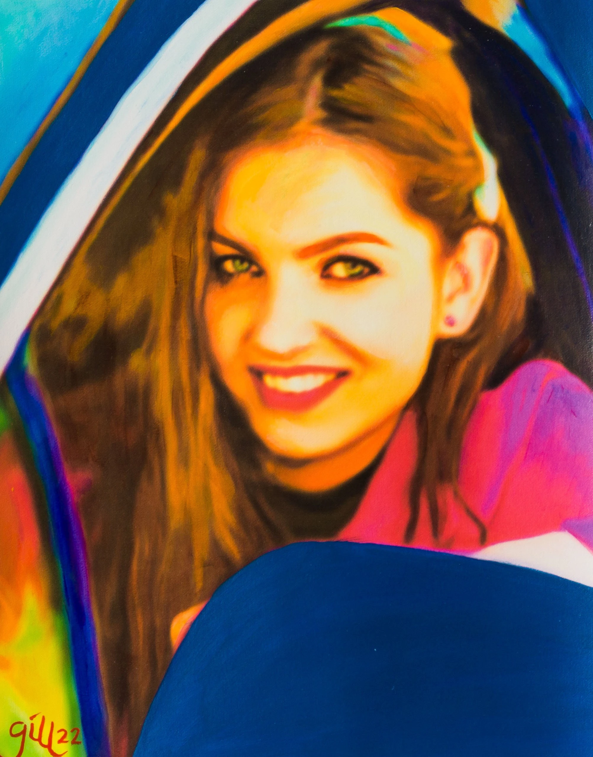 One of Pop Art’s hallmarks is its obsession with popular culture, and Gill’s Women in Cars series is firmly rooted in this. He began making the works in the 1960’s, when American magazines LIFE and TIME began printing paparazzi shots of film stars getting out of their cars. Women in Cars could offer something the magazines couldn’t – colour – and when the pieces began appearing in galleries, they were the epitome of cool modernity, and gave the public a chance to see celebrity in a new light. One of the earliest versions of the series, ‘Laughing Woman in car and Close Up’ was purchased by and exhibited in MoMa between works by Picasso and Odilon Redon. In the years 2020 to 2022, almost sixty years after his first works, at the age of over 85 years, acrylic paintings and studies are created which show the “Women In Cars” manifested in all their colourfulness and timeless presence. These acrylic originals and studies are modern embodiments of an idea that was ahead of its time, anticipating the omnipresence of social media and the struggle to protect a personal and private space of existing. These modern pieces are steeped in the history of the pop art movement and bring a fresh and exciting insight into the workings of one of the last living pioneers of the subject. artwork from this collection .