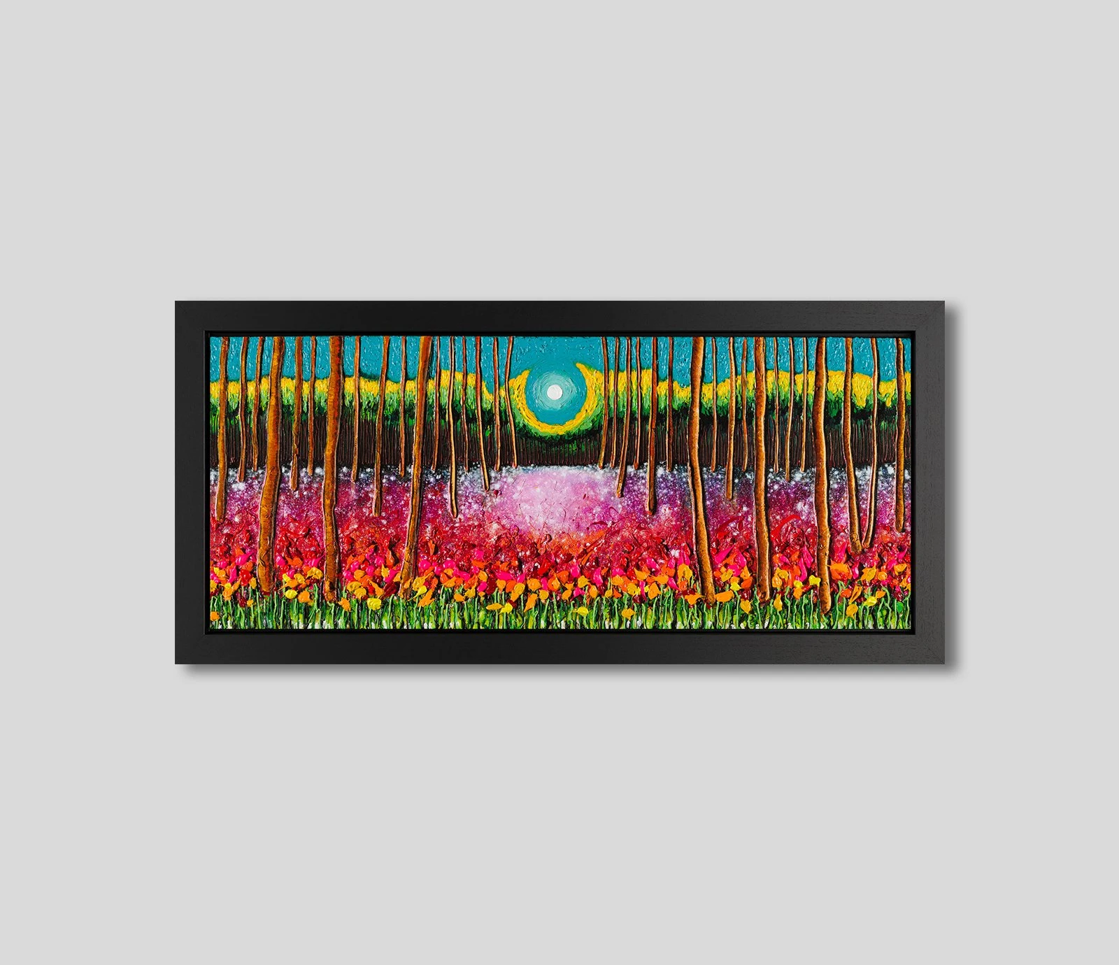 Hand-embellished by our specialist atelier team, this high-quality limited-edition piece is authentic to Scarlett’s celebrated technique of applying paint in thick layers. In fact, the artist herself describes the “stunning” hand-embellished pieces as unbelievably faithful to her original paintings. This piece is accented by a classic black stained ayous wood frame and is also a unique opportunity to acquire and display an authentic Scarlett Raven artwork that is suitable for smaller wall spaces.