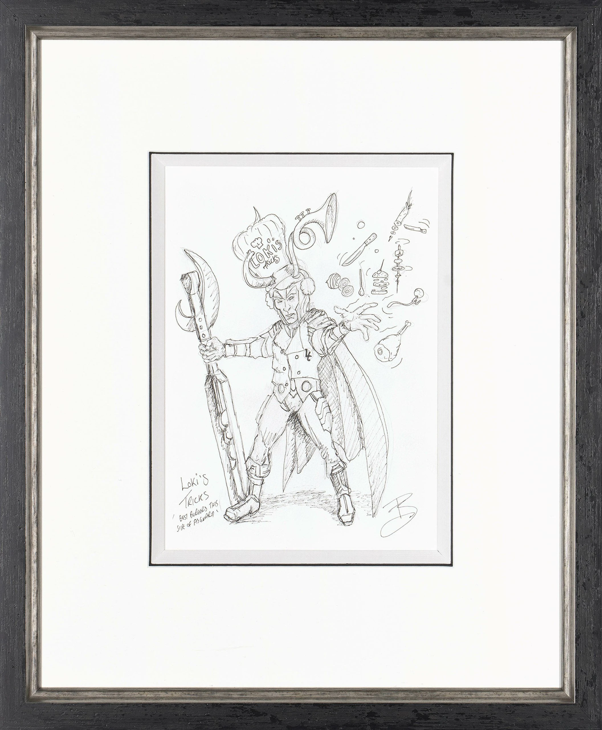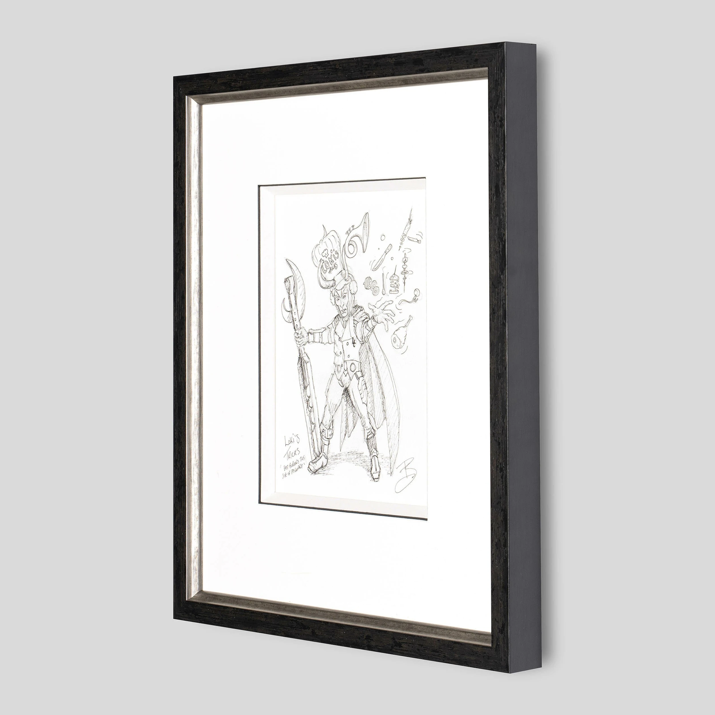 Here, satirical artist Peter Smith has interpreted the iconic characters of Marvel through his wacky and wonderful eyes. Framed and mounted, this original pen and pencil drawing on paper provides a unique insight into the acclaimed artist’s process which has seen him launch such quirky collections as 2021 .