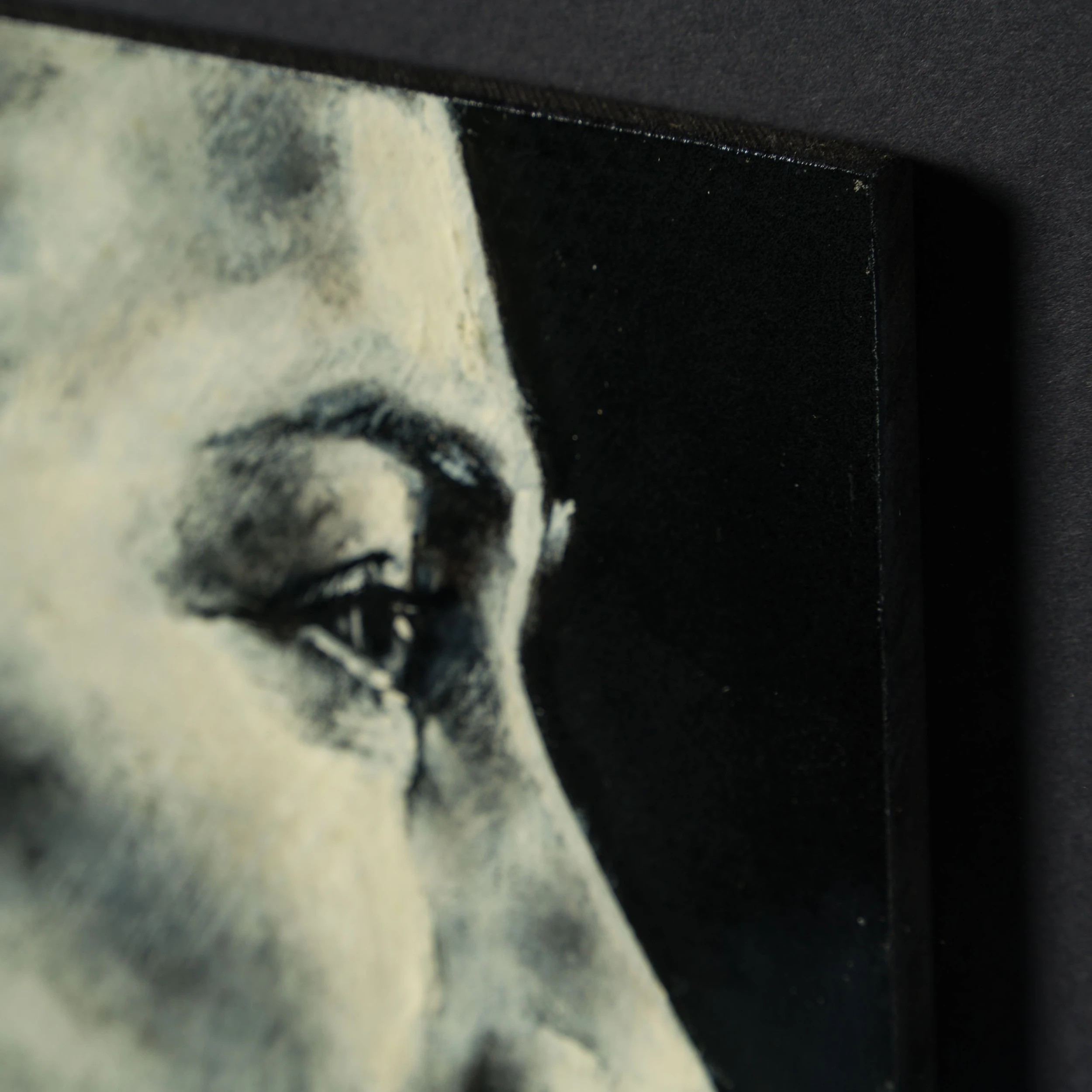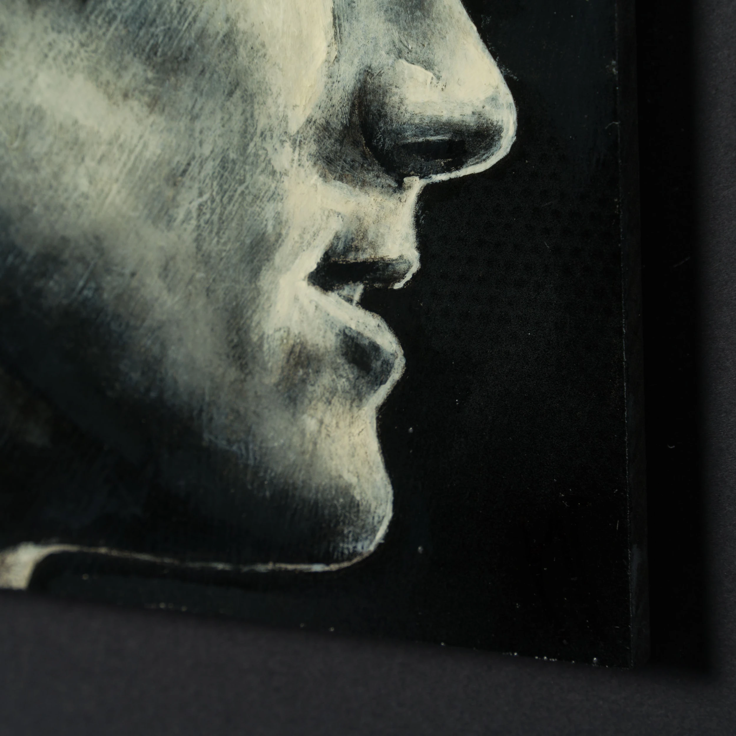 Perplexing, and melancholic, Jon’s work is created from the heart, capturing expressions, moods and feelings. All the individual portraits are from people who have interested or inspired the artist in this case the English footballer Lucy Bronze. Using conflicting tones of cream white, black and grey to create a highly atmospheric figurative artwork with an essence of realism capturing a monochrome scene.