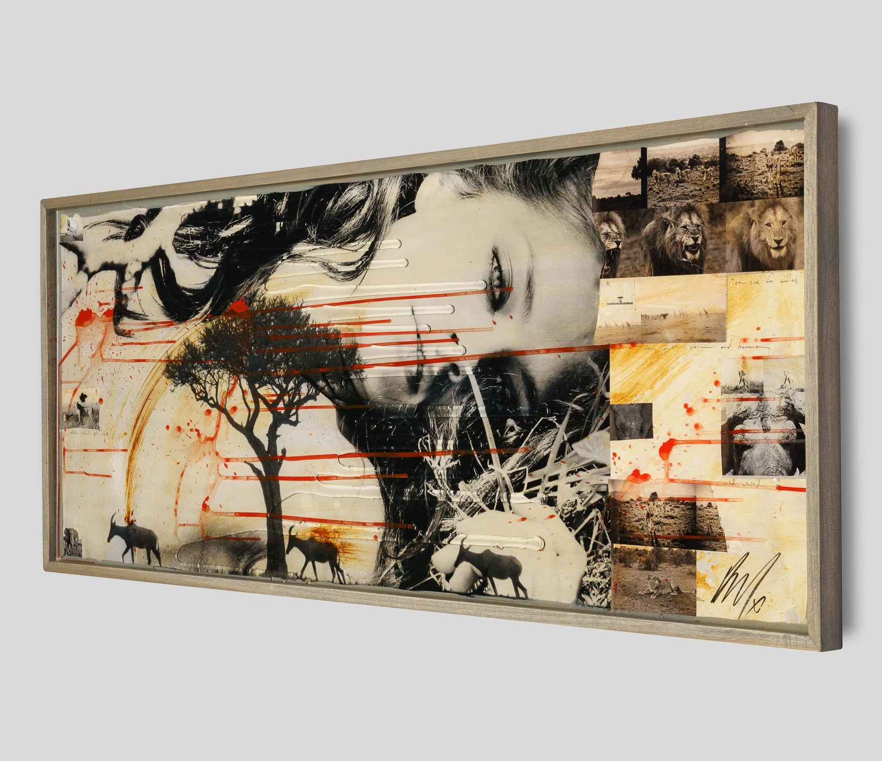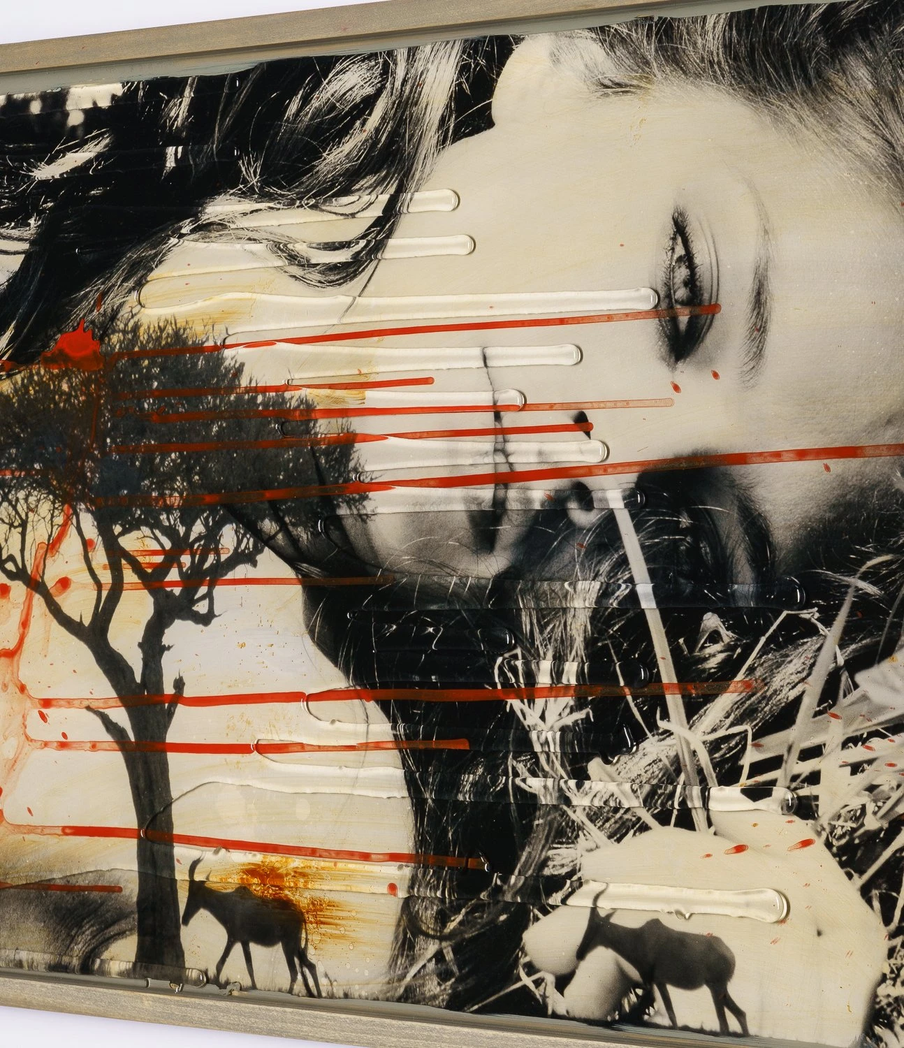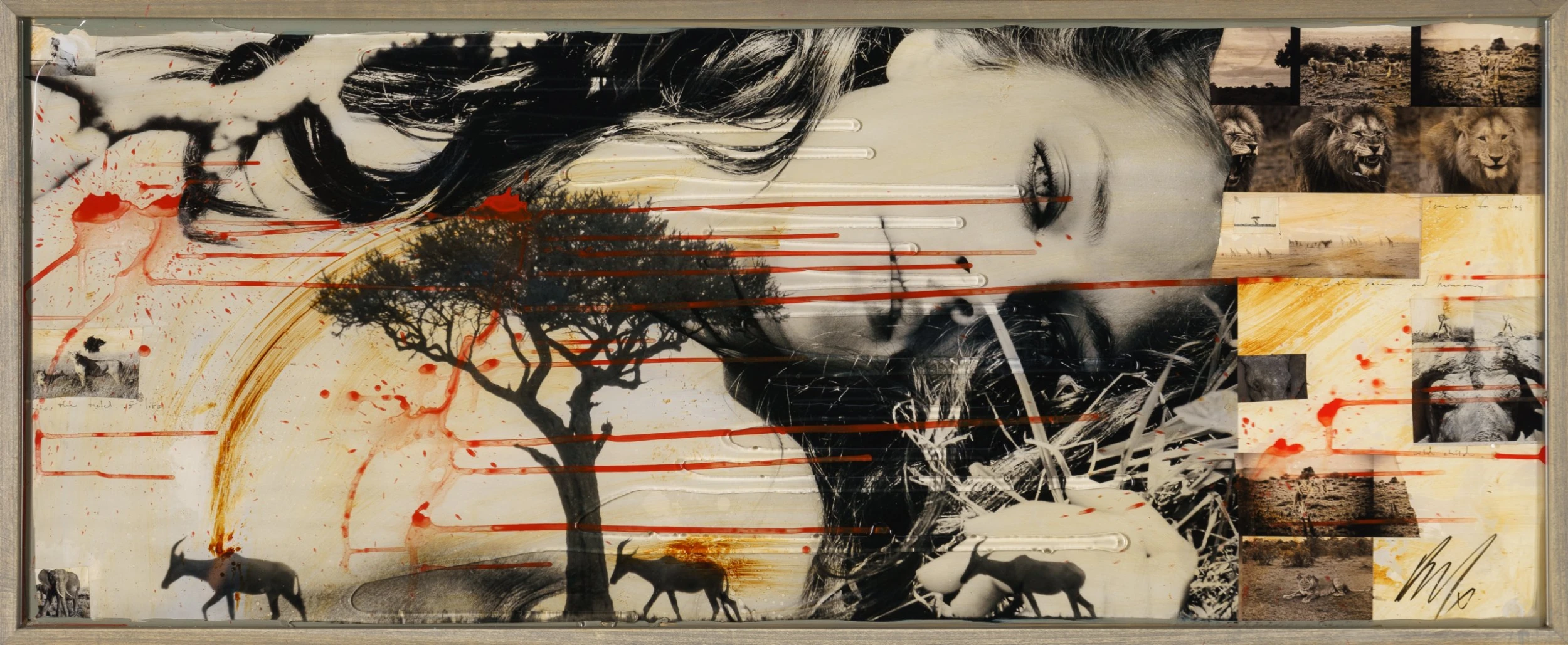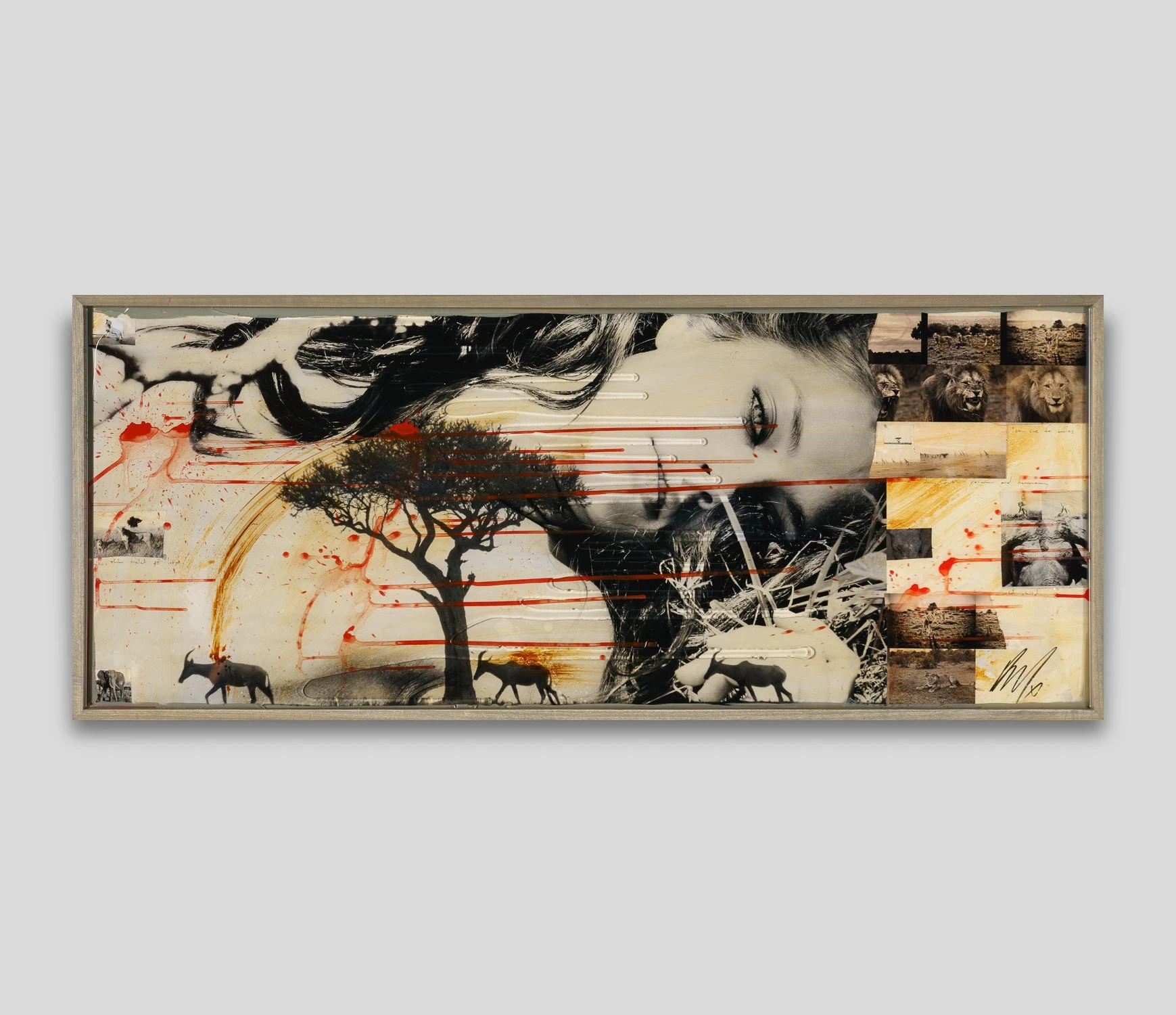 Characterised by juxtaposition between wildlife and fashion photography, this incredible original piece forms part of Raphael Mazzucco’s introspective collection Grass Roots where the artist delved into his 25 year-old photographic archive to create a series of unforgettable artworks that celebrate and reflect Raphael’s respect for Africa and her subjects.