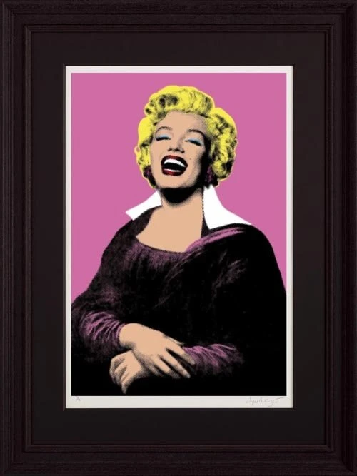 A limited edition silkscreen of 95 by contemporary artist Simon Claridge, entitled Monroe Lisa – Pink