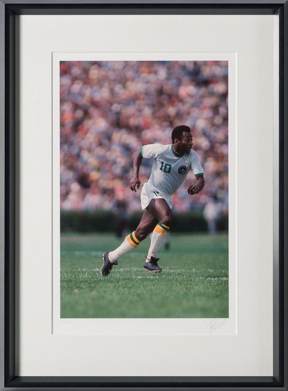Photographed by José Dias Herrera – a Brazilian photographer who marked his legacy through sports history and who often shot Pelé, recording the biggest moments in history of football – “New York Cosmos” is a Pelé hand-signed limited edition Giclée artwork depicting world-famous footballer.