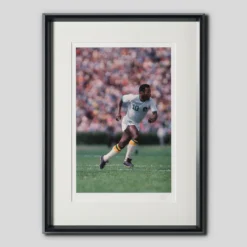 Named ‘Football Player of the Century’ by FIFA, Pelé is one of the most celebrated football players in history. The only man to win the World Cup three times, the Brazilian footballer had tremendous vision and an electrifying pace, having set numerous records at international level. Hand-signed by Pelé himself, this captivating photograph captures not only his skills on the field and as a player, but the passion and humility of the man behind the legend.