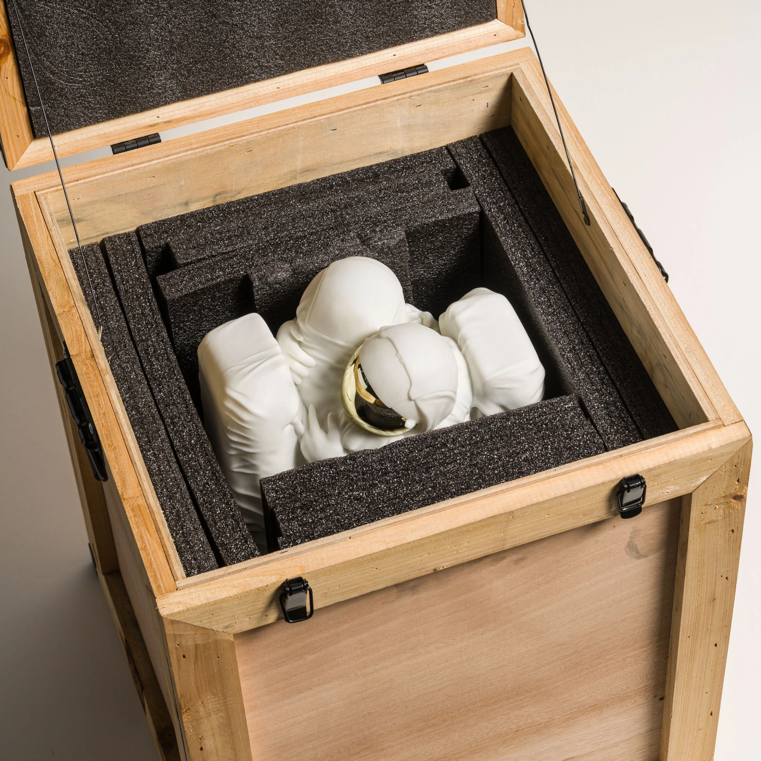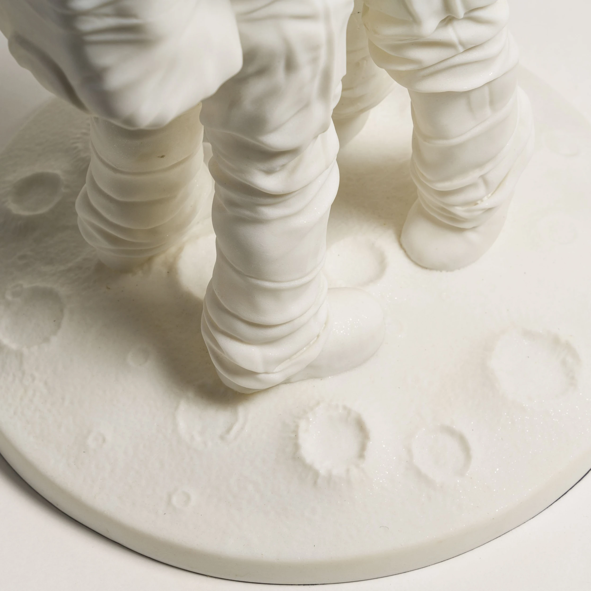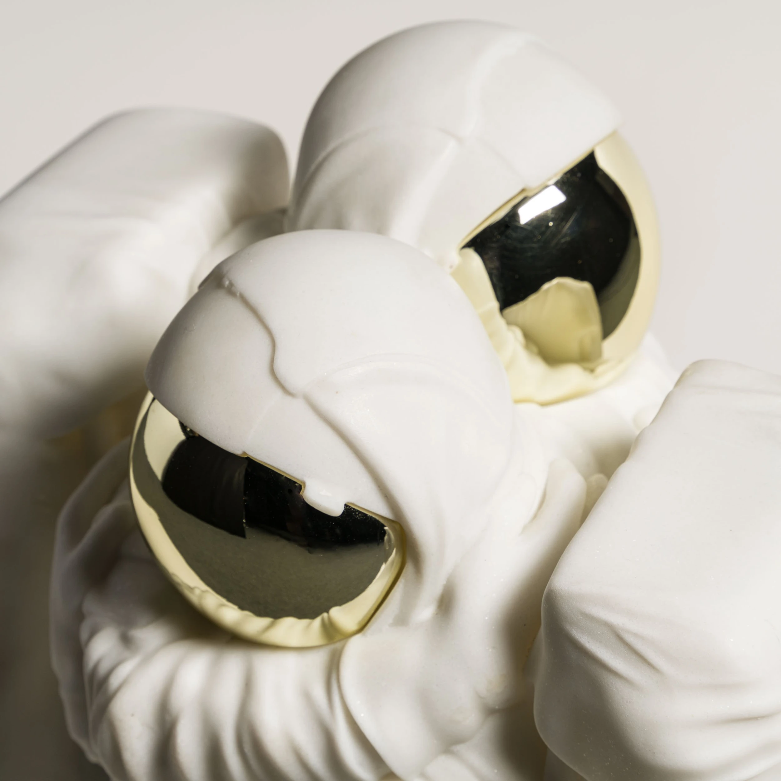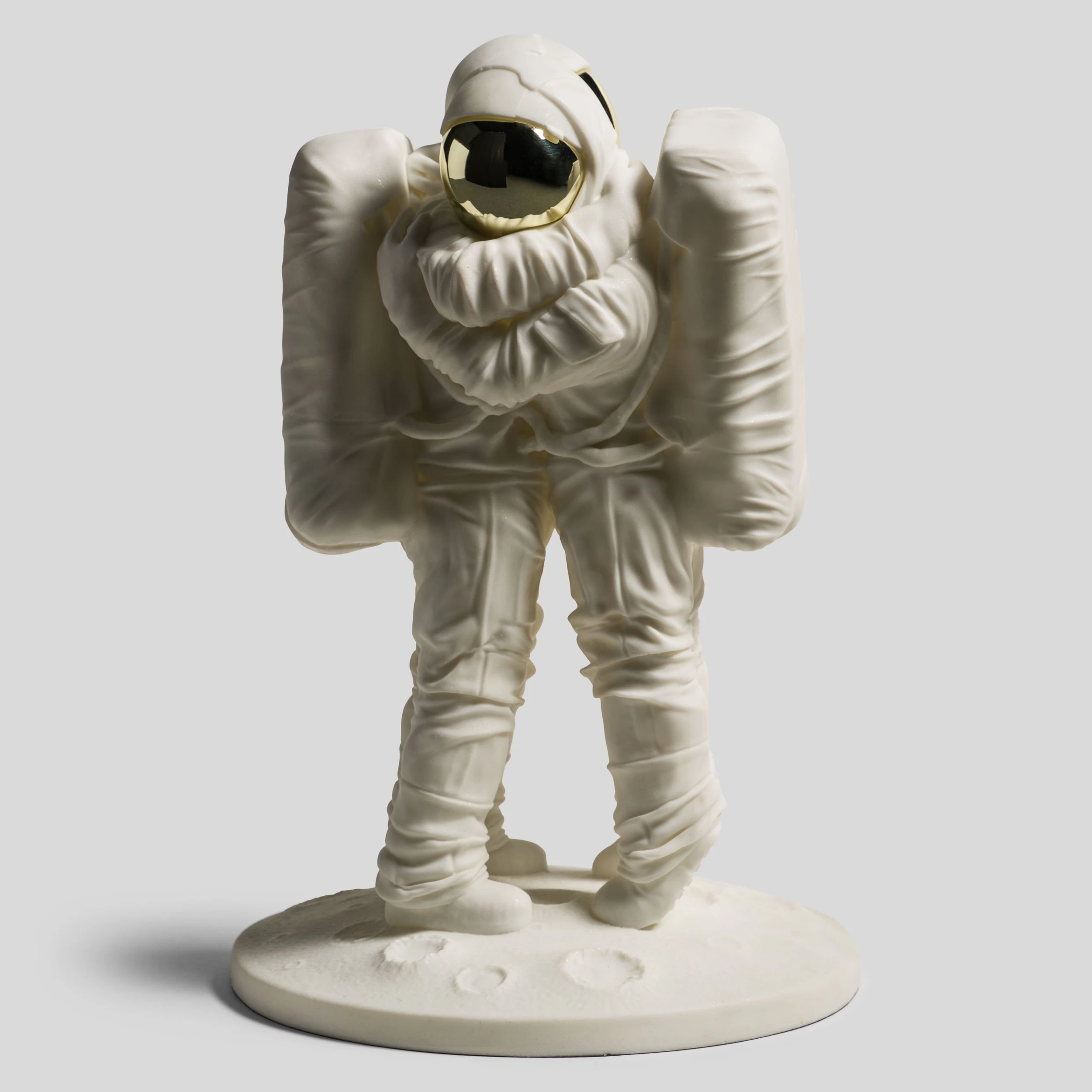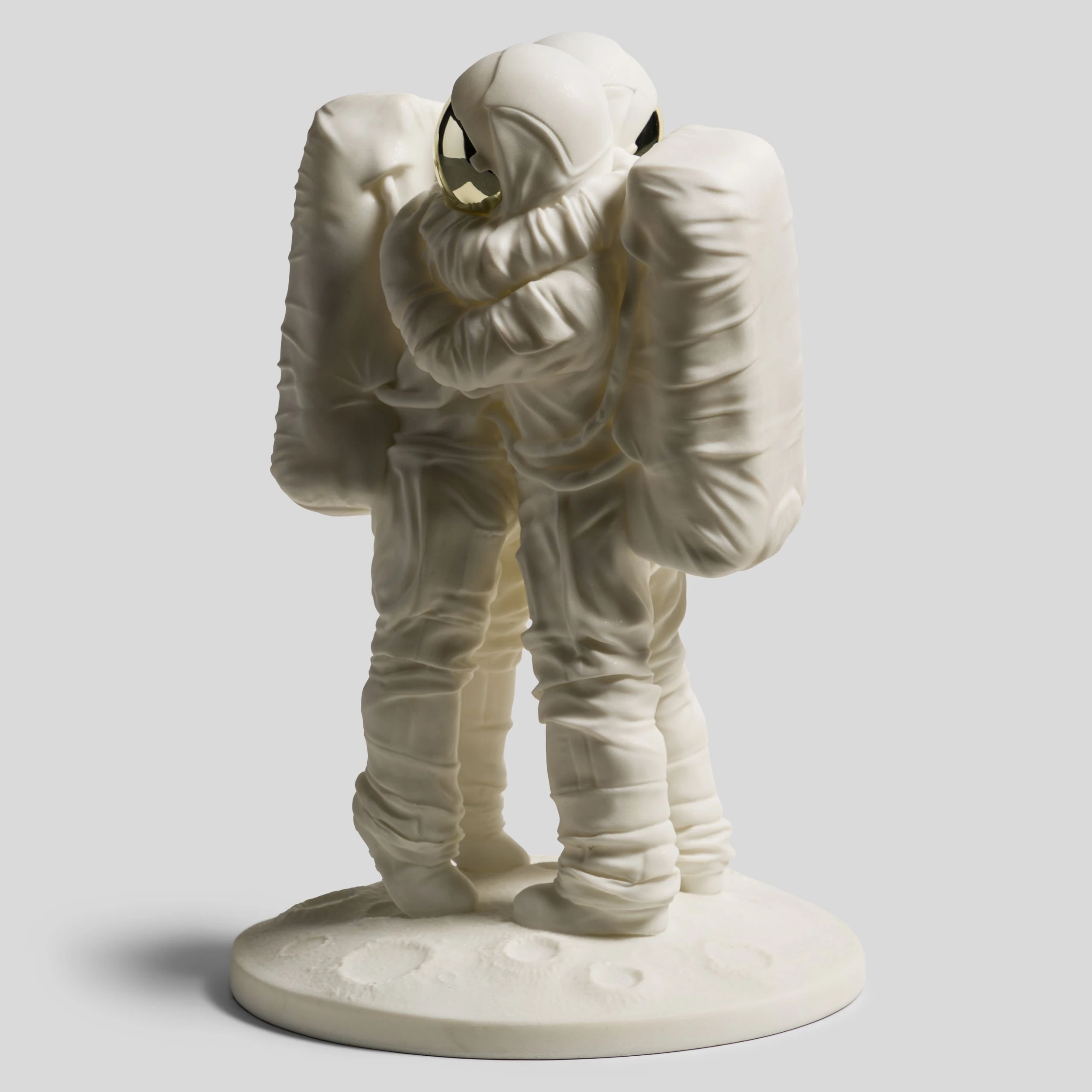 Representative of the artist’s creative take on the moon landing, the pose of the astronaut is set to imply the weightlessness of the Moon’s low gravity and how much fun one could have dancing on the mood. “One Small Step: Together” is a beautiful, limited-edition sculpture by the mysterious artists Whatshisname. The pose depicts a couple immersed in each other almost like time stopped or as a representation of love. “It is a sculpture saturated with deep emotion.” The artist told us.