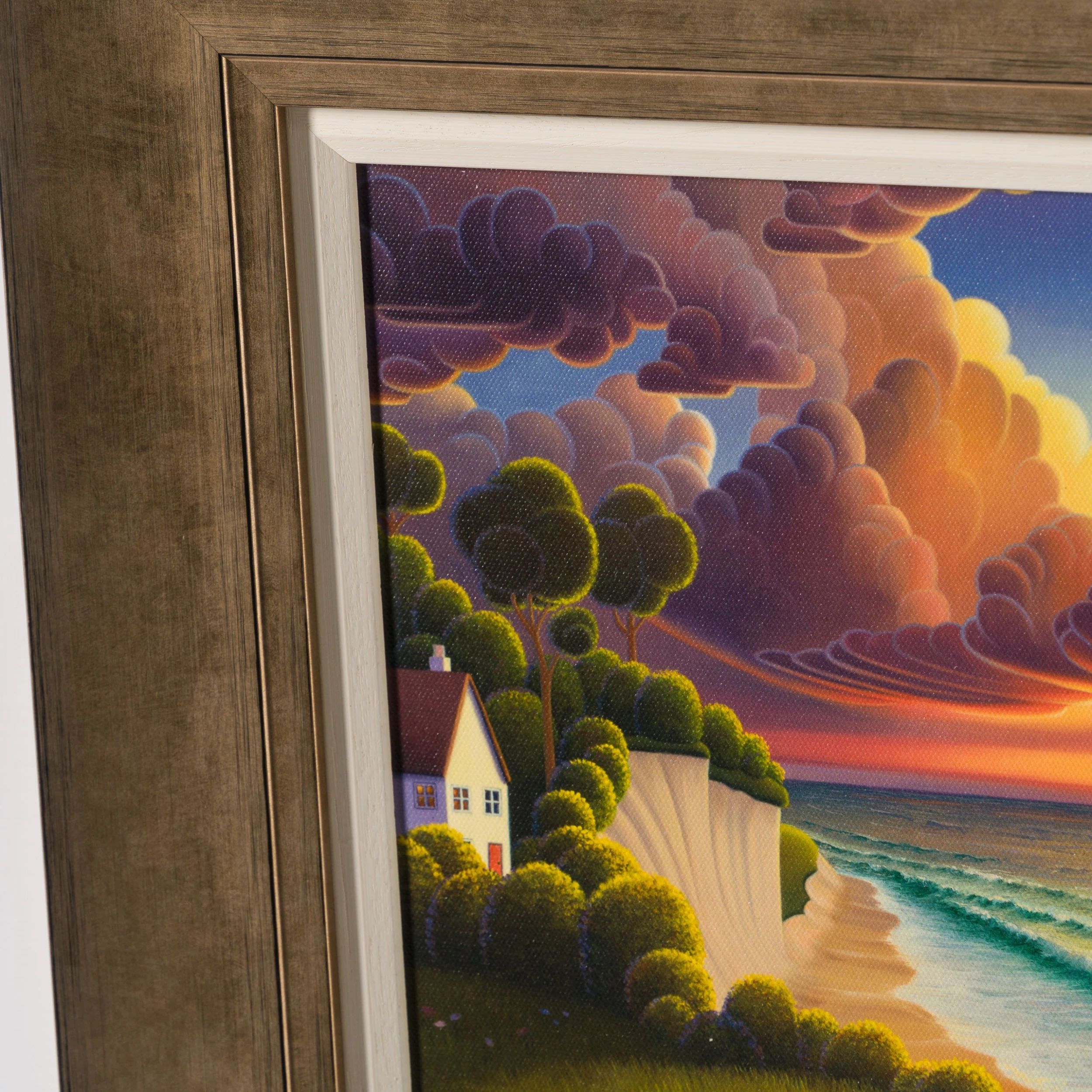 Contemporary landscape artist, Paul Corfield paints charming landscapes, fuelled by his imagination and the Dorset landscape. From sunset-soaked hills to seaside cliffs and snow-laden trees, Paul’s beautiful landscapes explore the beauty of nature. His timeless idealist style is reflected on his paintings with the airbrushed appearance, incredibly detailed elements, and the injection of light into every part of a painting.