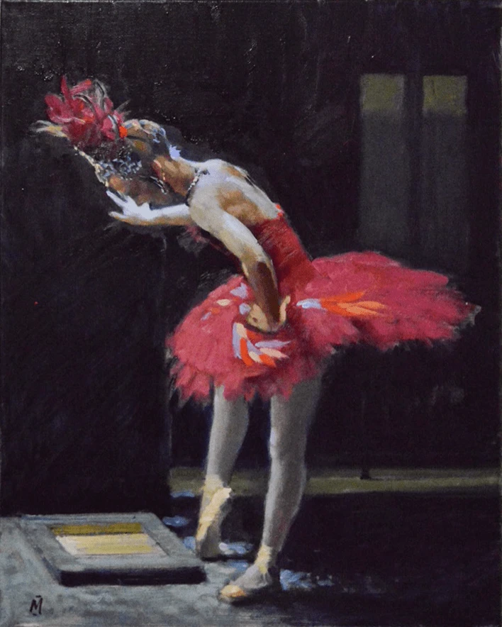 This elegant original oil painting is the final result of much sketching and studying by the artist, including his pastel drawing