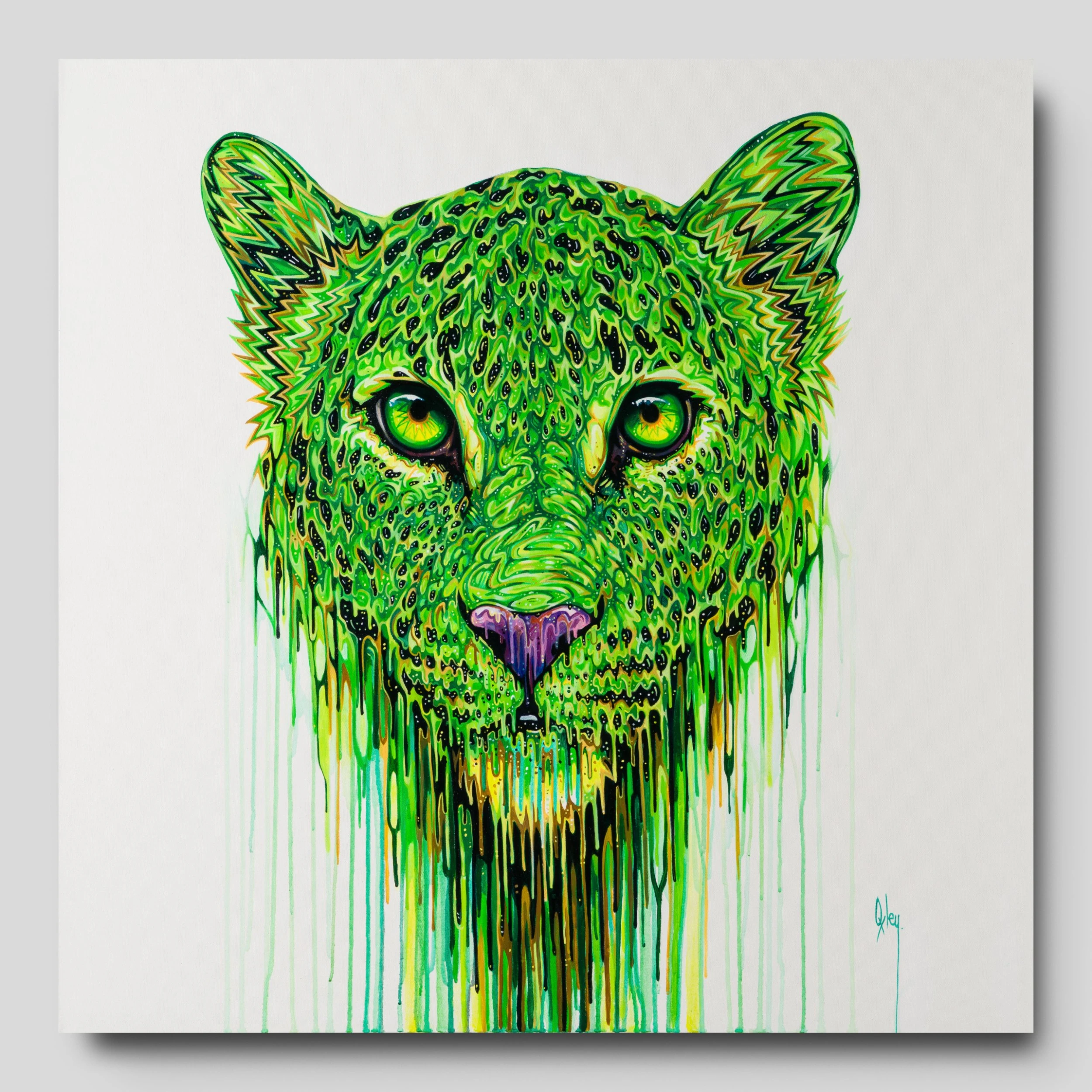 His renowned technique combines otherworldly colours with dripping paint down his canvas to create breath-taking and moving pieces. From his work with The Big Cat Sanctuary to painting on sustainably produced canvases, Robert’s passion for wildlife is profound which comes across in the powerful and striking eyes and coats of his animals.
