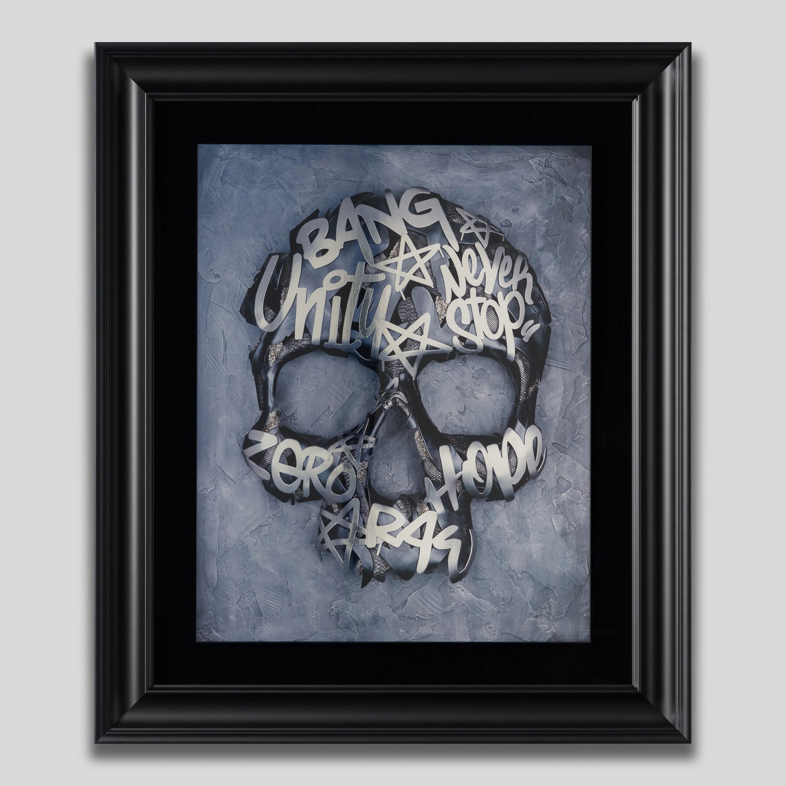 Elegantly portrayed on glass, these bold and luxurious limited editions by Dan Lane capture the effect of the unique mediums of his original artworks that include layers of faux snakeskin, Swarovski crystals, silver leaf and more. Viewers can see the layers intertwine under and over each other creating a unique and atmospheric display for your home full of depth and intrigue.Â