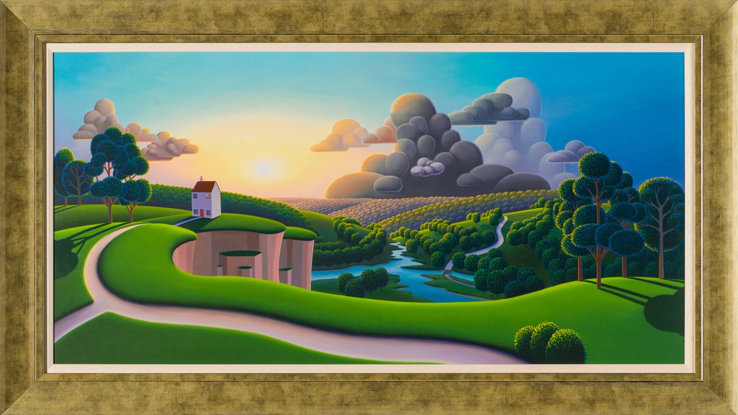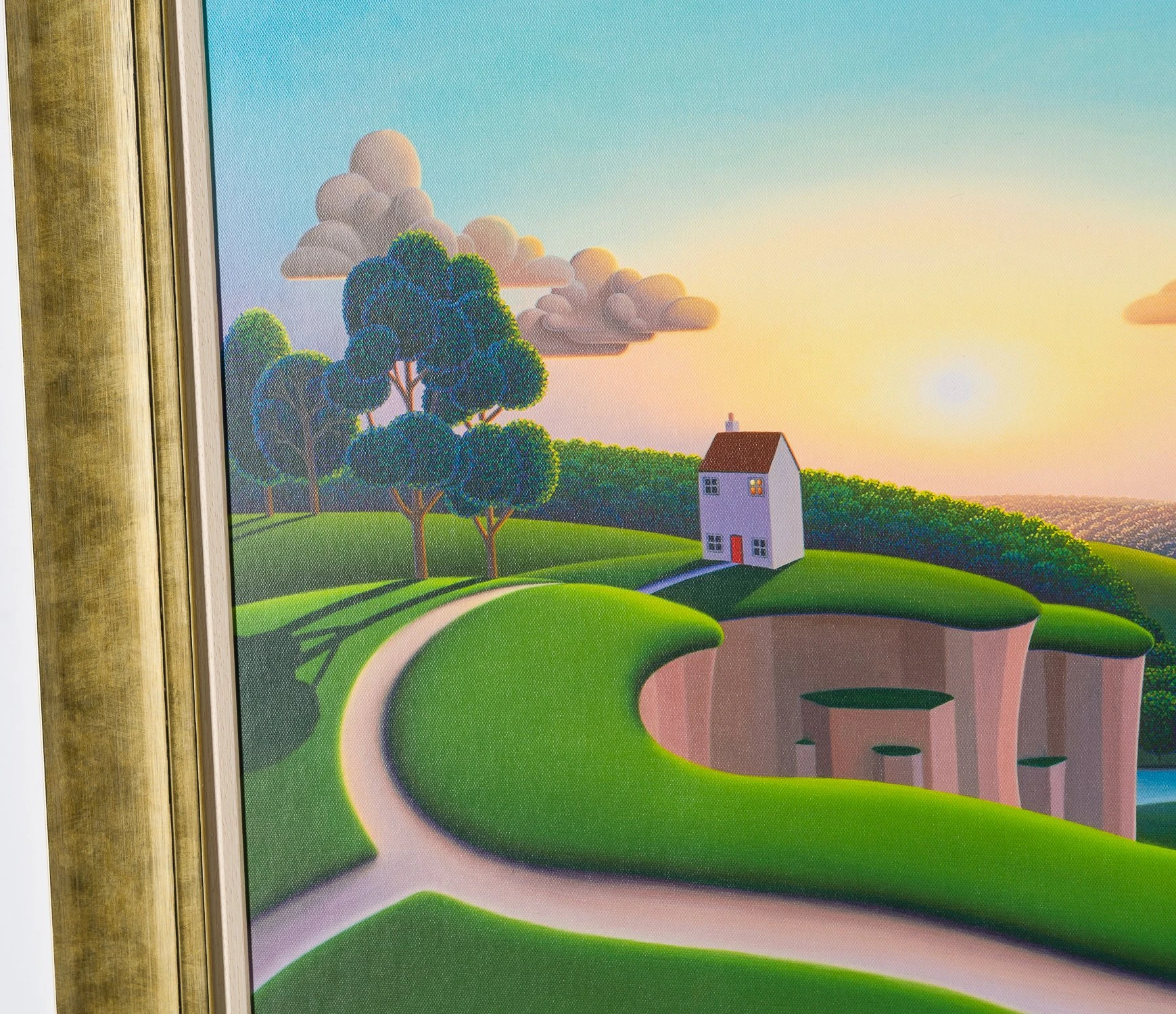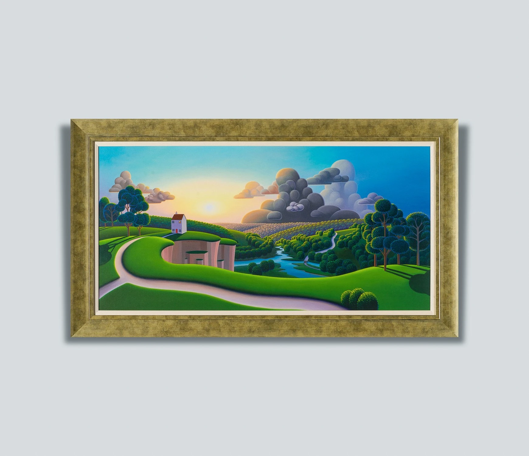“Where would you like to live today?” This is what the artist asks himself before he starts a painting. Whether it be a totally contrived landscape or one that alludes to various locations across the UK, Paul Corfield creates dreams in paint through his artworks that feel at once both homely and utopian.