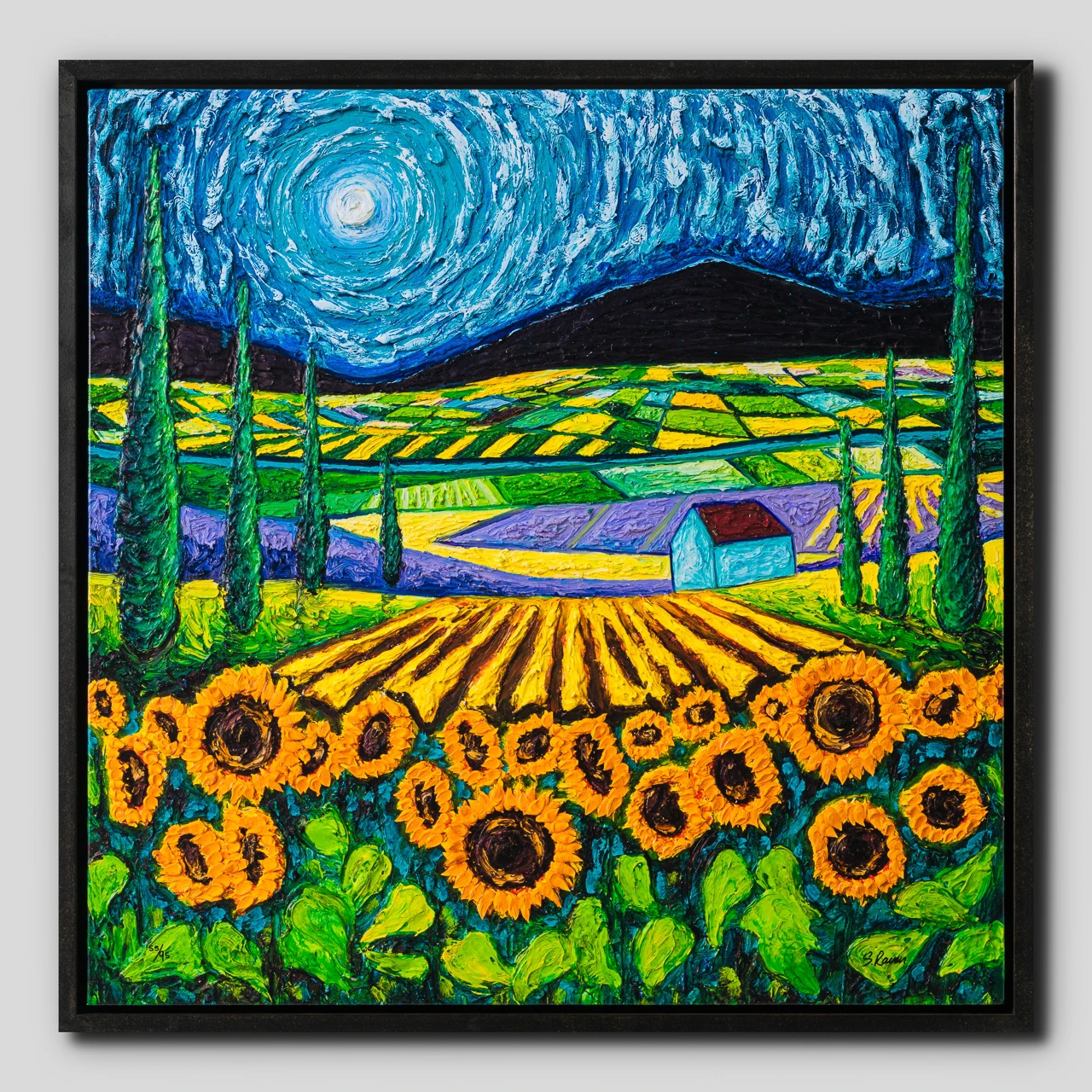In a landmark new collection for Castle Fine Art, launches her new Lasting Impressions series. Full of love for our natural surroundings, and inspired by her admiration of Vincent Van Gogh and David Hockney, Scarlett’s new pieces are her most passionate yet. The two artworks ‘Sunset on Poppy Field’ and ‘Sunflowers Amongst Cypress Trees’ are available as a giclée on paper as well as boxed canvas.