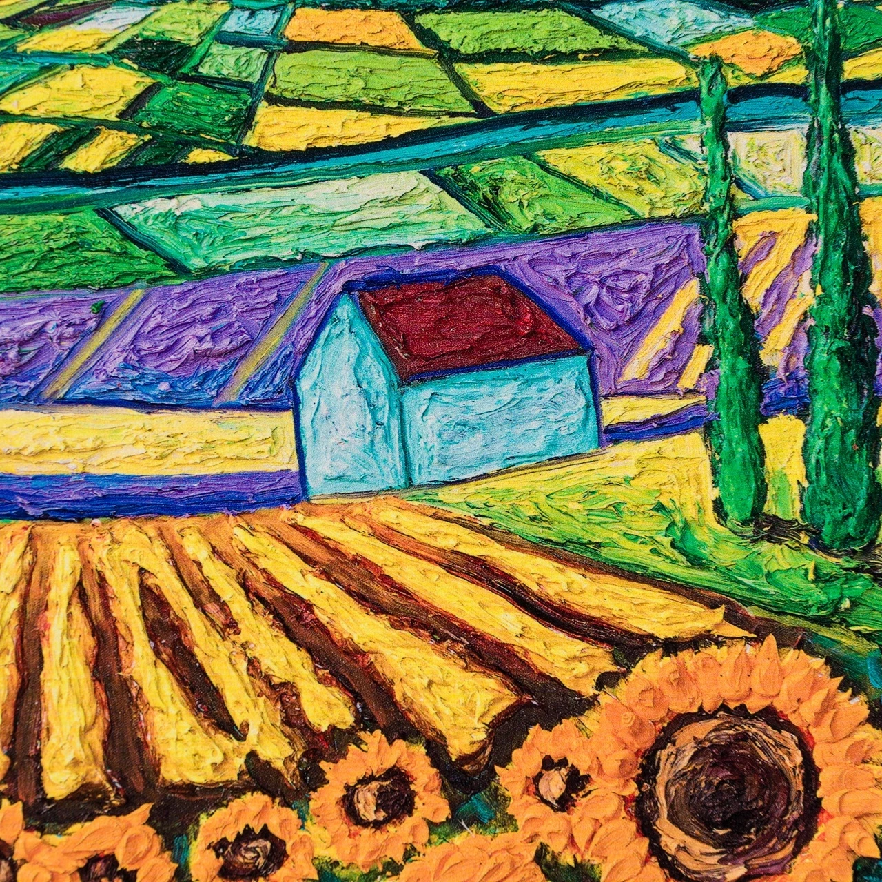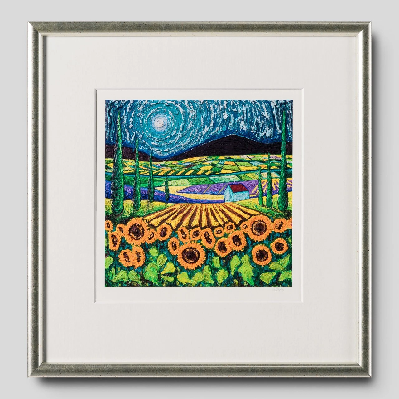 In a landmark new collection for Castle Fine Art, launches her new Lasting Impressions series. Full of love for our natural surroundings, and inspired by her admiration of Vincent Van Gogh and David Hockney, Scarlett’s new pieces are her most passionate yet. The two artworks ‘Sunset on Poppy Field’ and ‘Sunflowers Amongst Cypress Trees’ are available as a giclée on paper as well as boxed canvas.