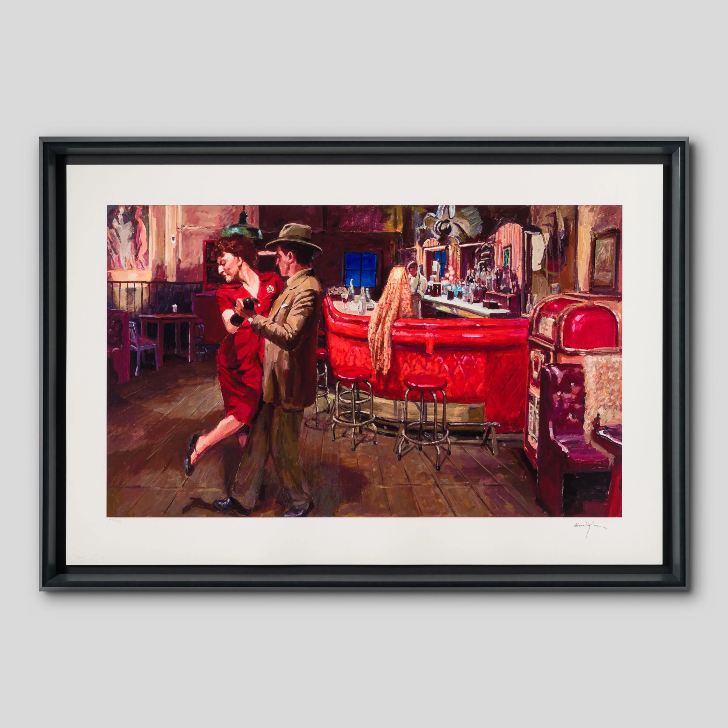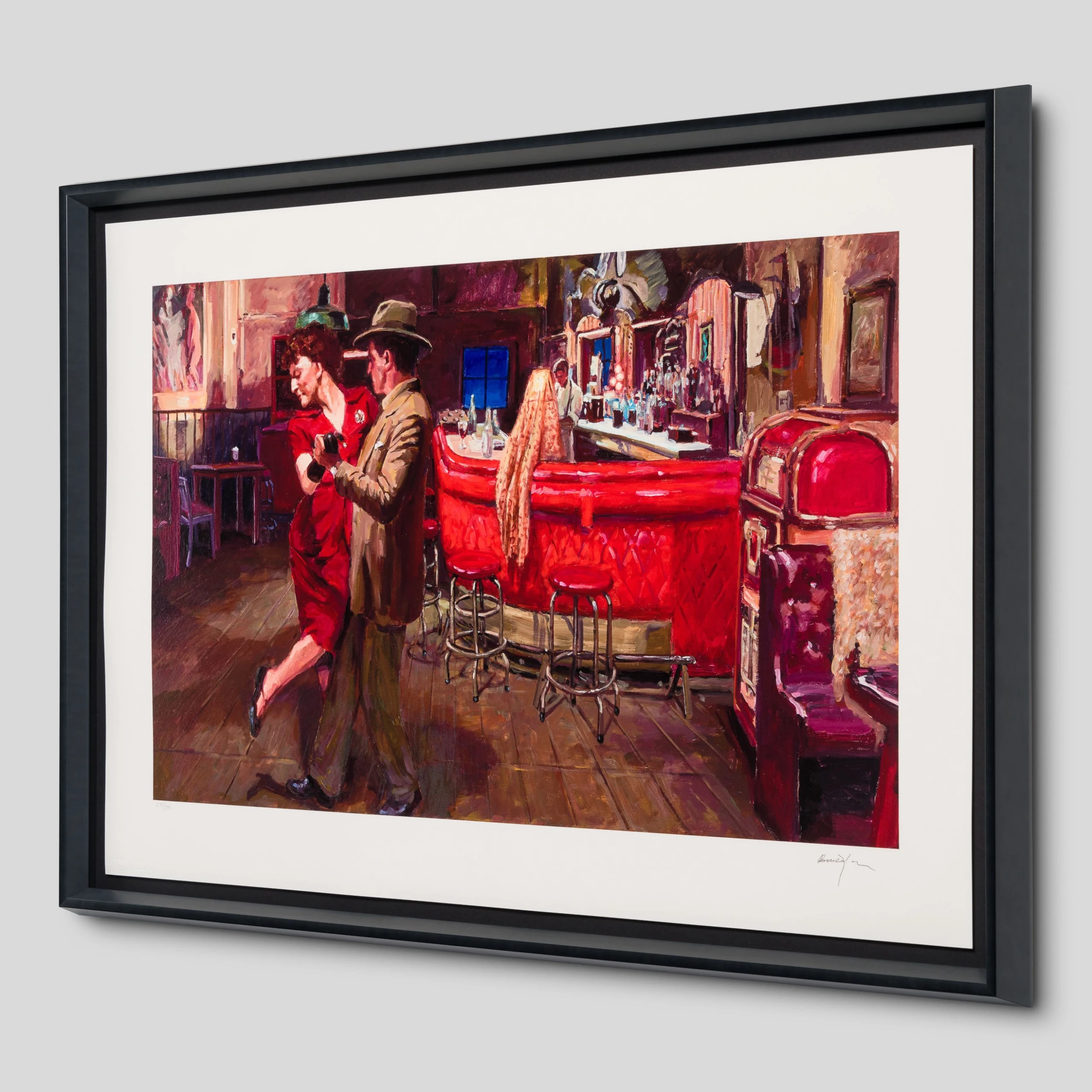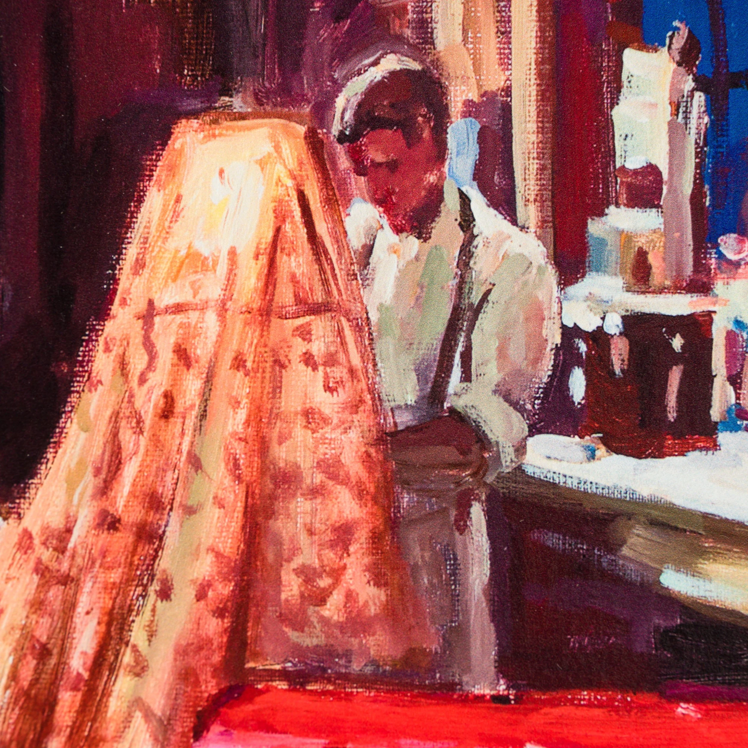 Dylan’s cinematic references result in evocative, often mysterious, compositions suspended between life and theatre, while conjuring a distinctly tangible pictorial experience. Although these new works prominently depict figures and portraits, much of the iconography that was featured in Dylan’s earlier series The Beaten Path is still recognisable – diners, motels, roadsides and city streets.