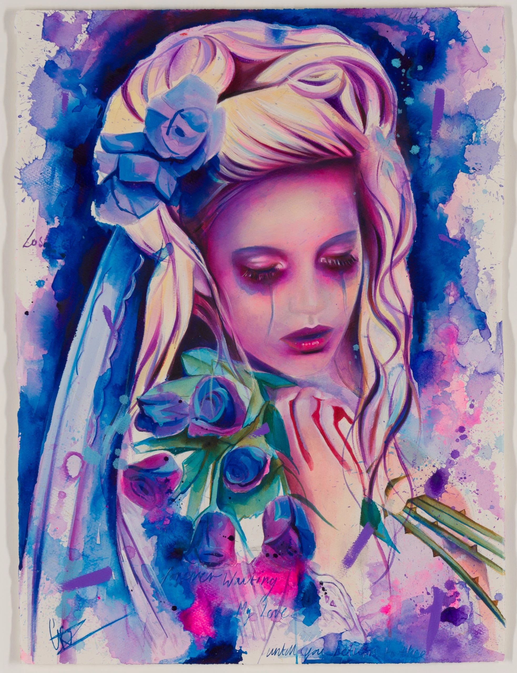 This original artwork by Emma Grzonkowski showcases her unique, bold and impulsive style whereby she creates beautifully detailed portraits while also throwing and flicking the paint onto the canvas which creates a beautiful contrast of movement and rhythm. Drawing inspiration for her art from a range of experiences and emotions, she explains: “In a world where ‘perfection’ is prized, I have shown something raw and real. I hope people can relate to these triumphs and tribulations and feel empowered. I want to show that it is okay to have scars and wounds…they are reminders of the battles we’ve all fought and won.”