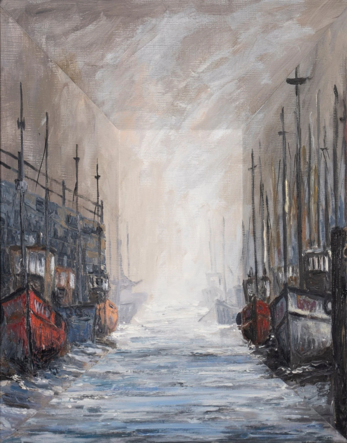 While the painting itself echoes the seascapes of Turner and Monet, it is John’s mathematic precision combined with his immense talent for painting that allows these iconic images from art history to come alive in a mind boggling, 3D masterpiece.