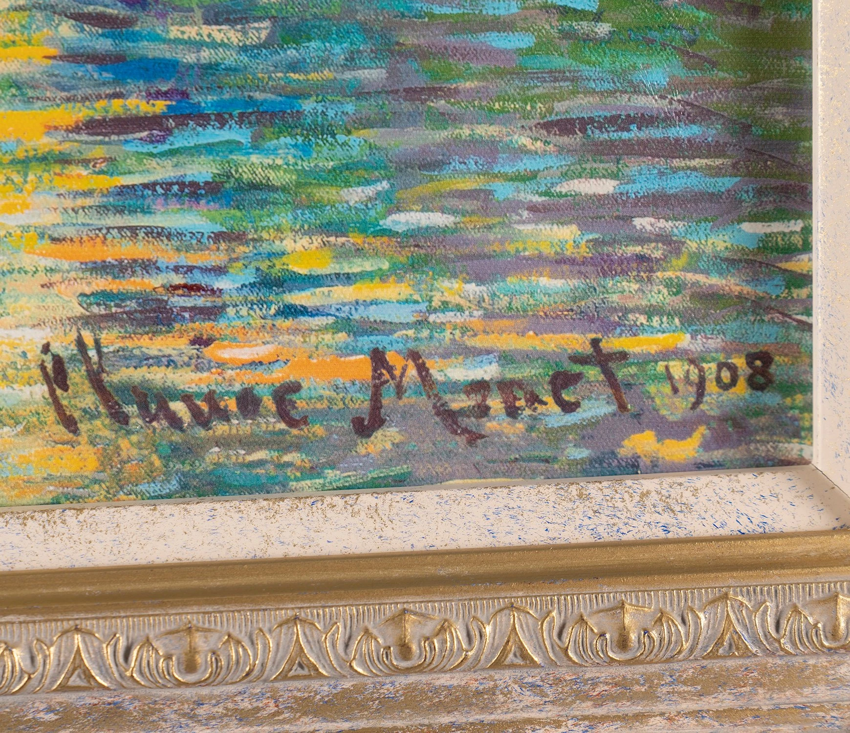 A signed limited edition, hand-embellished stretched canvas by John Myatt in the style of Claude Monet.