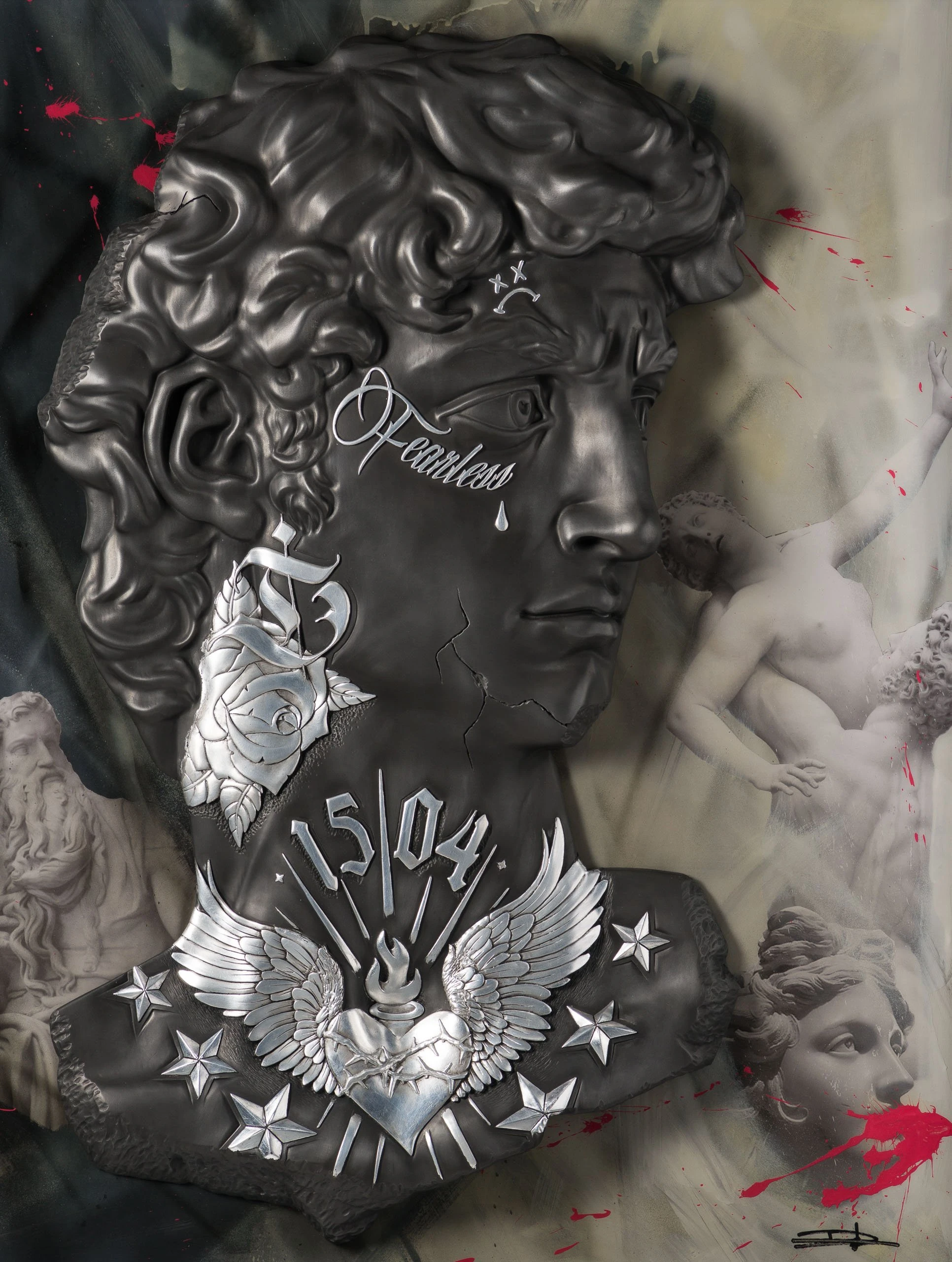 The highly popular works have a contemporary, urban edge, but as an artist, Dan is hugely influenced by the creations of the Renaissance and it’s the fusion of the two different styles that make the pieces so special. Constantly constructing concepts as physical creations, Lane’s development and experimentation methods coupled with his ability to blend thematic elements, results in work that is simultaneously stylistically distinct and ever evolving.