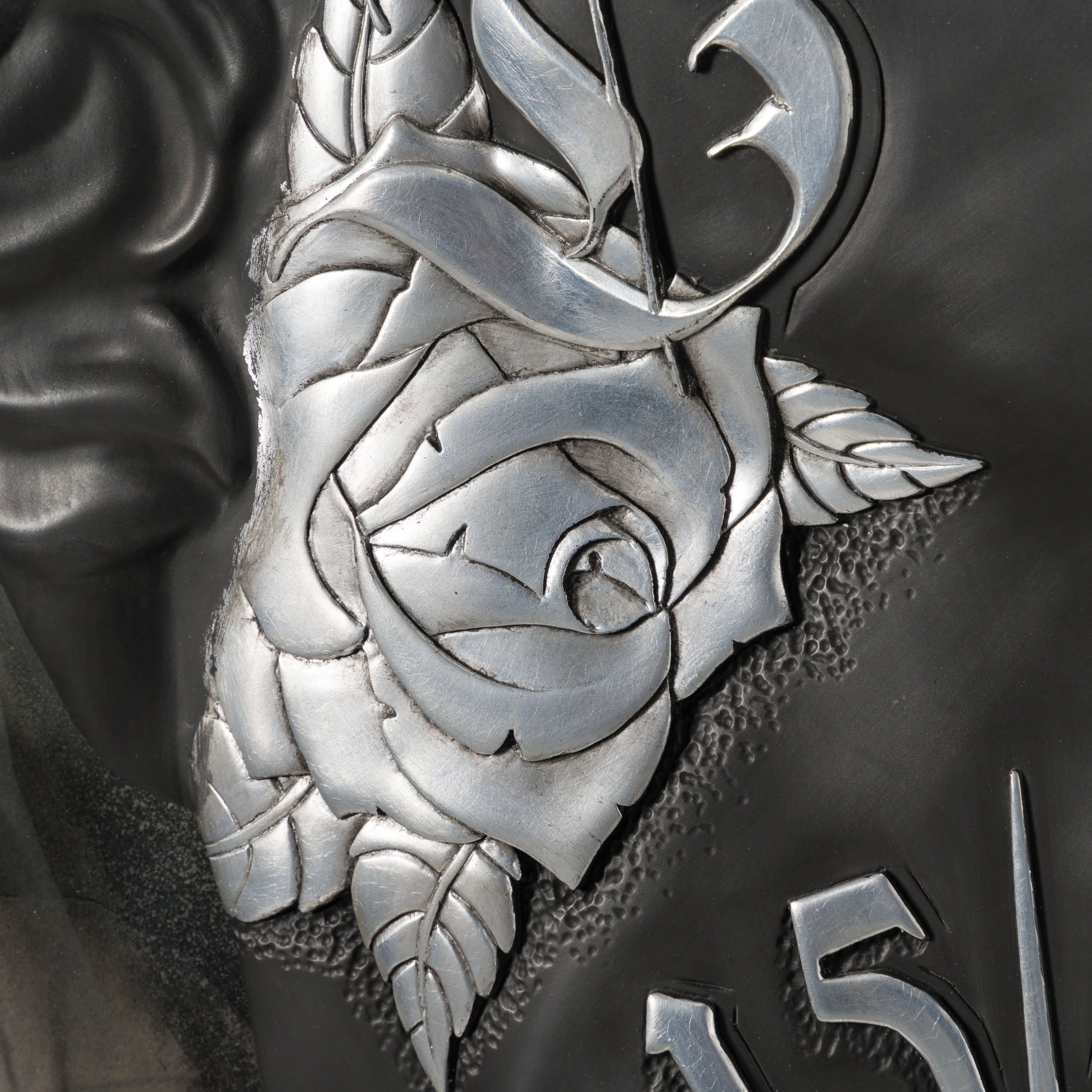 In this bold and luxurious original, Dan Lane revisits some of his beloved themes from his earlier work. In “Underestimated”, the artist fuses his classical baroque sculpture style and the drama they convey with his own style and its iconic elements. Whilst this iron and silver leaf piece is bold and dramatic, the title evokes an element of humbleness and simplicity.