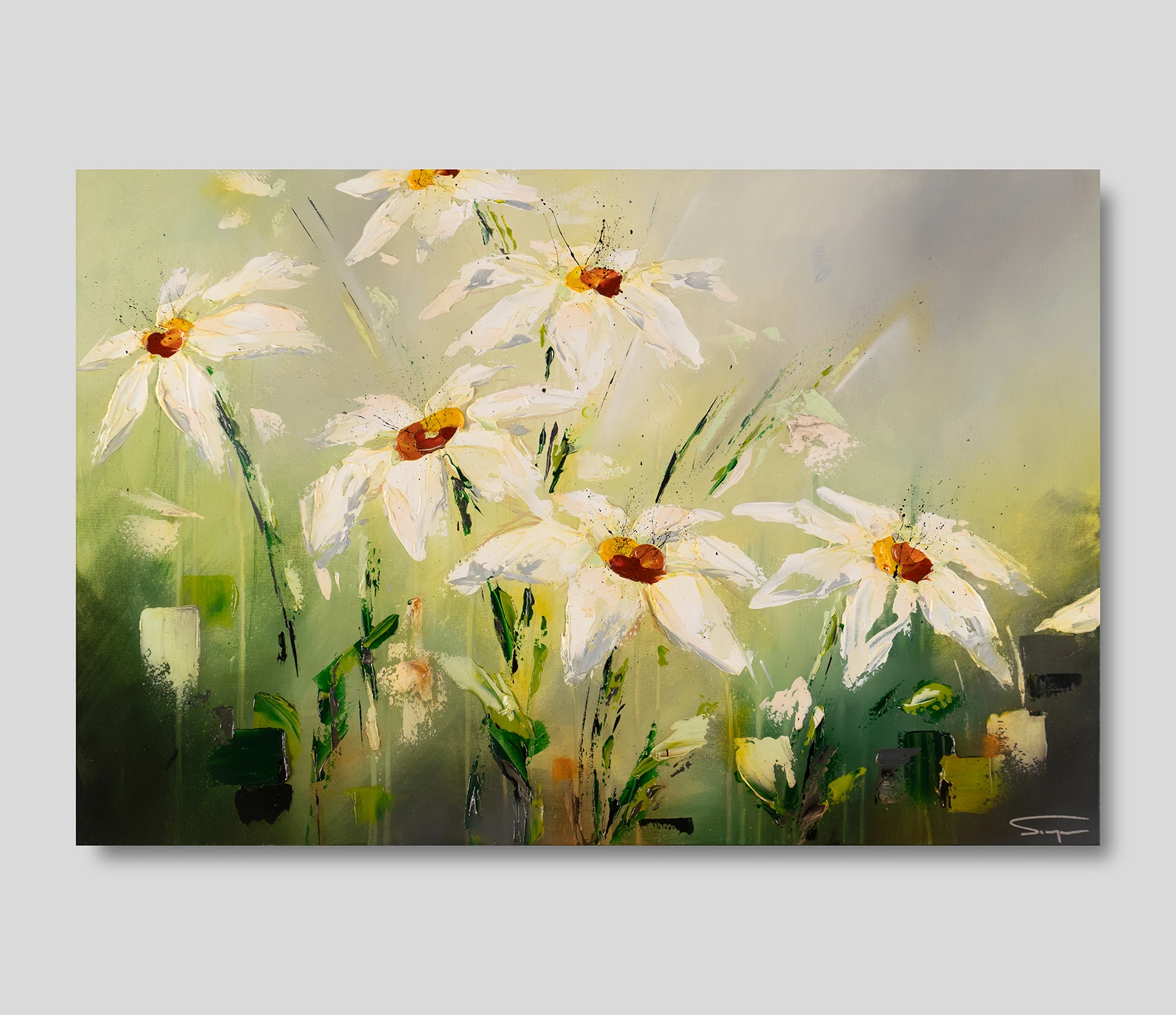 Full of bold colour, heavy texture, and abstract brush strokes, this wonderful original artwork is from Stephen Simpson’s Opus collection. Cheerful, romantic, and uplifting, this stunning artwork is also a contemporary take on one of the oldest genres of art history!