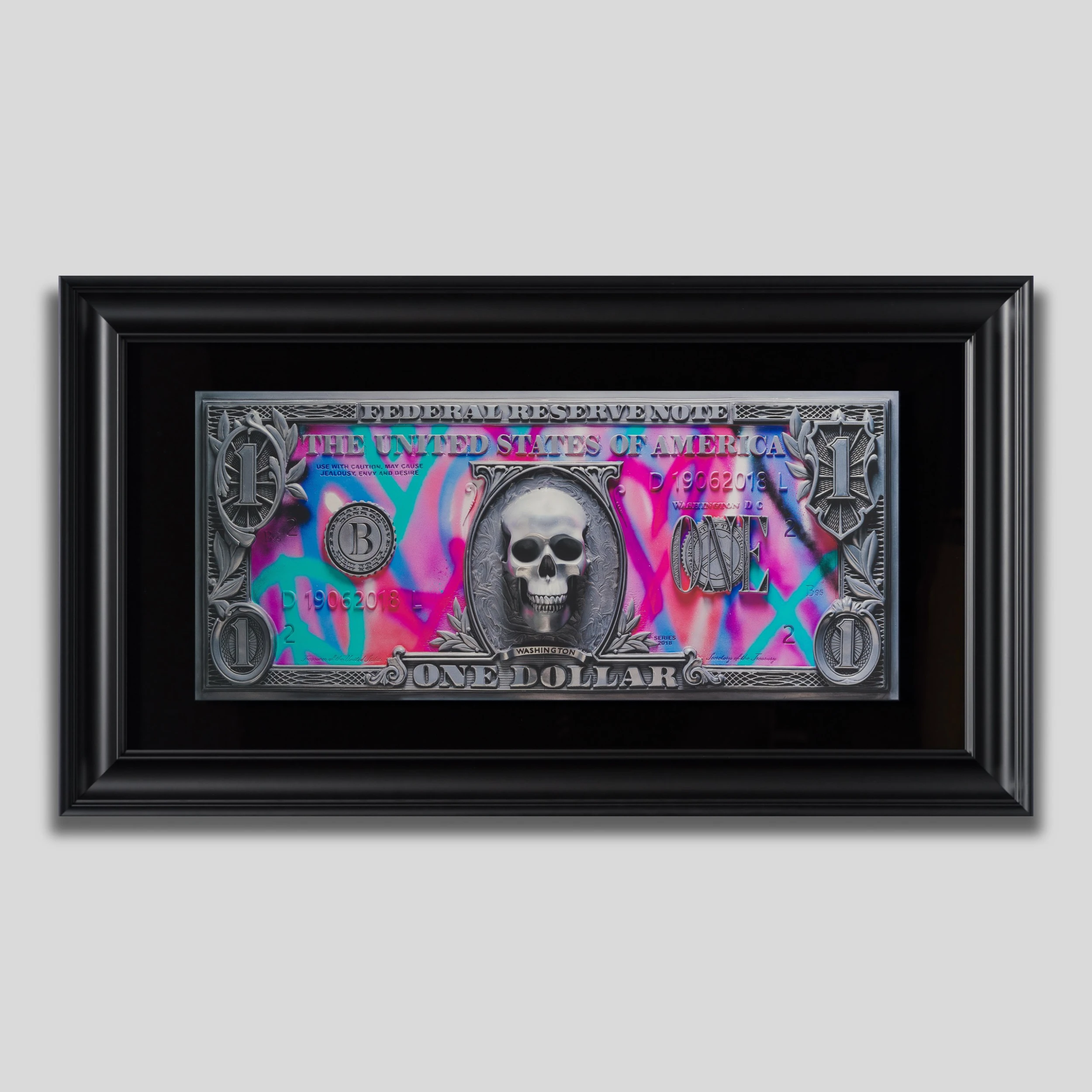 A limited edition flatbed giclée artwork on glass by Dan Lane bespoke framed in black painted pine.