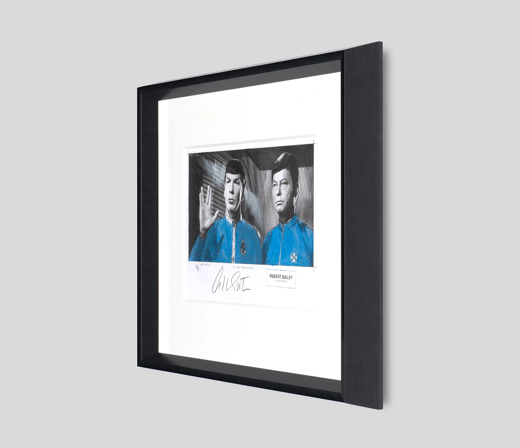Hand-signed by William Shatner himself, who has since been into real space, this original artwork by Robert Bailey will add a touch of space-age magic into your home through a bold and bright colour palette and bespoke black wooden frame. View our full Robert Bailey portfolio .