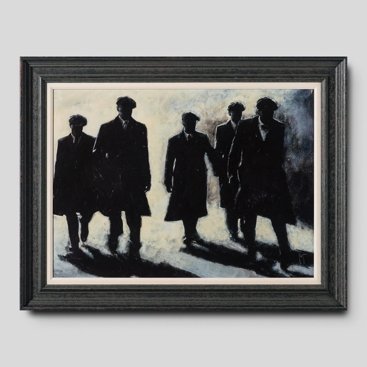 Using conflicting tones of cream white, black and grey to create a highly atmospheric artwork with an essence of realism capturing a monochrome scene. This piece takes inspiration from the Birmingham based gang The Peaky Blinders, bringing us a hand varnished giclee on canvas board.